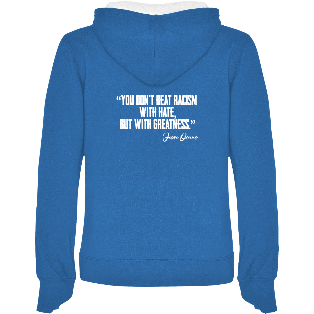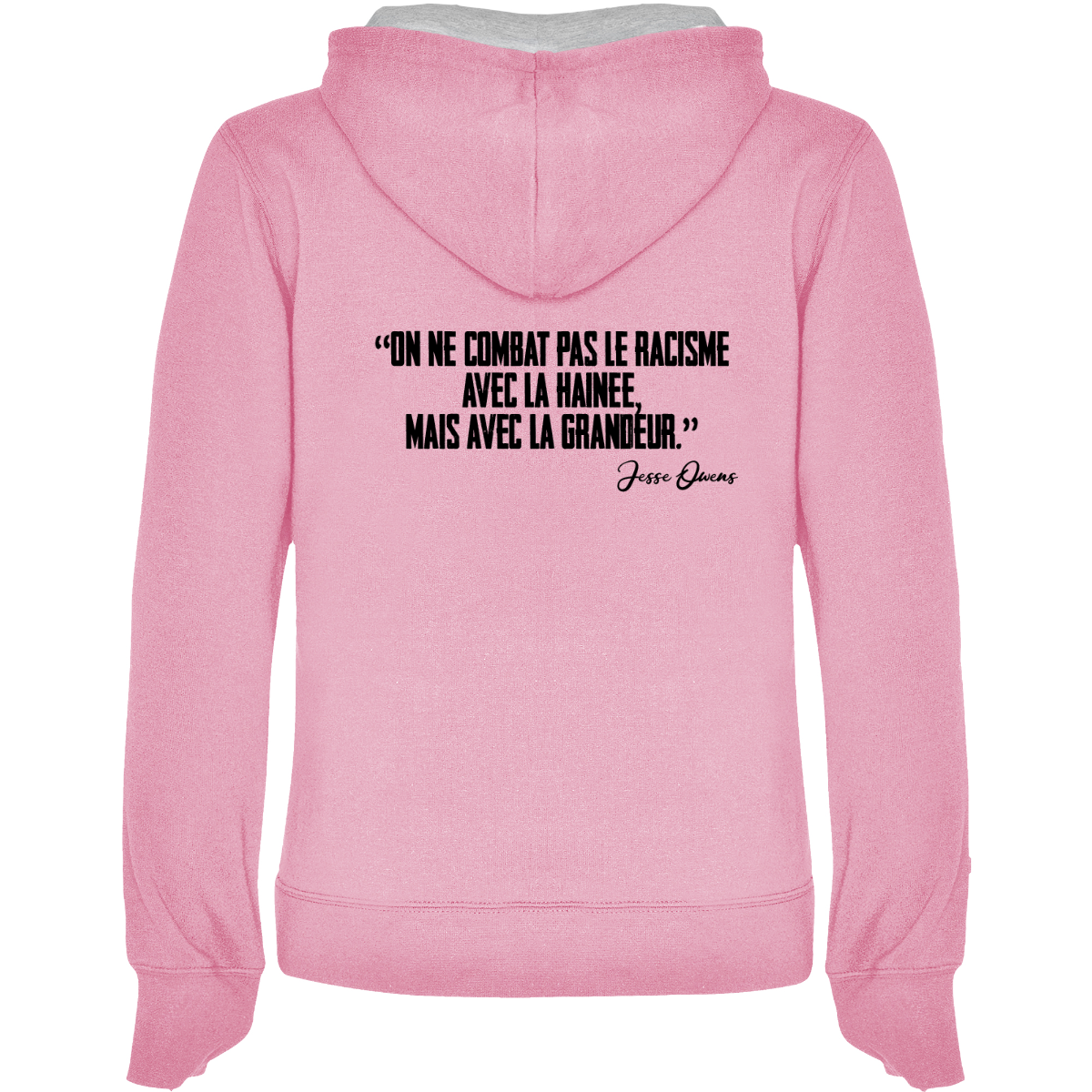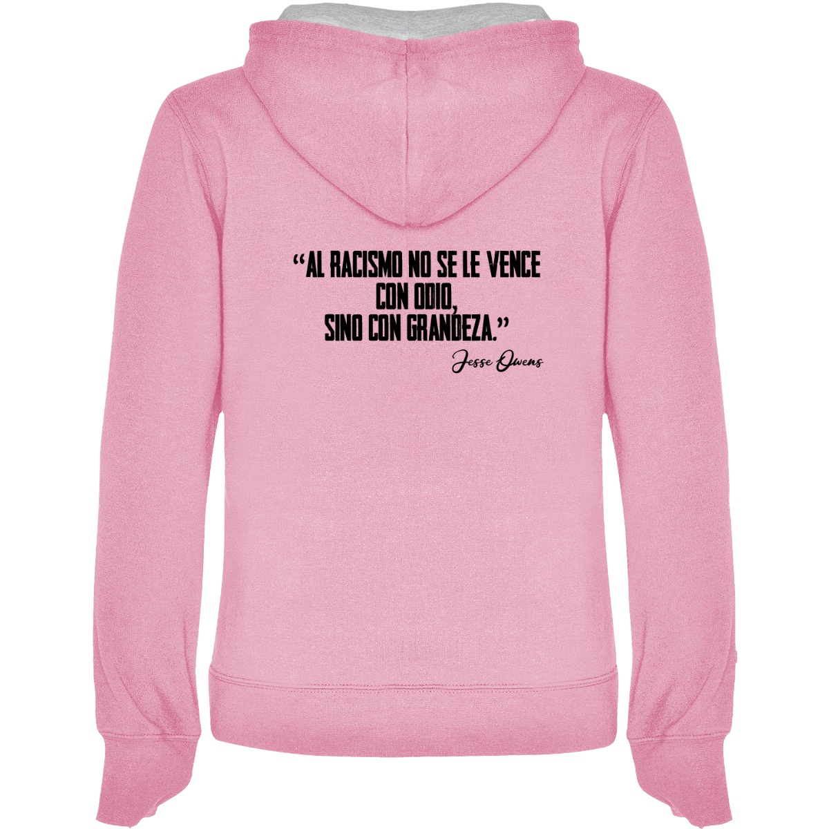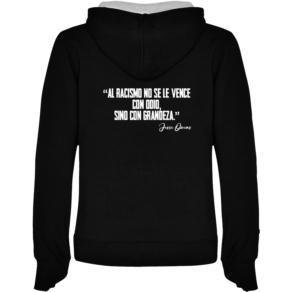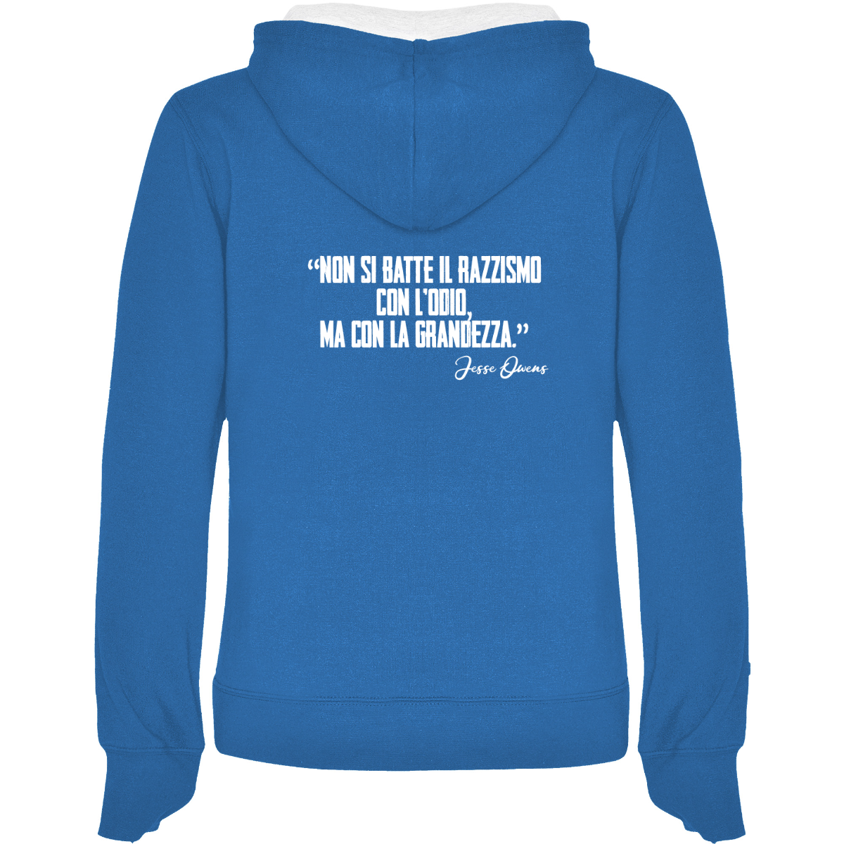 Felpa con cappuccio, anche  bicolore, tessuto doppio, con cordone regolabile. Tasca frontale. Costine 1x1 su polsini e girovita. 50% cotone / 50% poliestere, interno felpato, 280 g/m².
