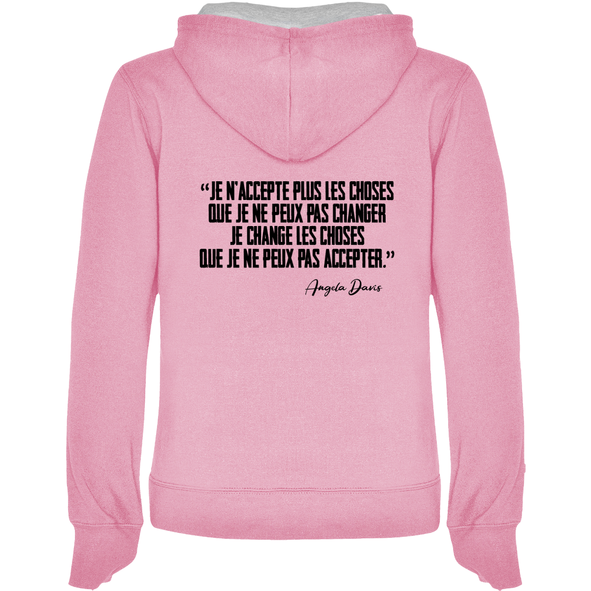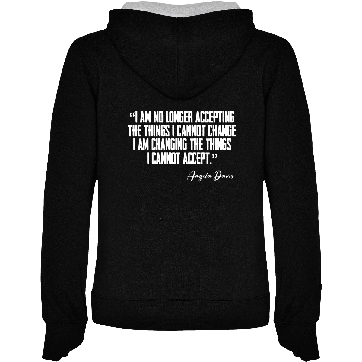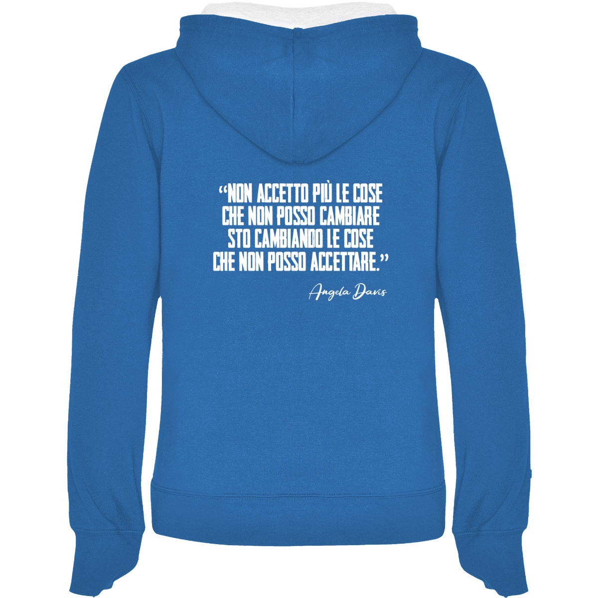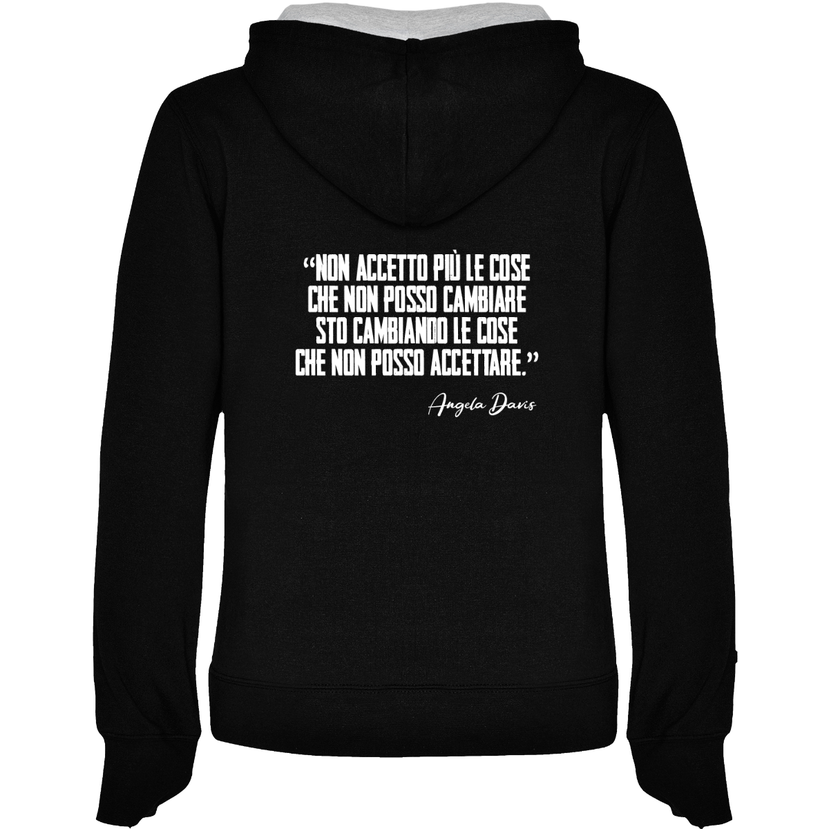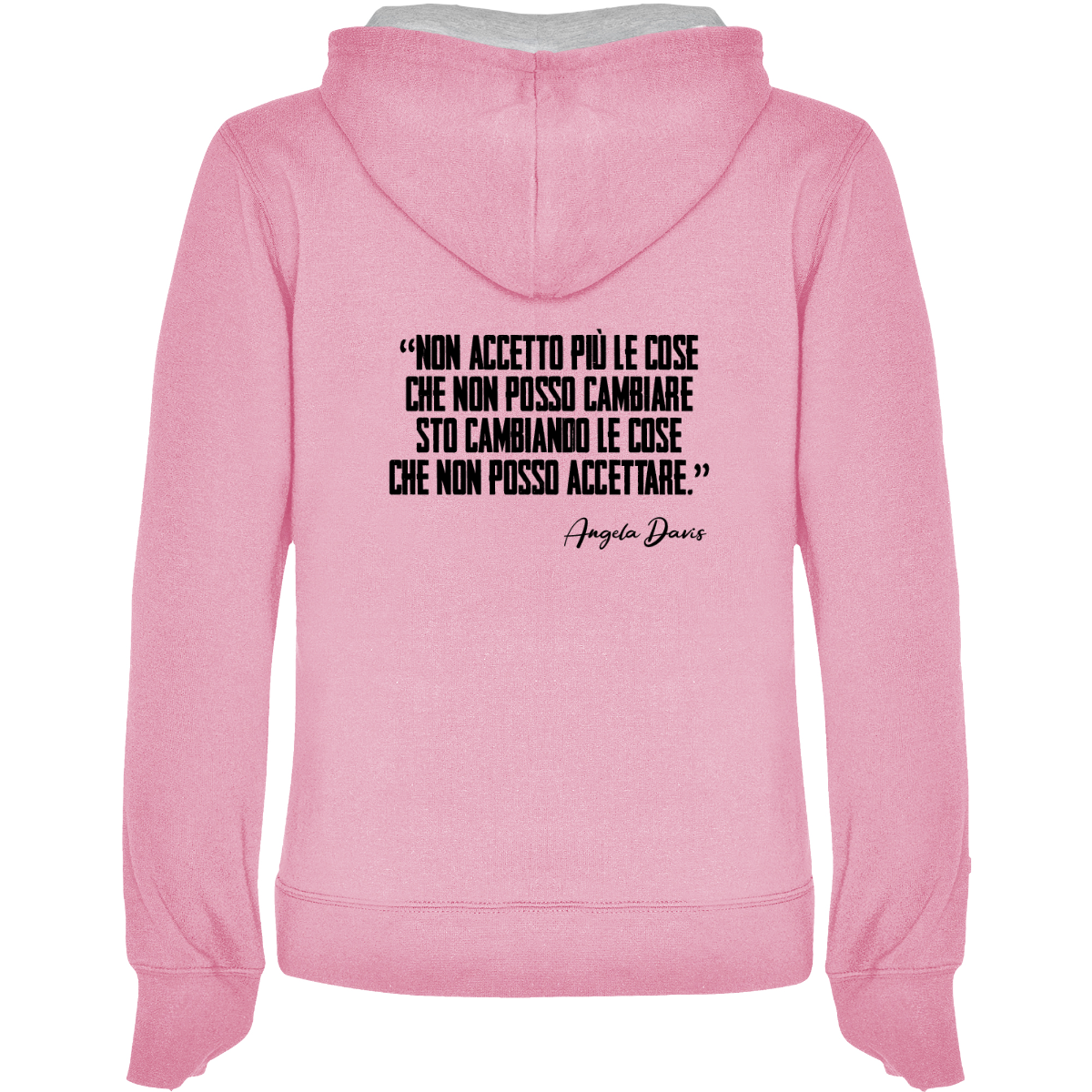 Felpa con cappuccio, anche  bicolore, tessuto doppio, con cordone regolabile. Tasca frontale. Costine 1x1 su polsini e girovita. 50% cotone / 50% poliestere, interno felpato, 280 g/m².