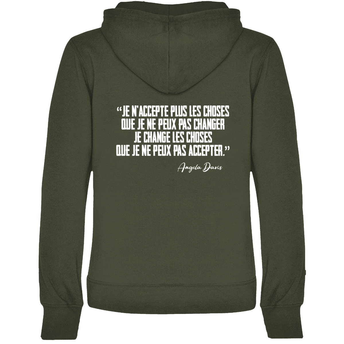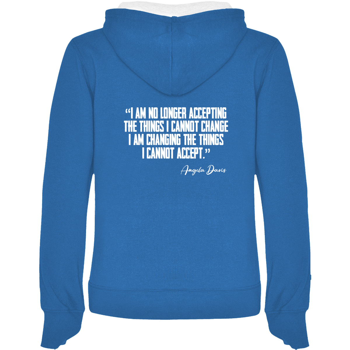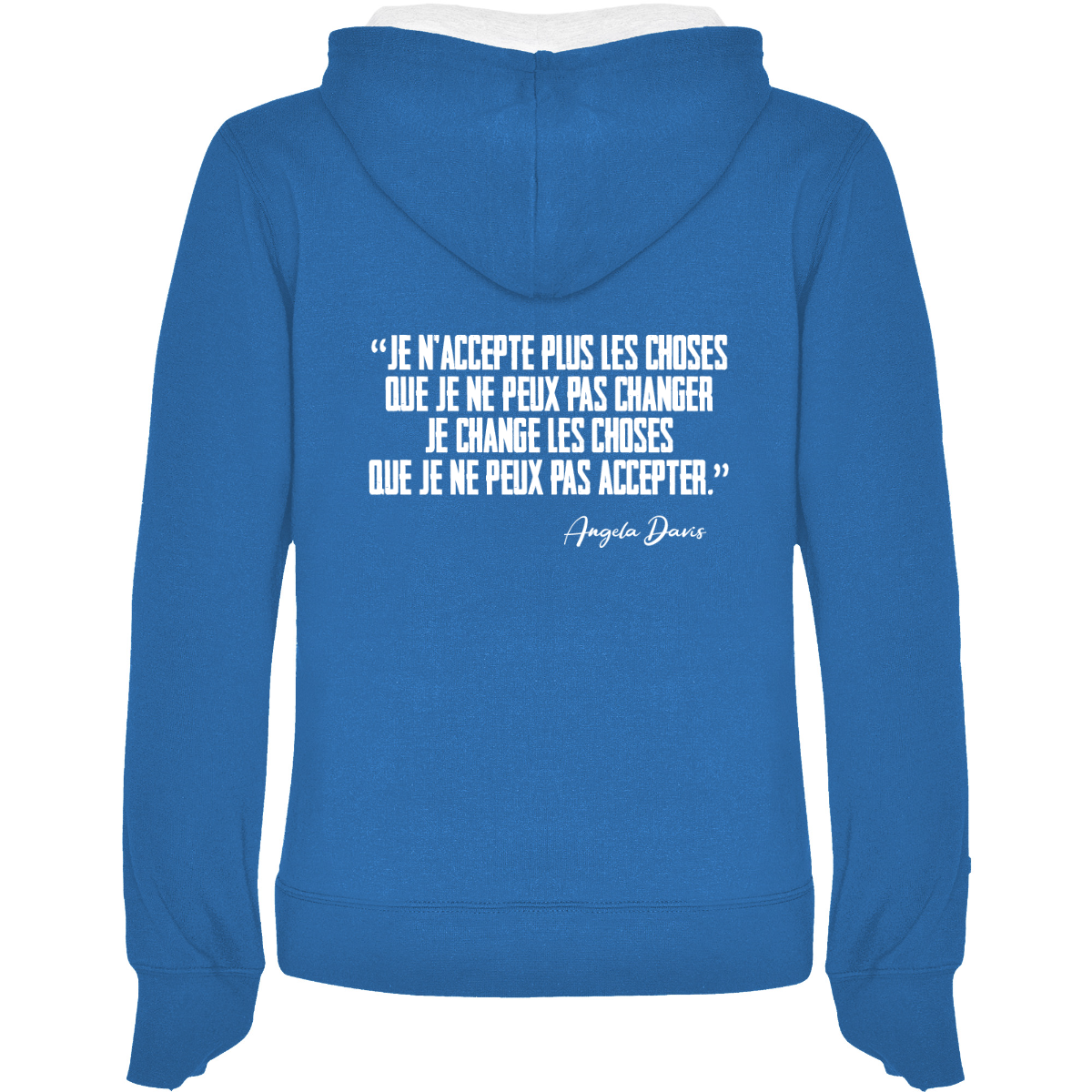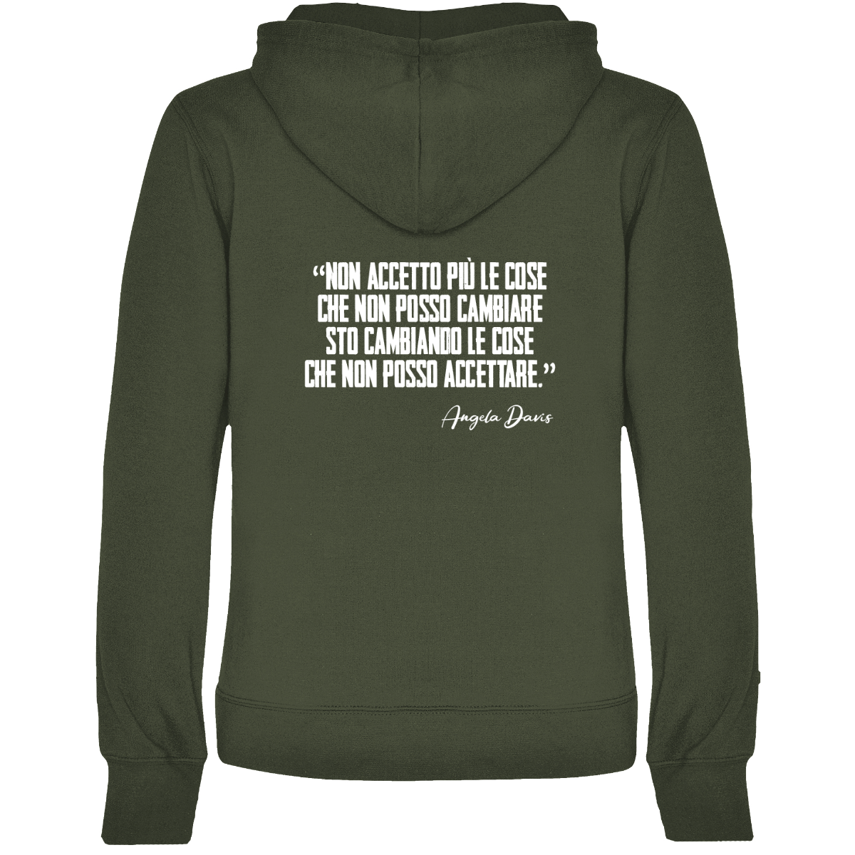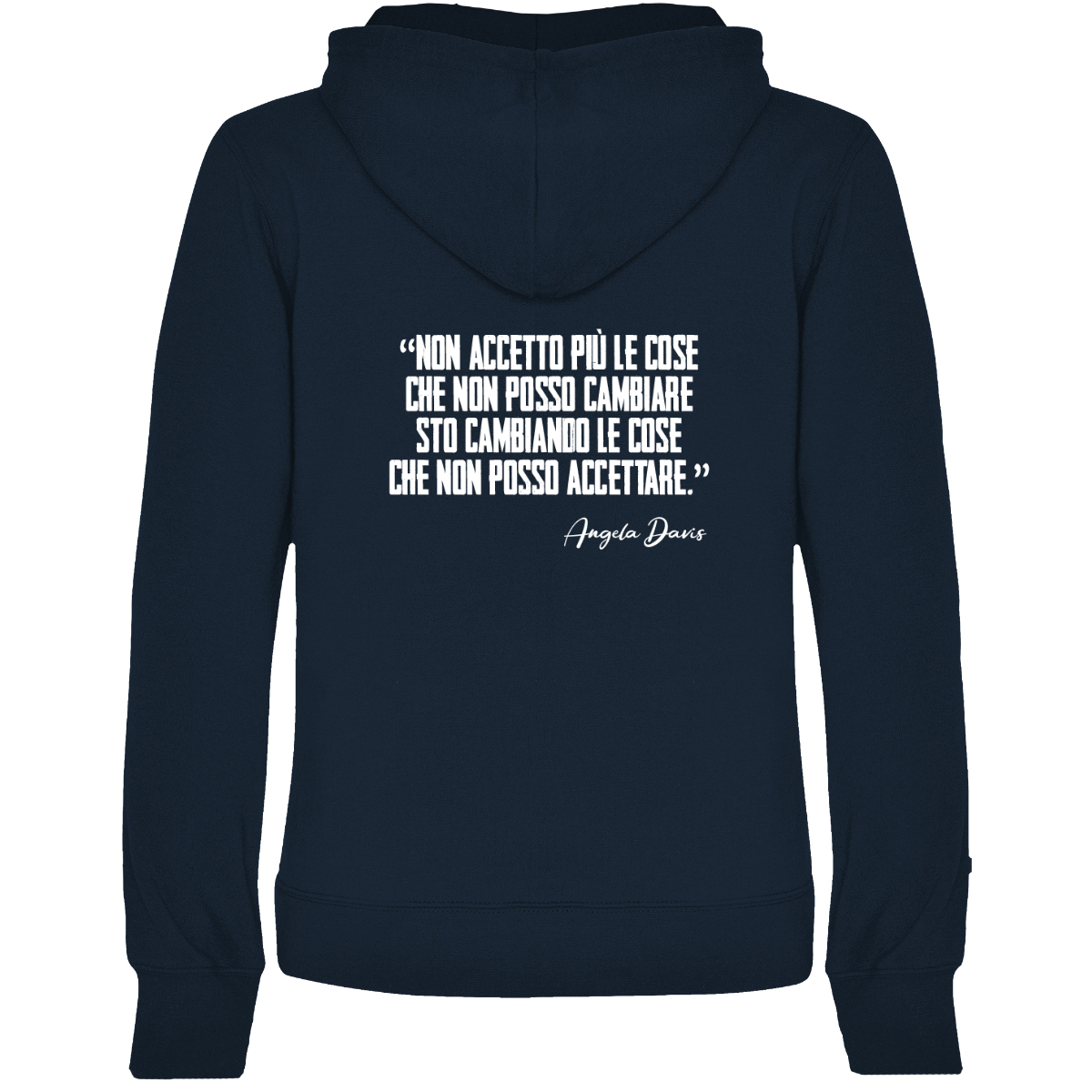 Felpa con cappuccio, anche  bicolore, tessuto doppio, con cordone regolabile. Tasca frontale. Costine 1x1 su polsini e girovita. 50% cotone / 50% poliestere, interno felpato, 280 g/m².