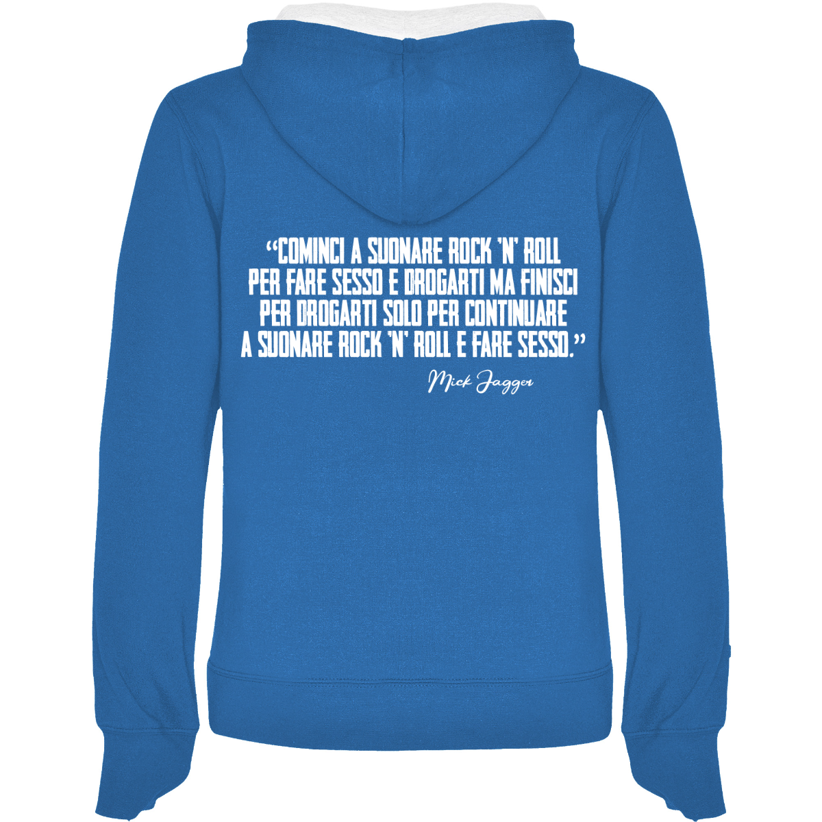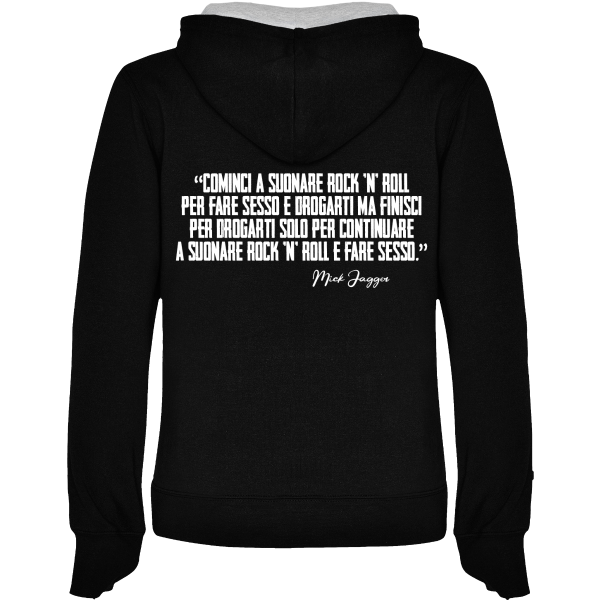 Felpa con cappuccio, anche  bicolore, tessuto doppio, con cordone regolabile. Tasca frontale. Costine 1x1 su polsini e girovita. 50% cotone / 50% poliestere, interno felpato, 280 g/m².