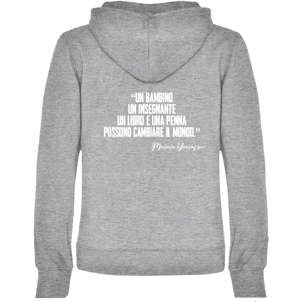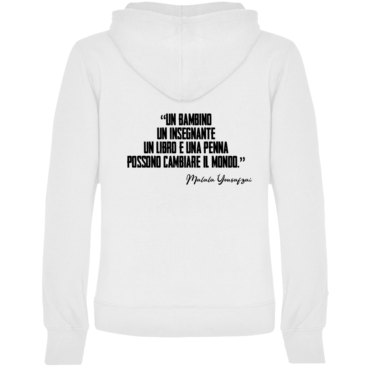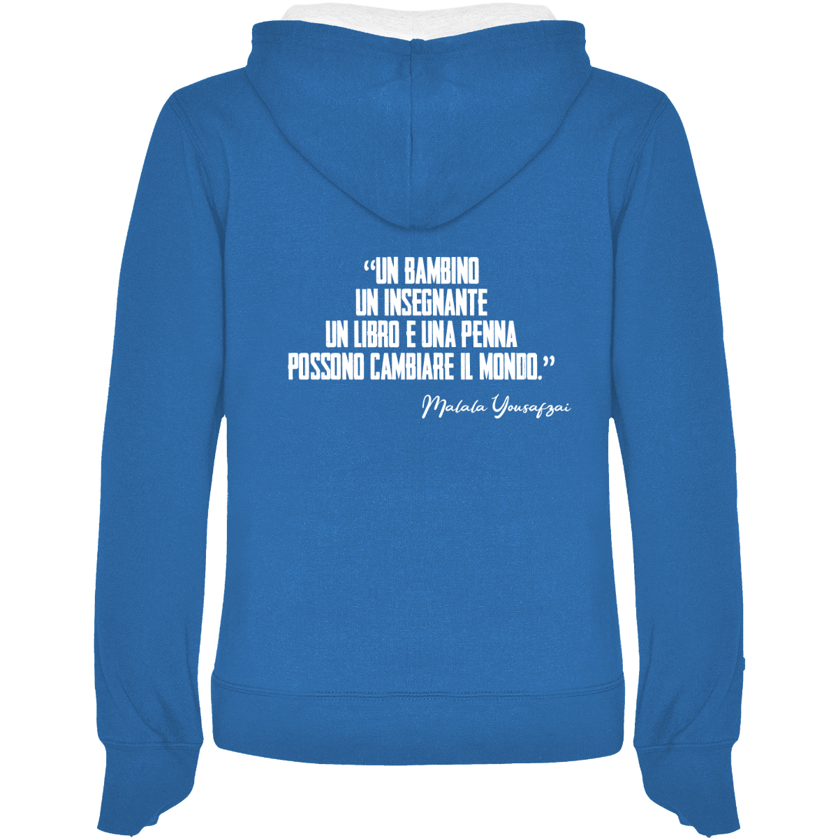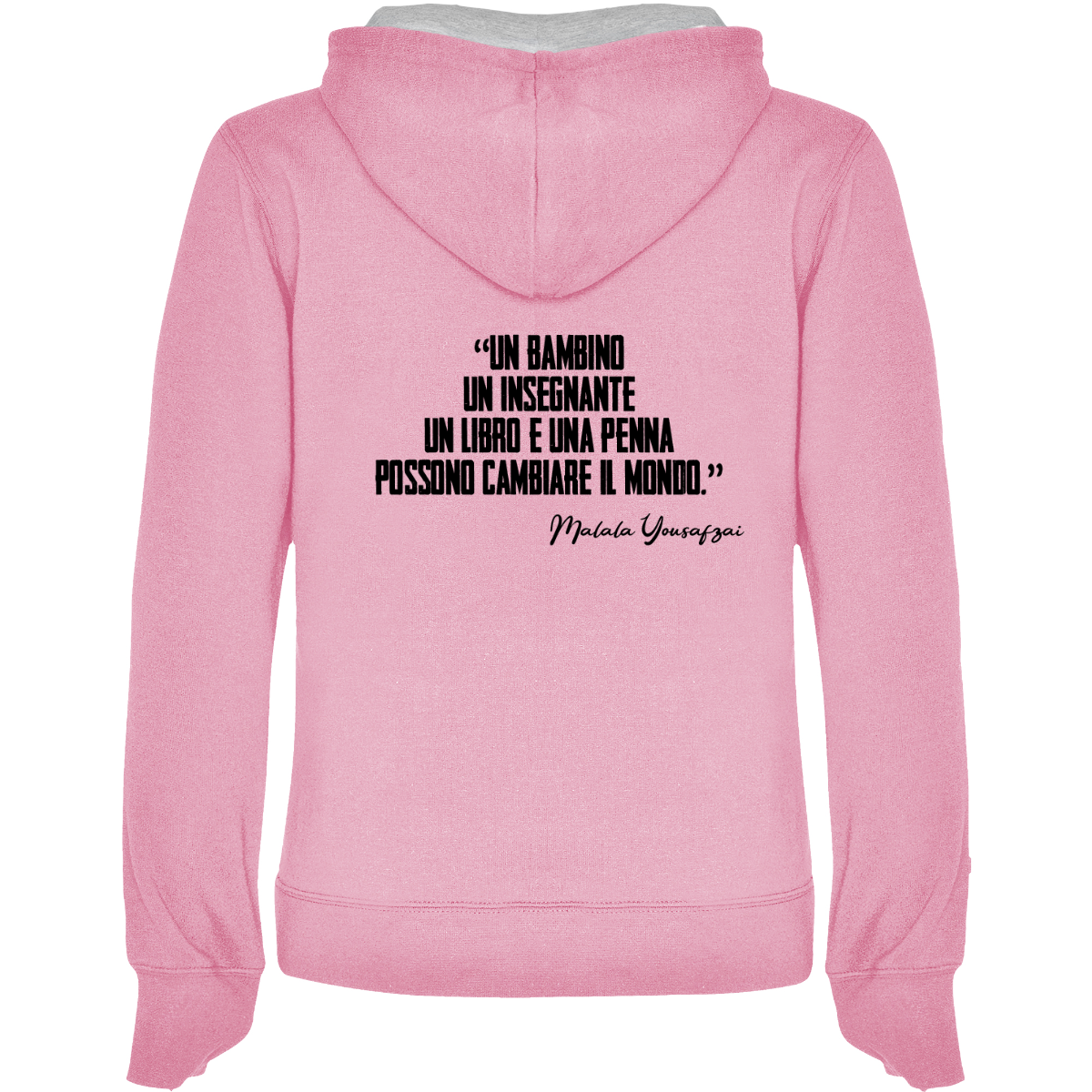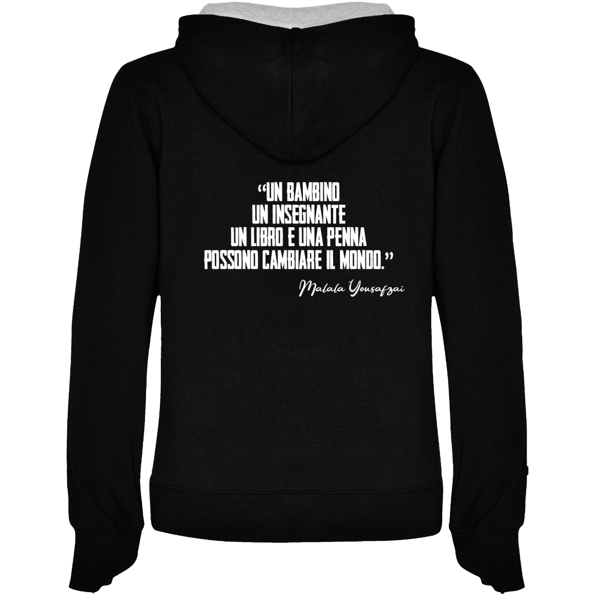 Felpa con cappuccio, anche  bicolore, tessuto doppio, con cordone regolabile. Tasca frontale. Costine 1x1 su polsini e girovita. 50% cotone / 50% poliestere, interno felpato, 280 g/m².
