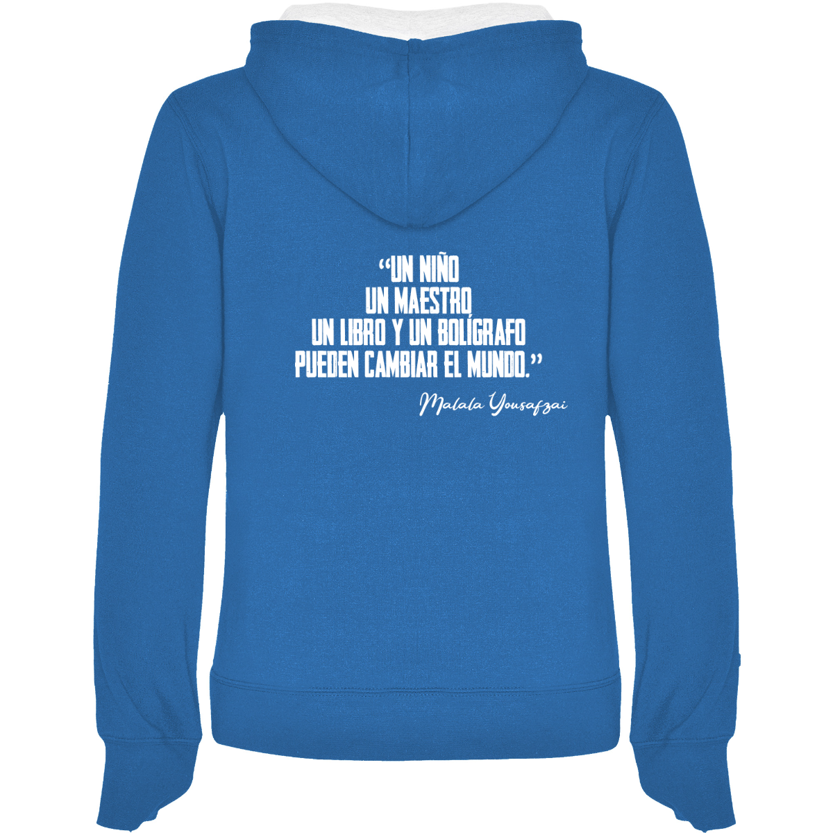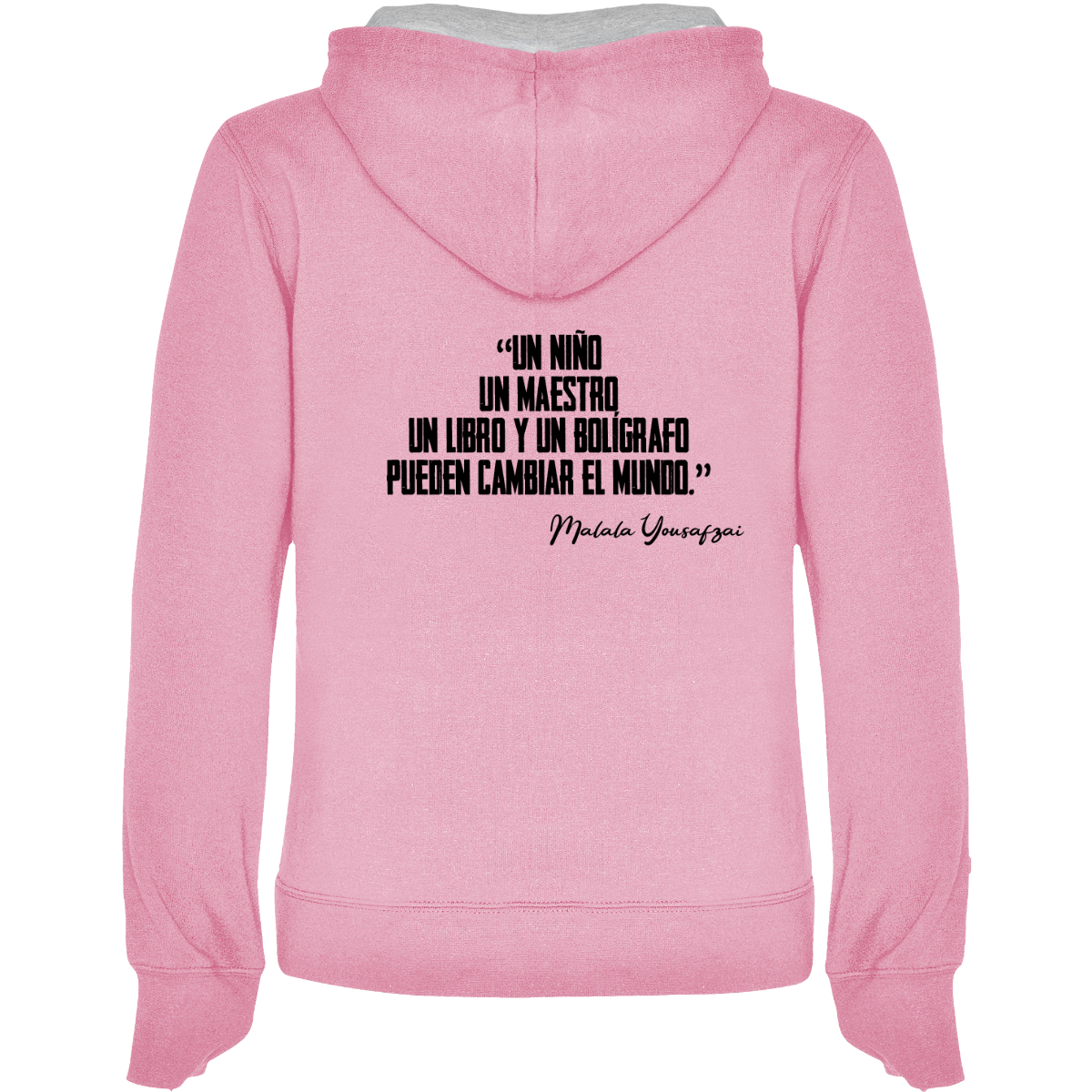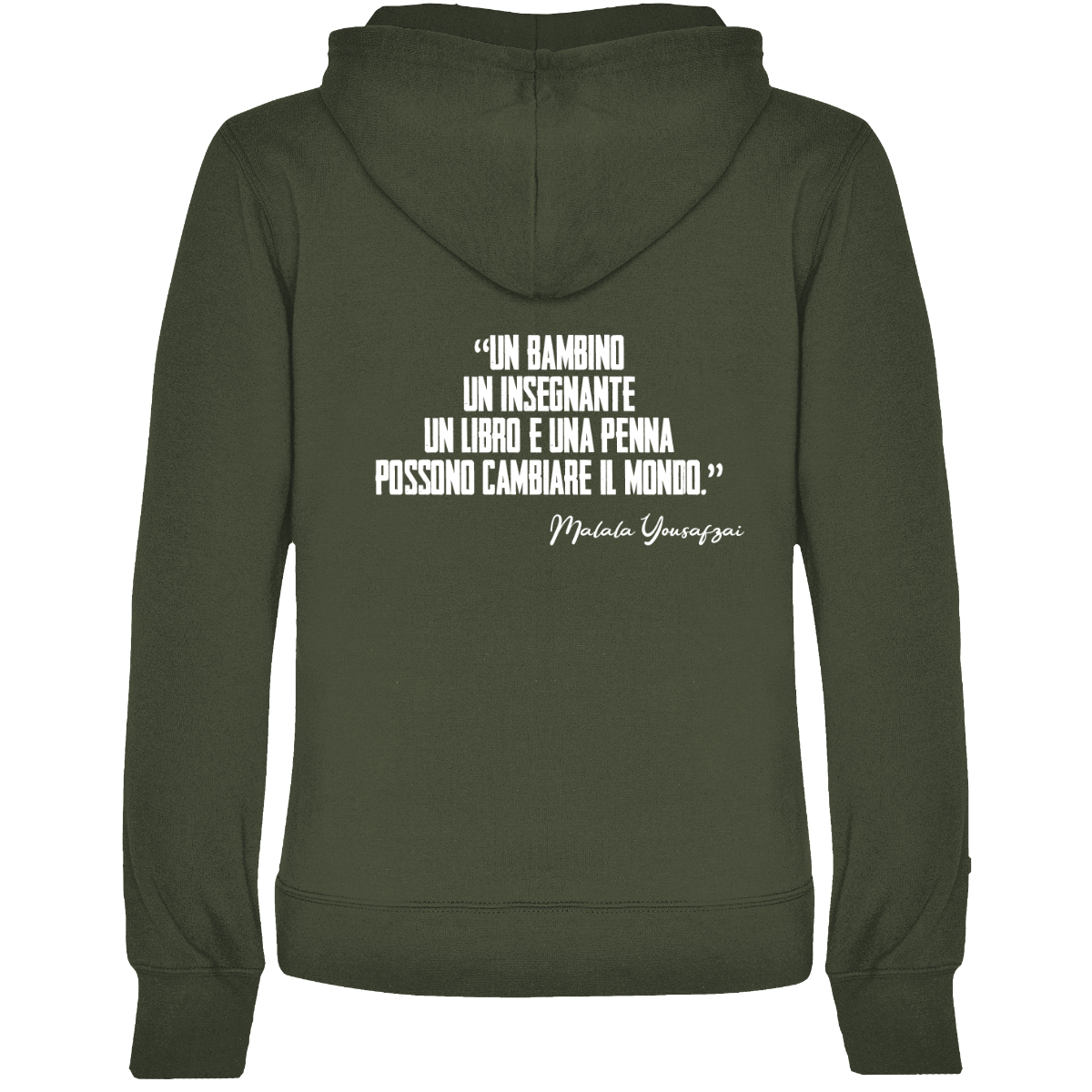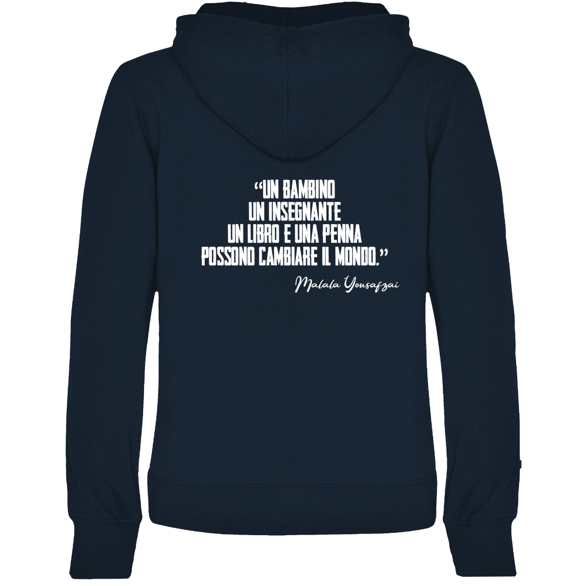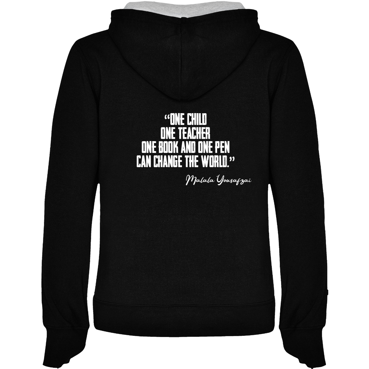 Felpa con cappuccio, anche  bicolore, tessuto doppio, con cordone regolabile. Tasca frontale. Costine 1x1 su polsini e girovita. 50% cotone / 50% poliestere, interno felpato, 280 g/m².