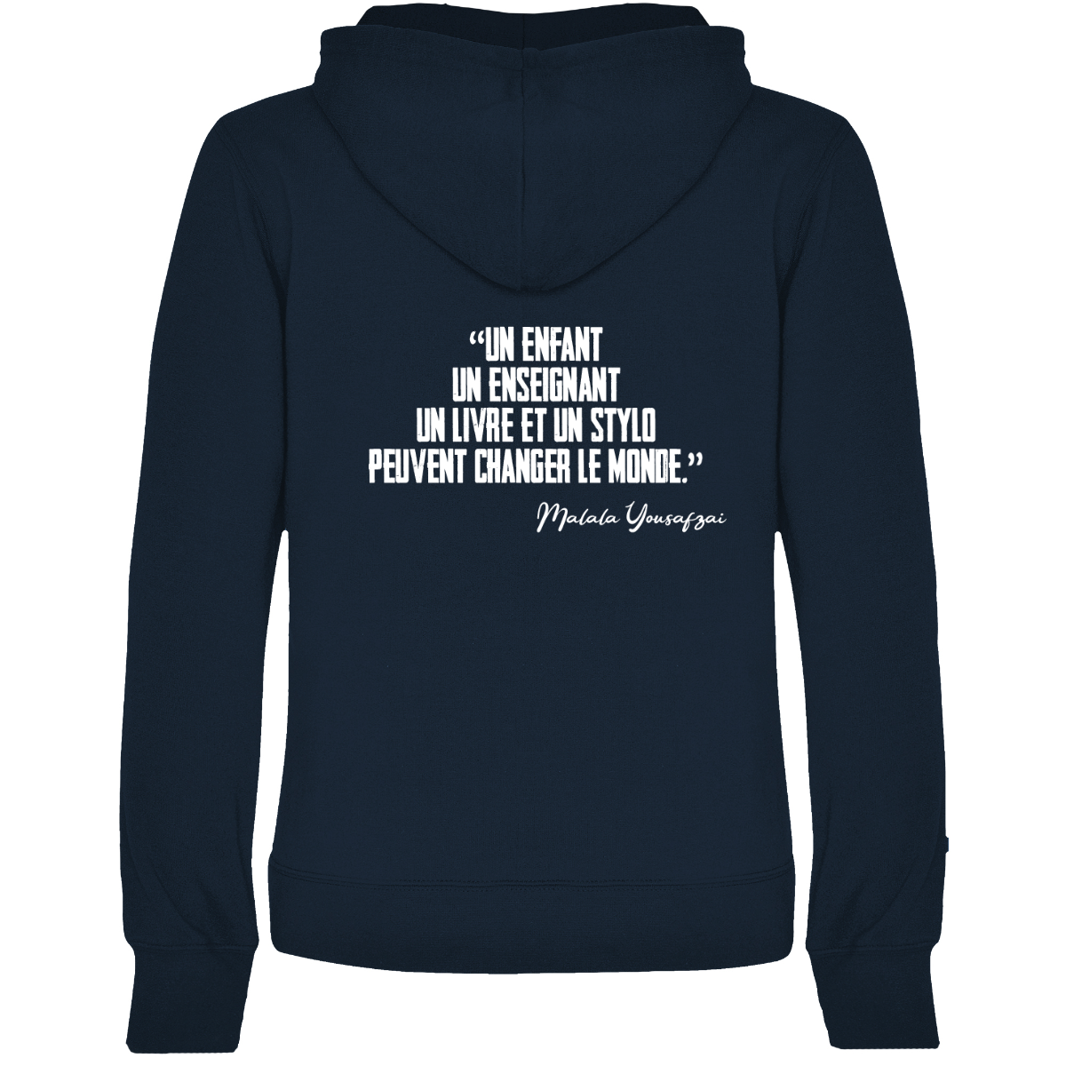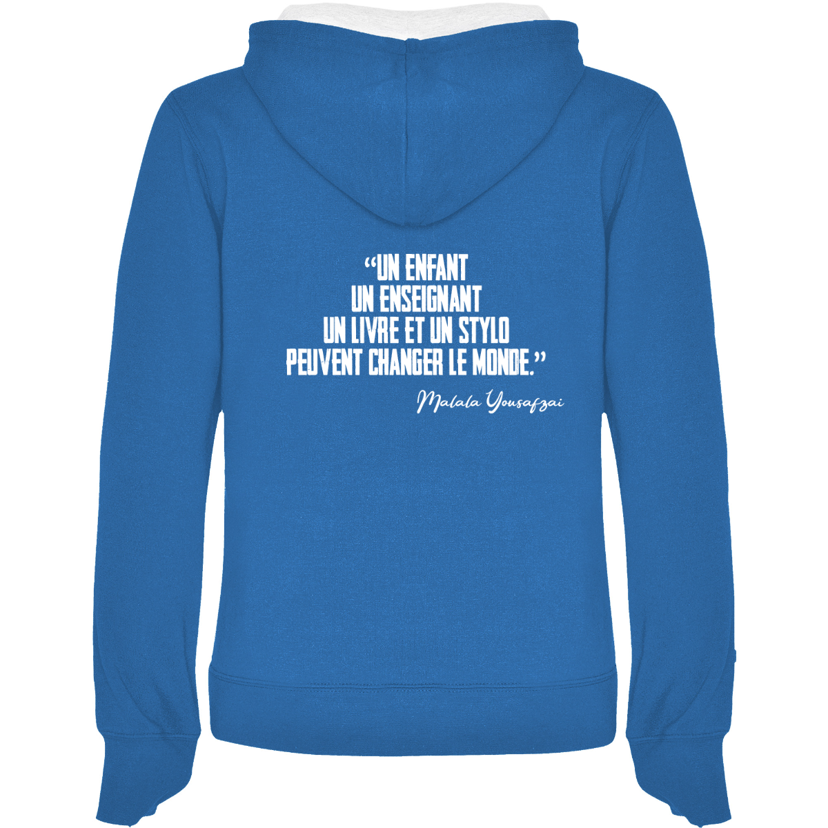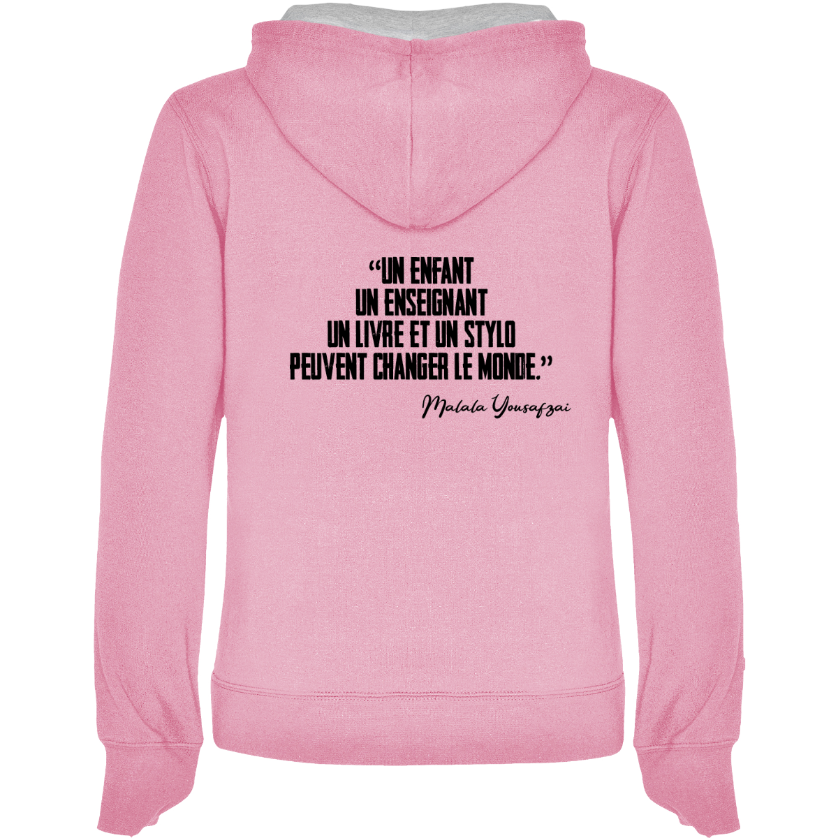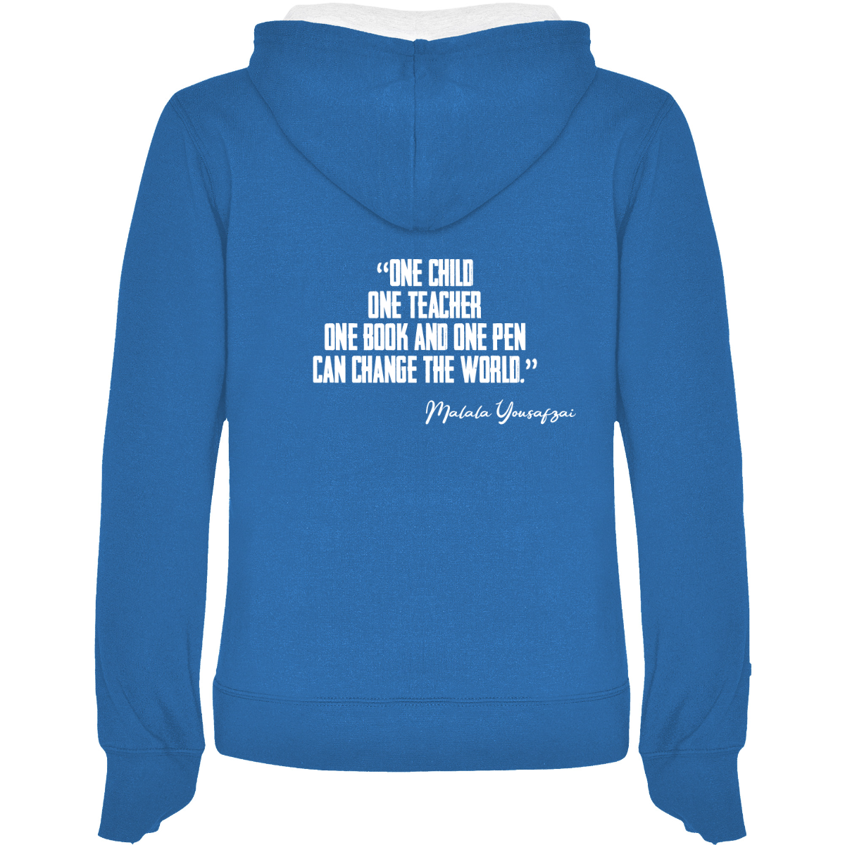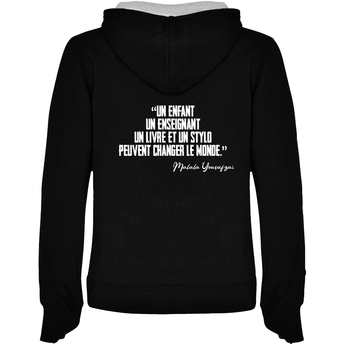 Felpa con cappuccio, anche  bicolore, tessuto doppio, con cordone regolabile. Tasca frontale. Costine 1x1 su polsini e girovita. 50% cotone / 50% poliestere, interno felpato, 280 g/m².