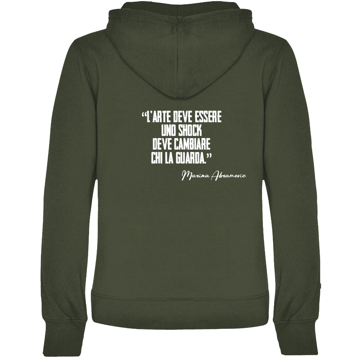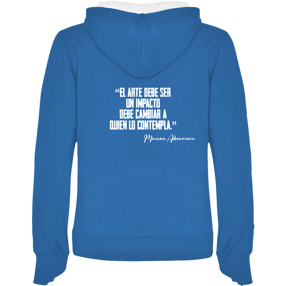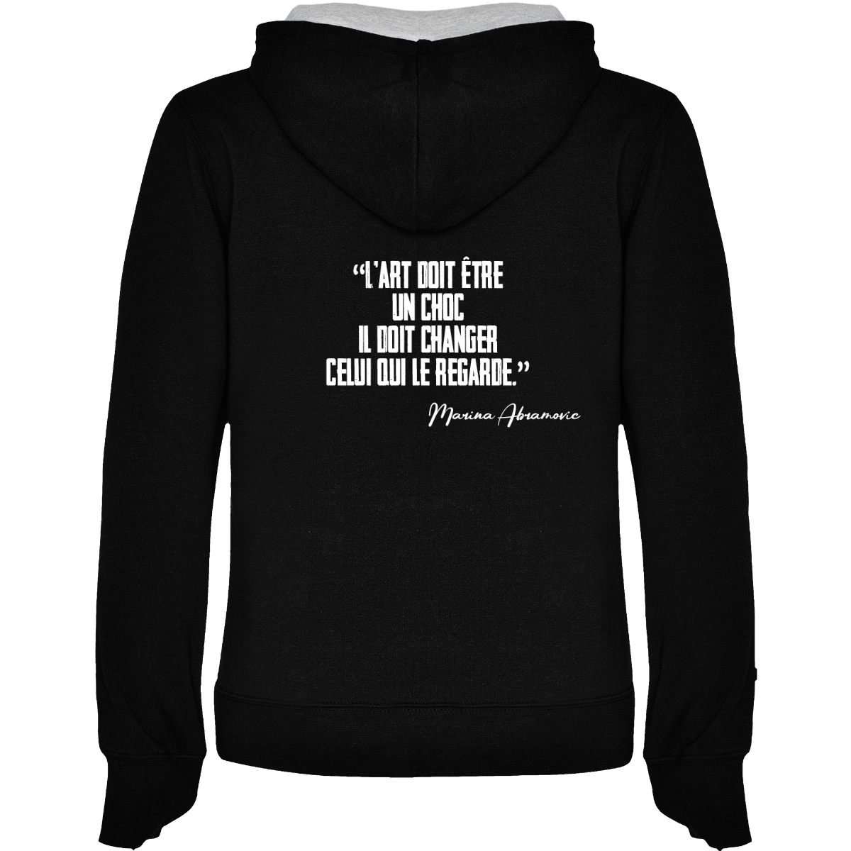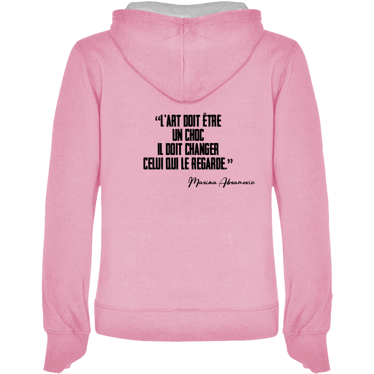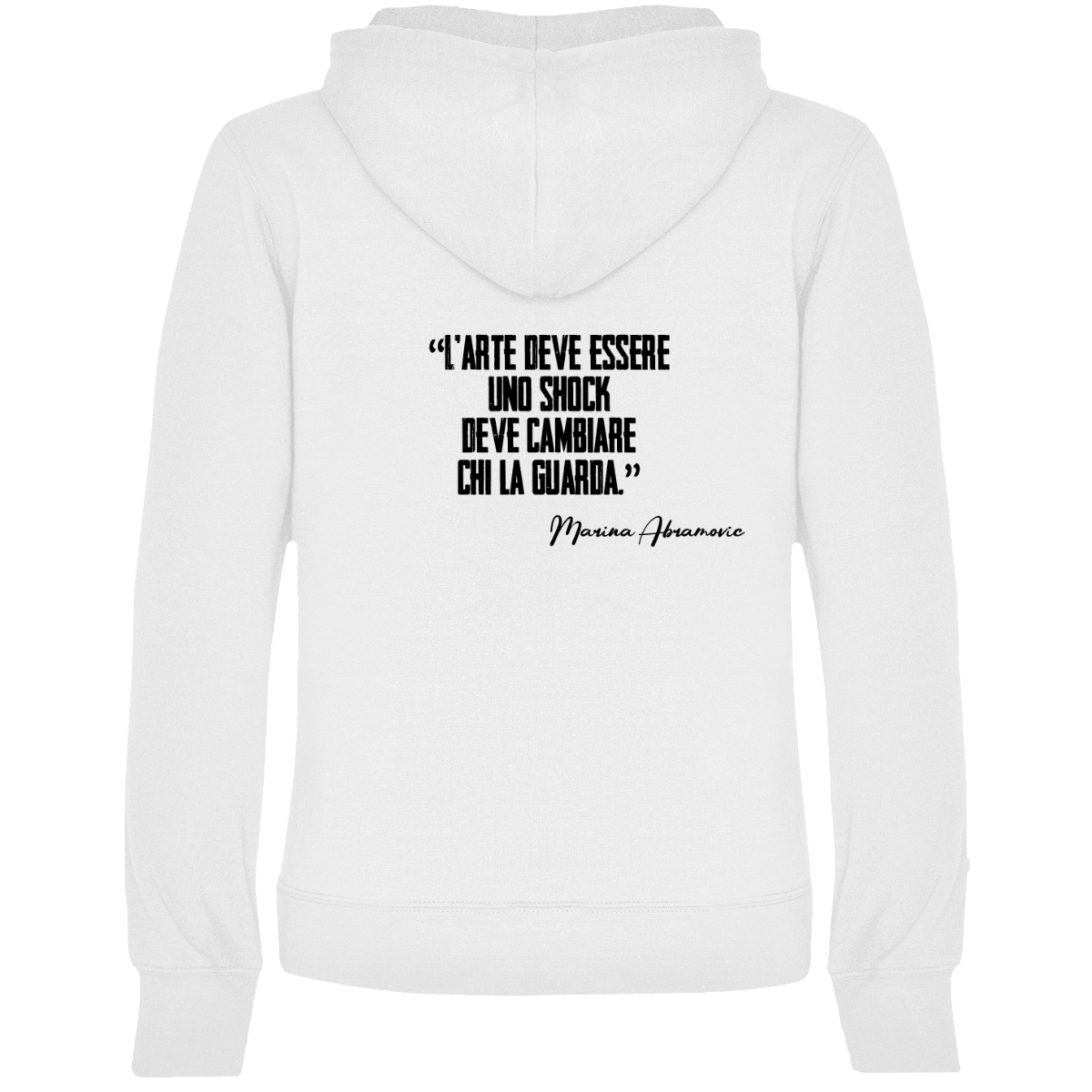 Felpa con cappuccio, anche  bicolore, tessuto doppio, con cordone regolabile. Tasca frontale. Costine 1x1 su polsini e girovita. 50% cotone / 50% poliestere, interno felpato, 280 g/m².