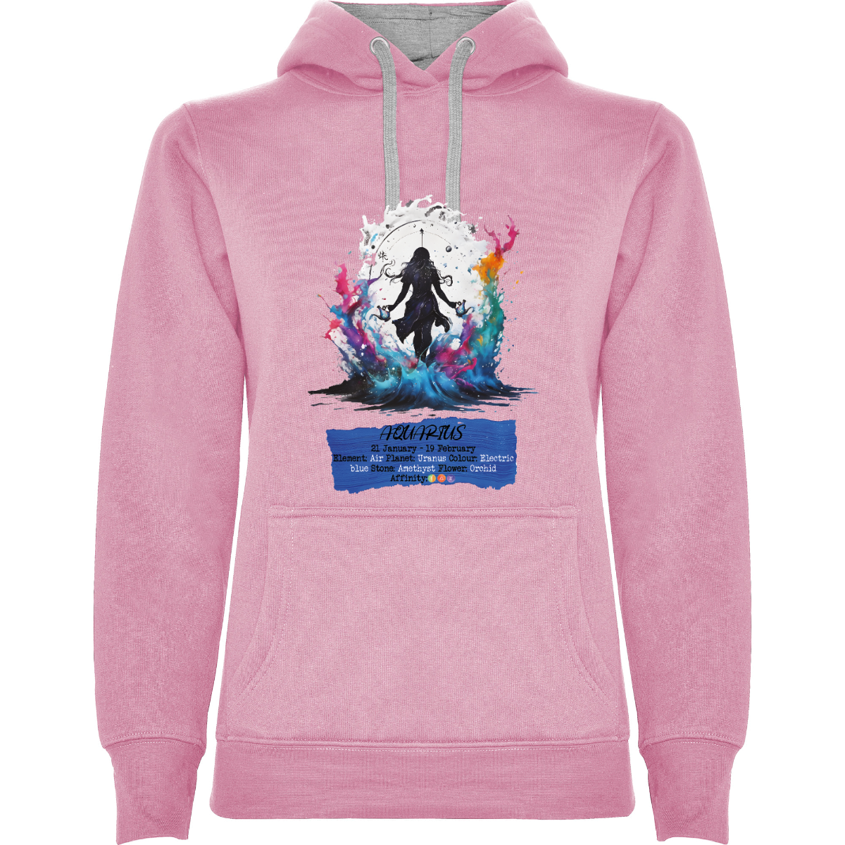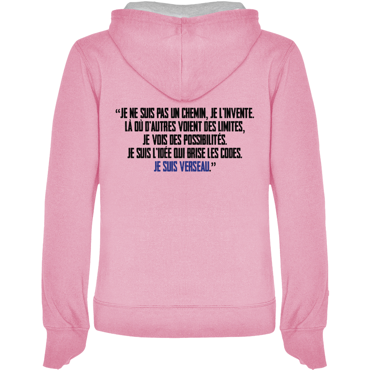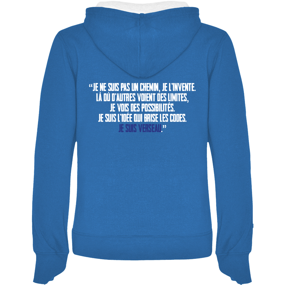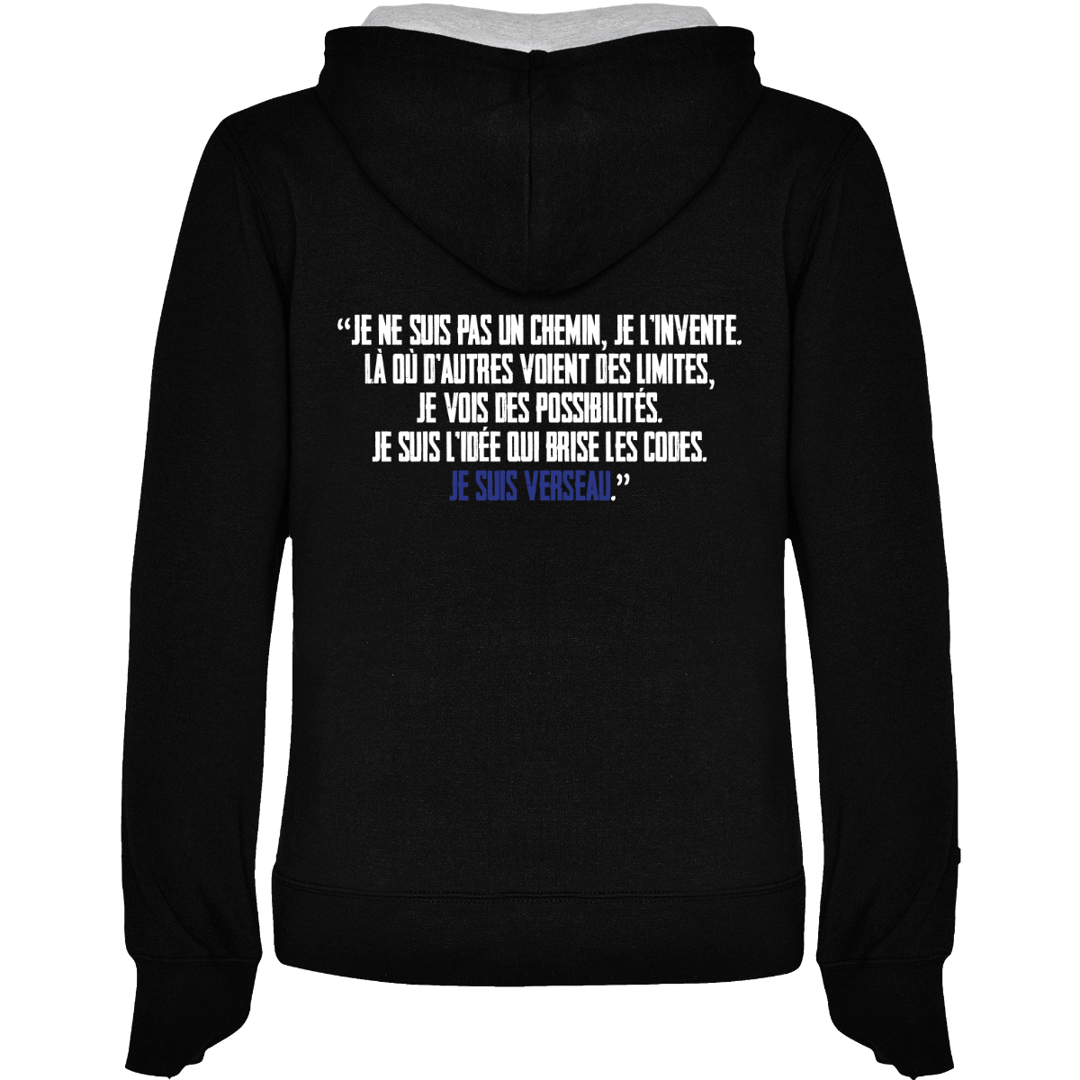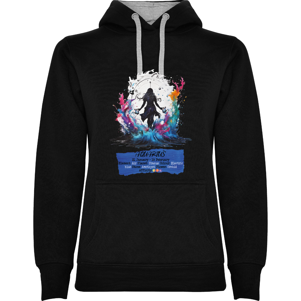 Felpa con cappuccio, anche  bicolore, tessuto doppio, con cordone regolabile. Tasca frontale. Costine 1x1 su polsini e girovita. 50% cotone / 50% poliestere, interno felpato, 280 g/m².
