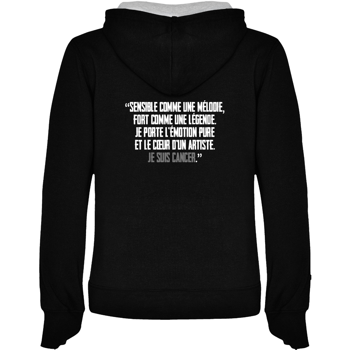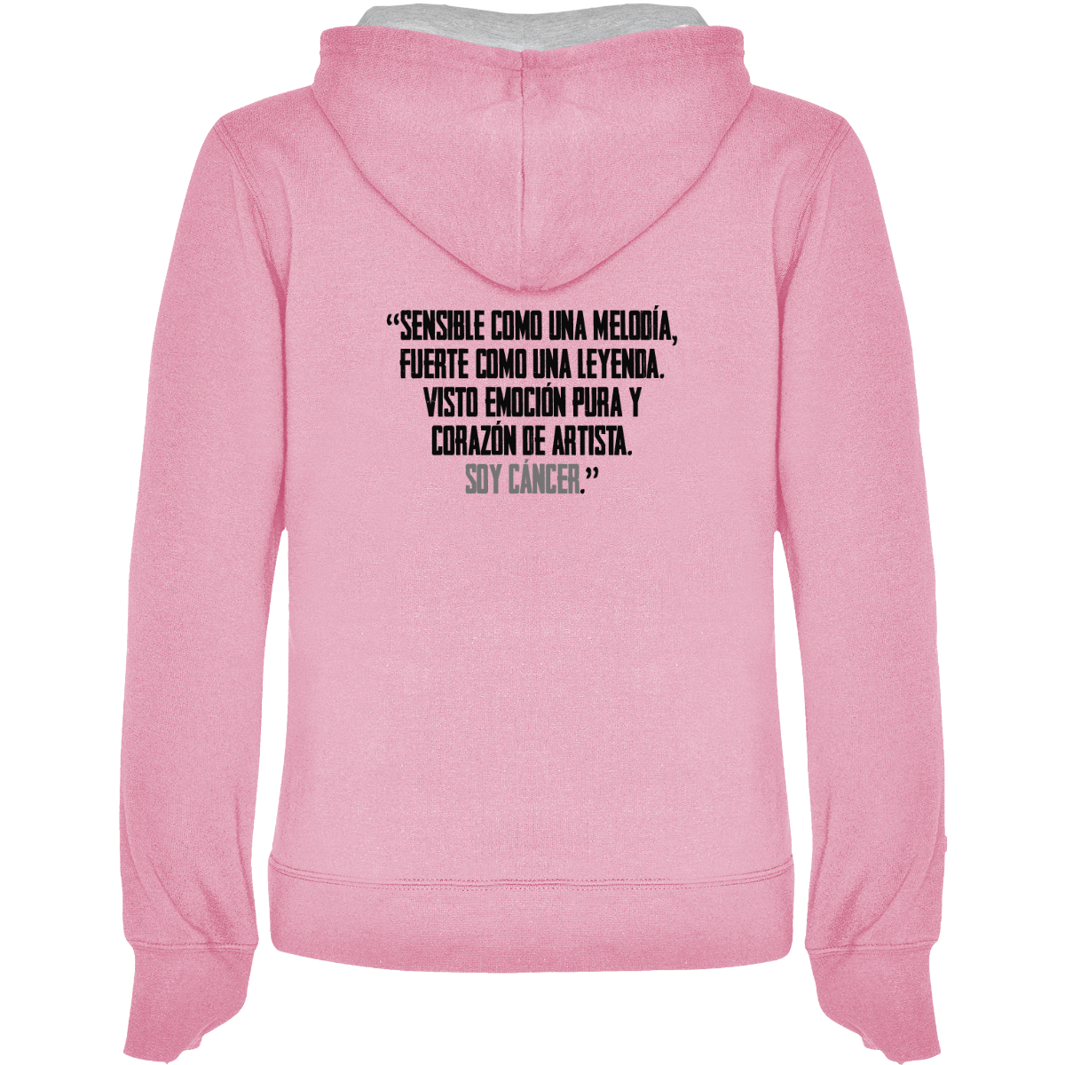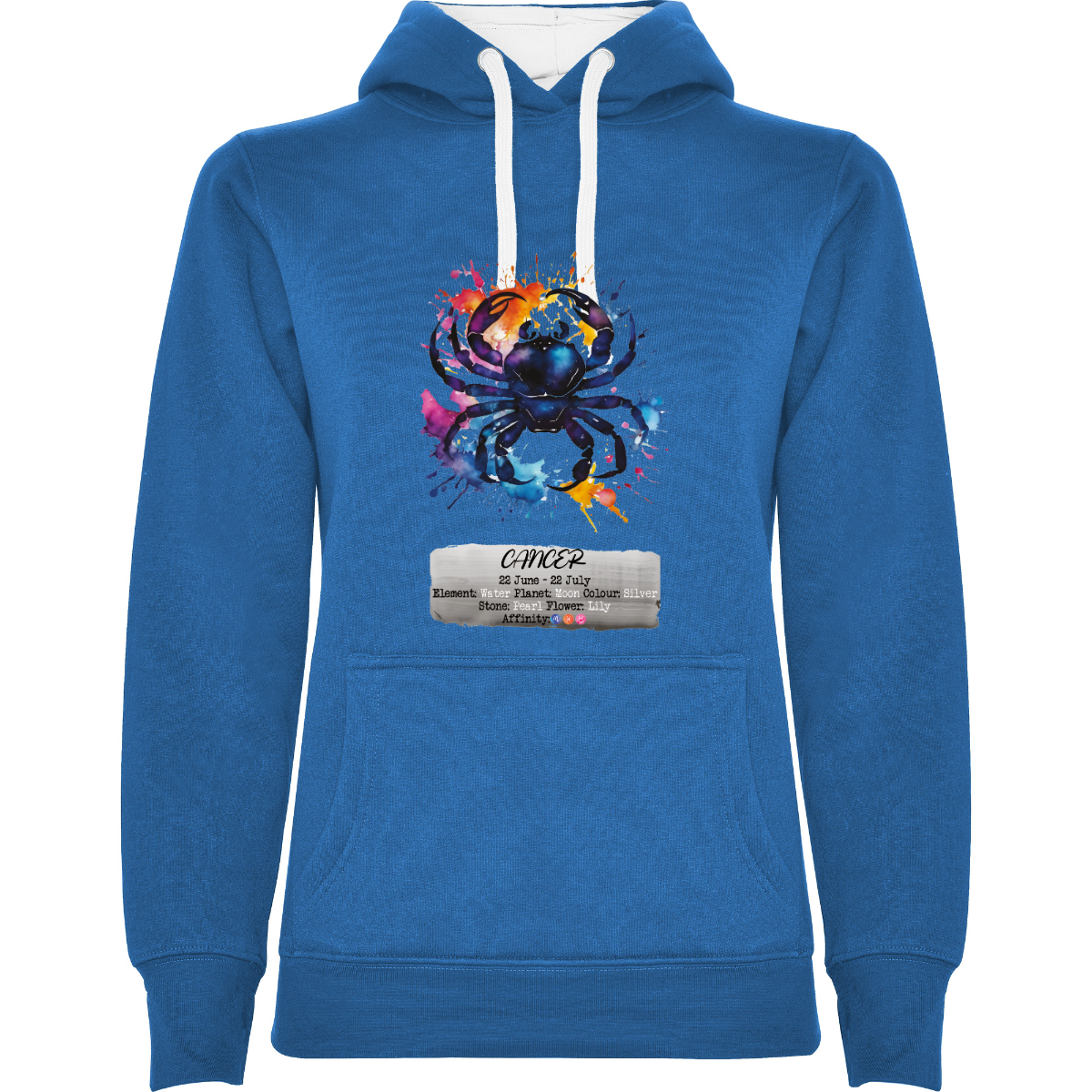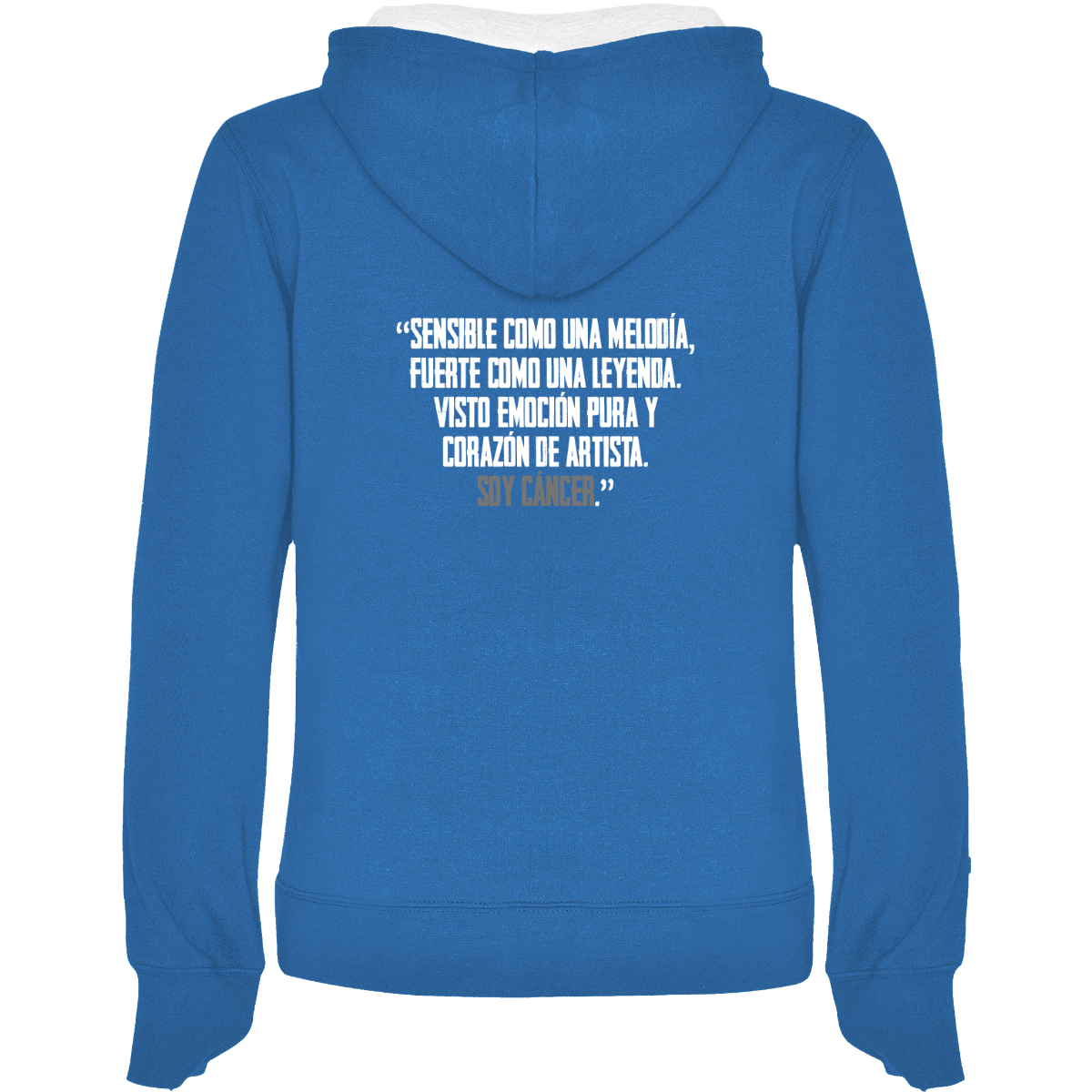 Felpa con cappuccio, anche  bicolore, tessuto doppio, con cordone regolabile. Tasca frontale. Costine 1x1 su polsini e girovita. 50% cotone / 50% poliestere, interno felpato, 280 g/m².