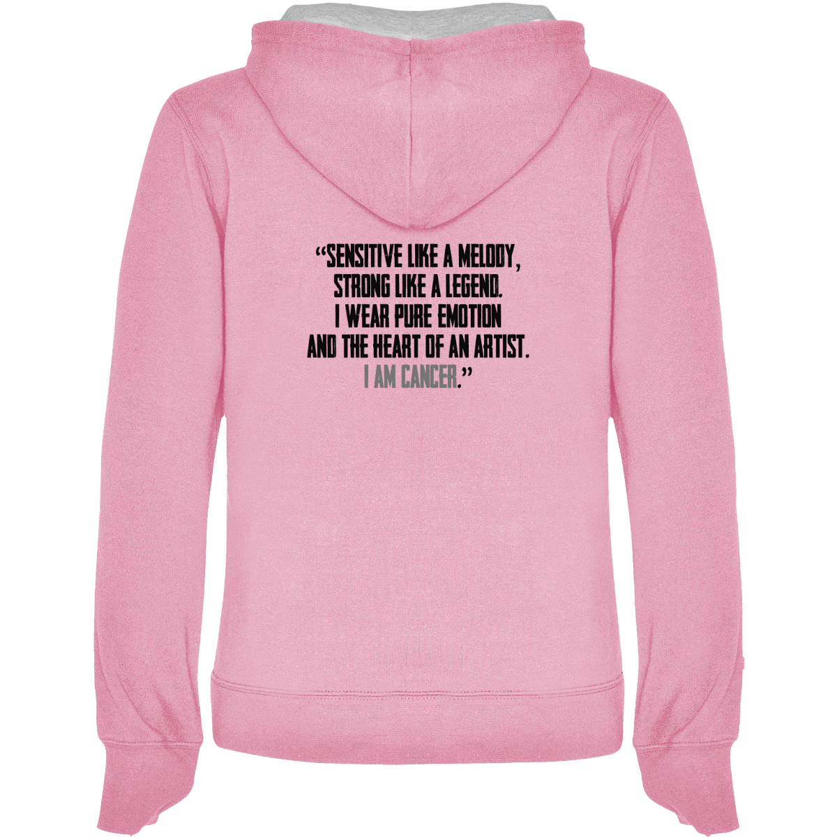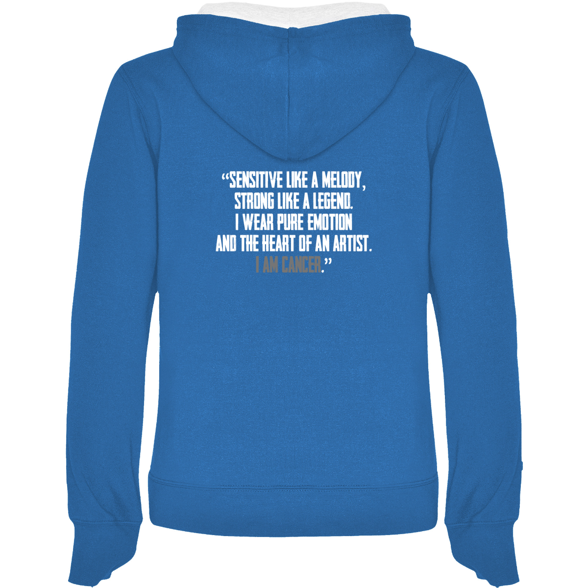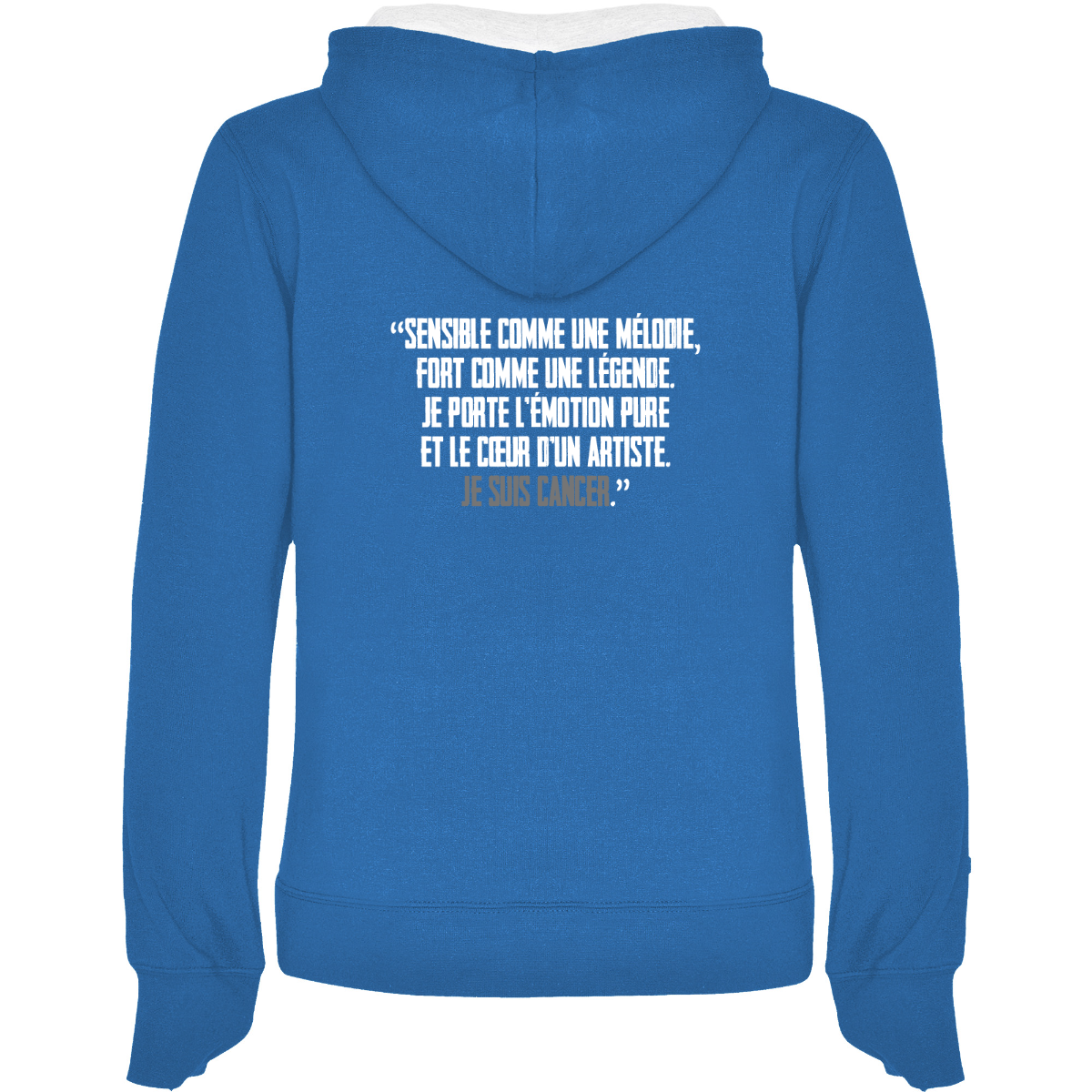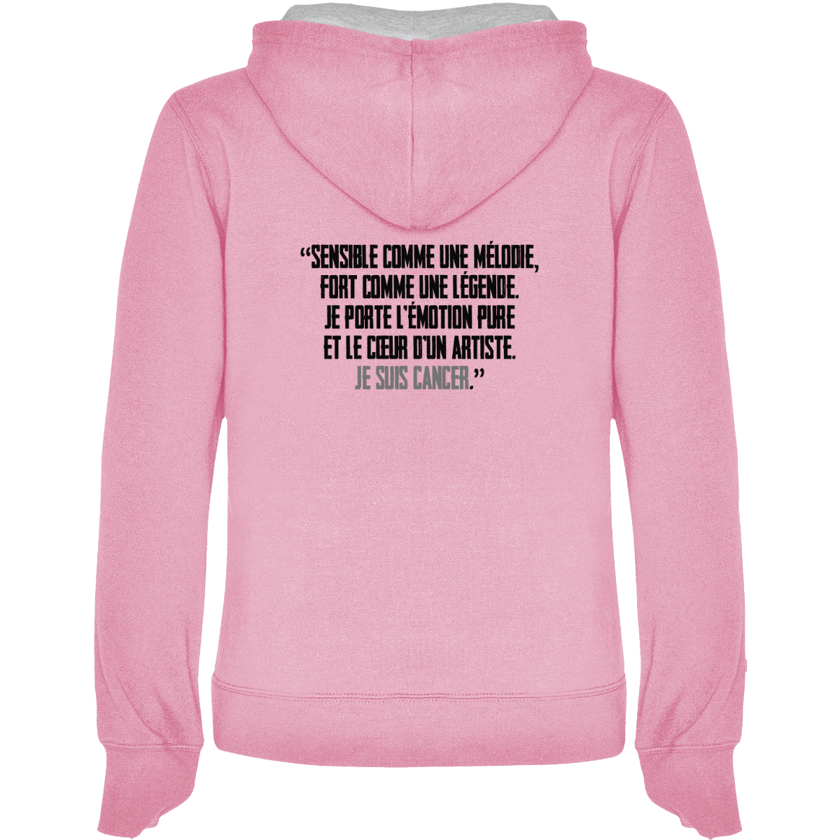 Felpa con cappuccio, anche  bicolore, tessuto doppio, con cordone regolabile. Tasca frontale. Costine 1x1 su polsini e girovita. 50% cotone / 50% poliestere, interno felpato, 280 g/m².