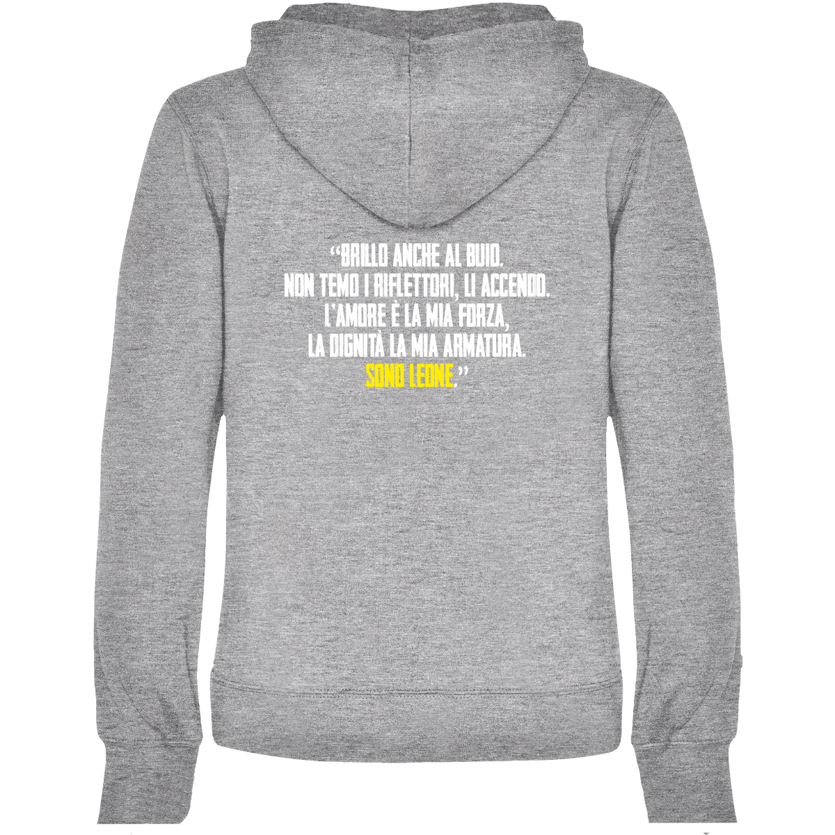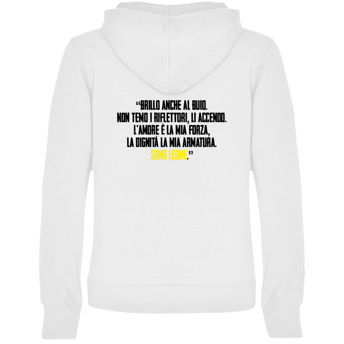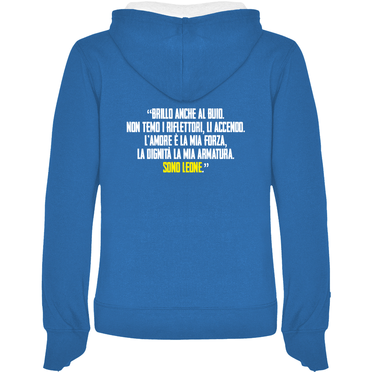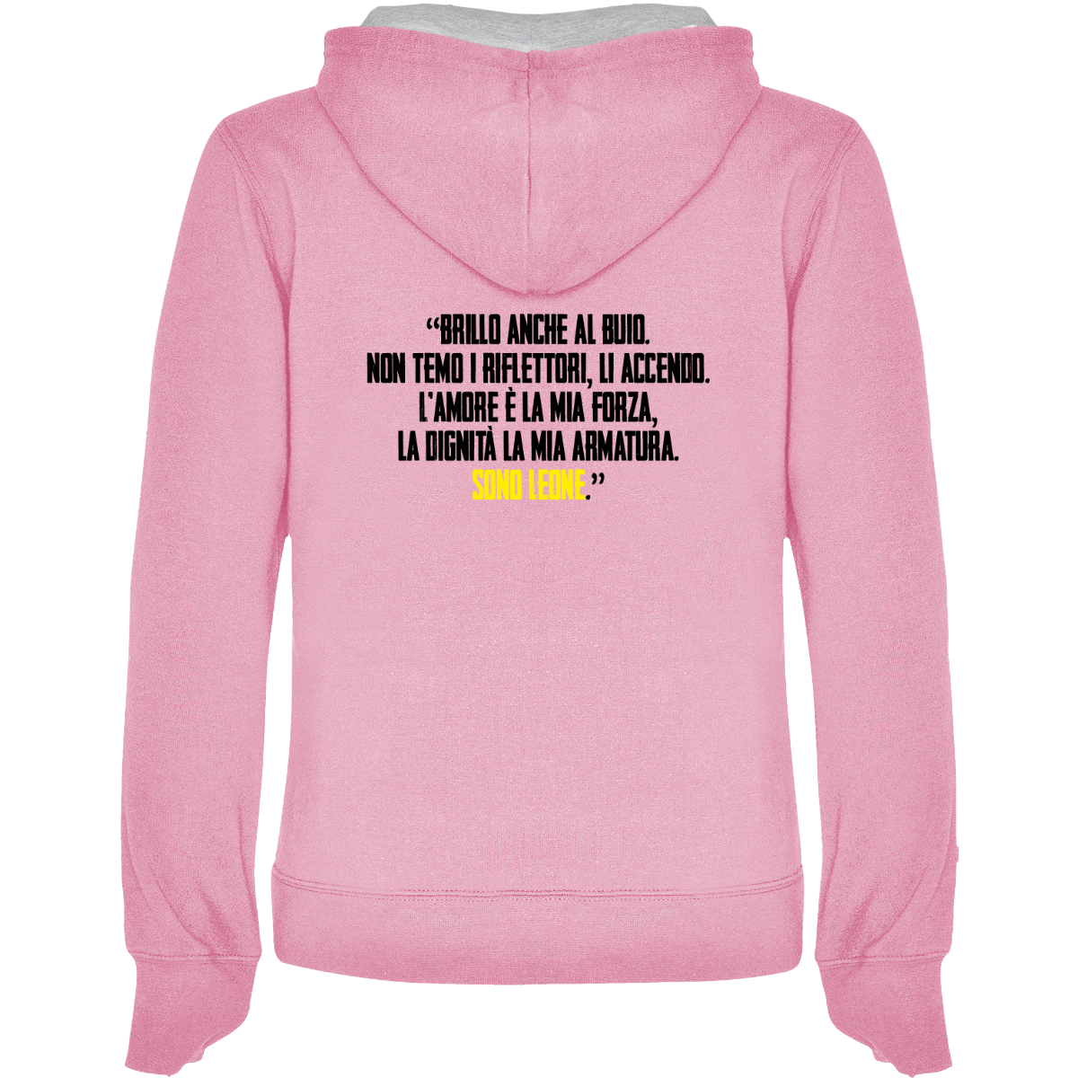 Felpa con cappuccio, anche  bicolore, tessuto doppio, con cordone regolabile. Tasca frontale. Costine 1x1 su polsini e girovita. 50% cotone / 50% poliestere, interno felpato, 280 g/m².