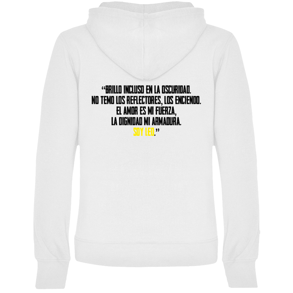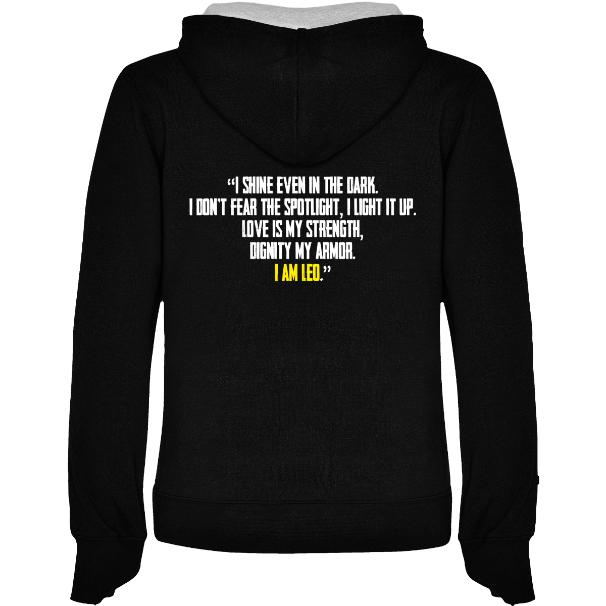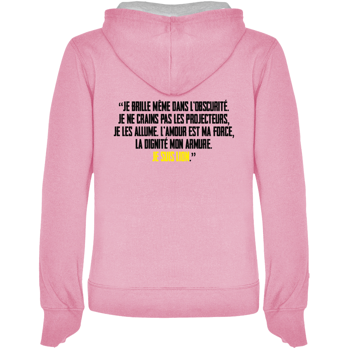 Felpa con cappuccio, anche  bicolore, tessuto doppio, con cordone regolabile. Tasca frontale. Costine 1x1 su polsini e girovita. 50% cotone / 50% poliestere, interno felpato, 280 g/m².