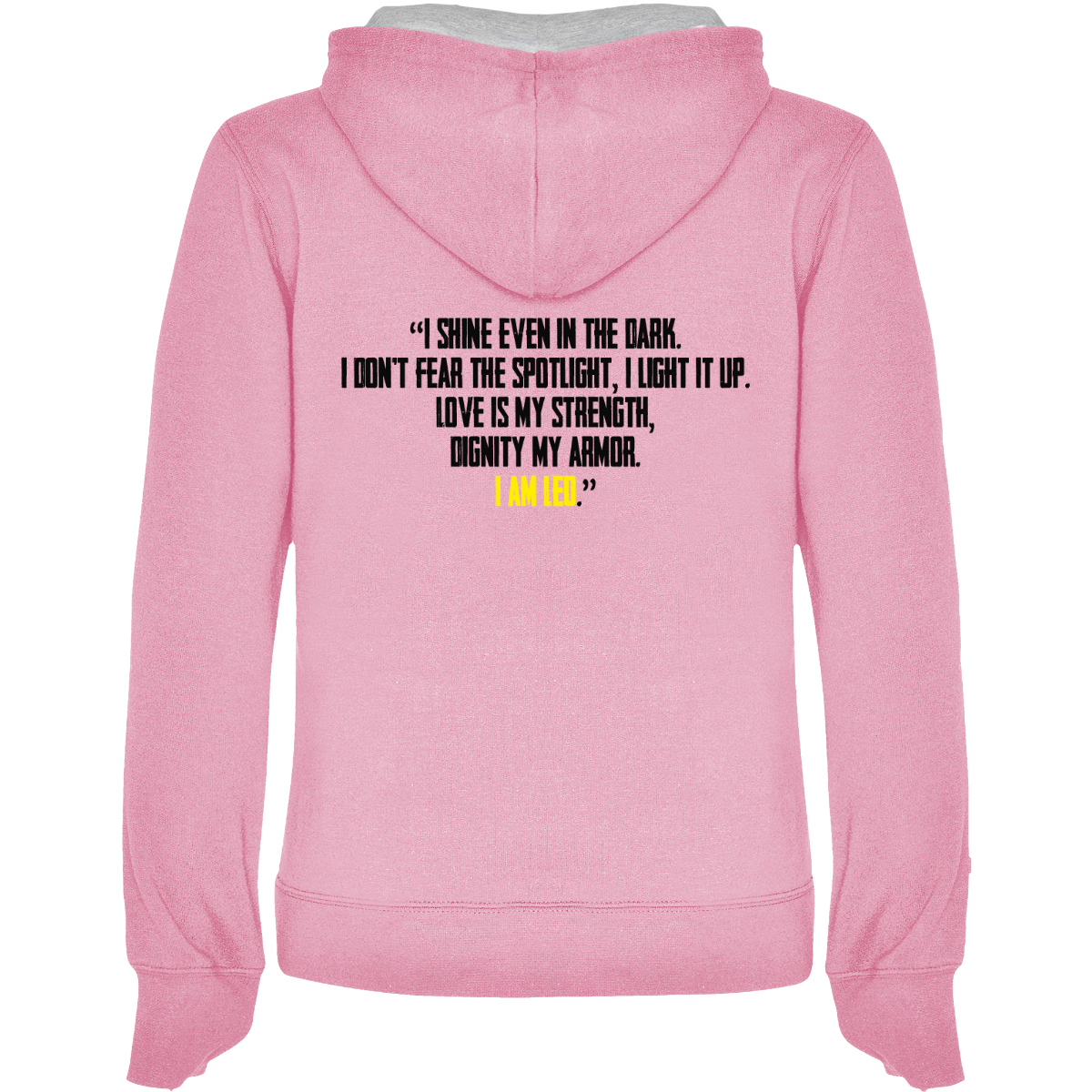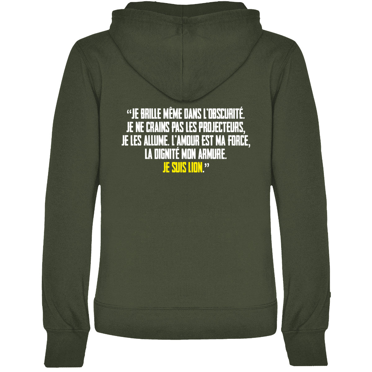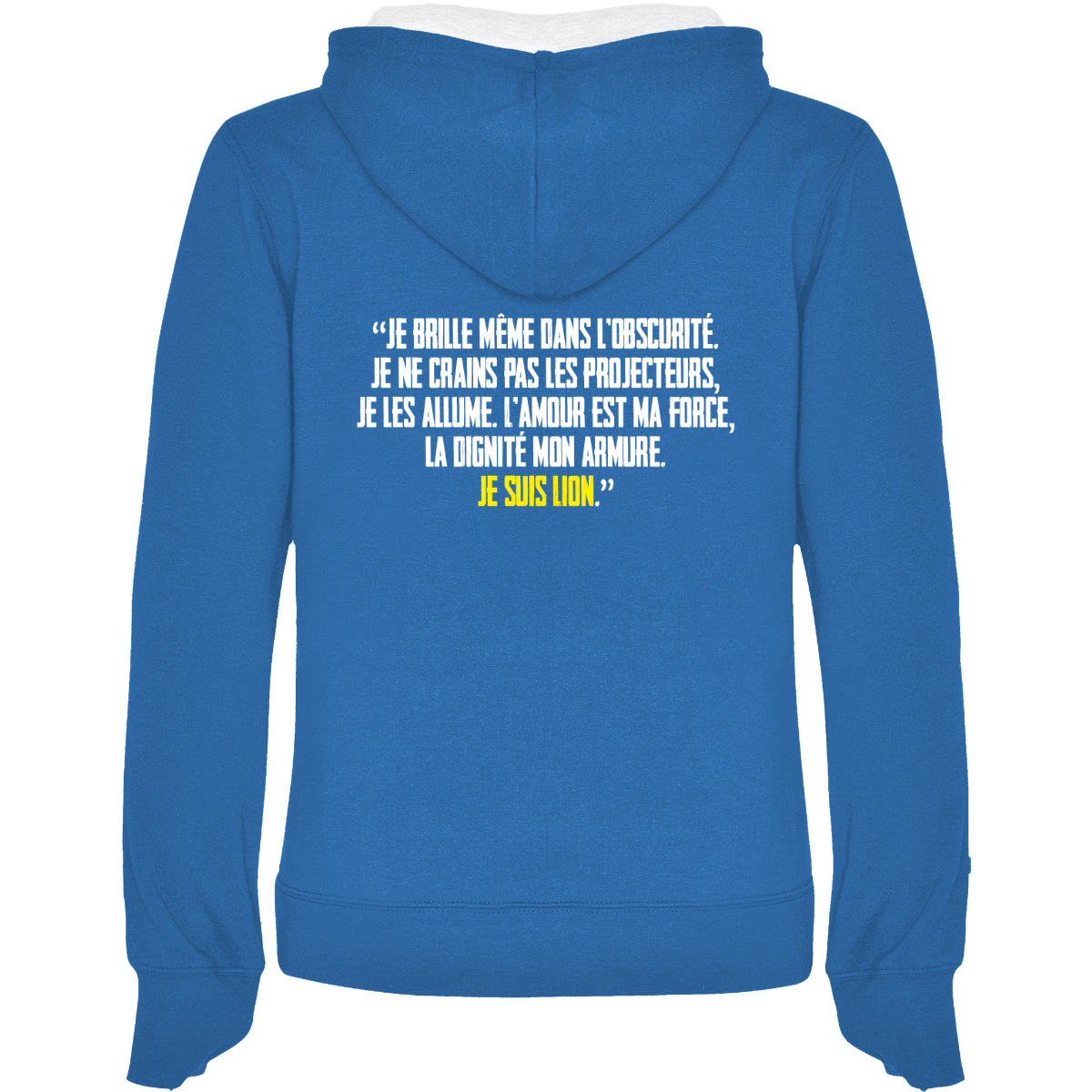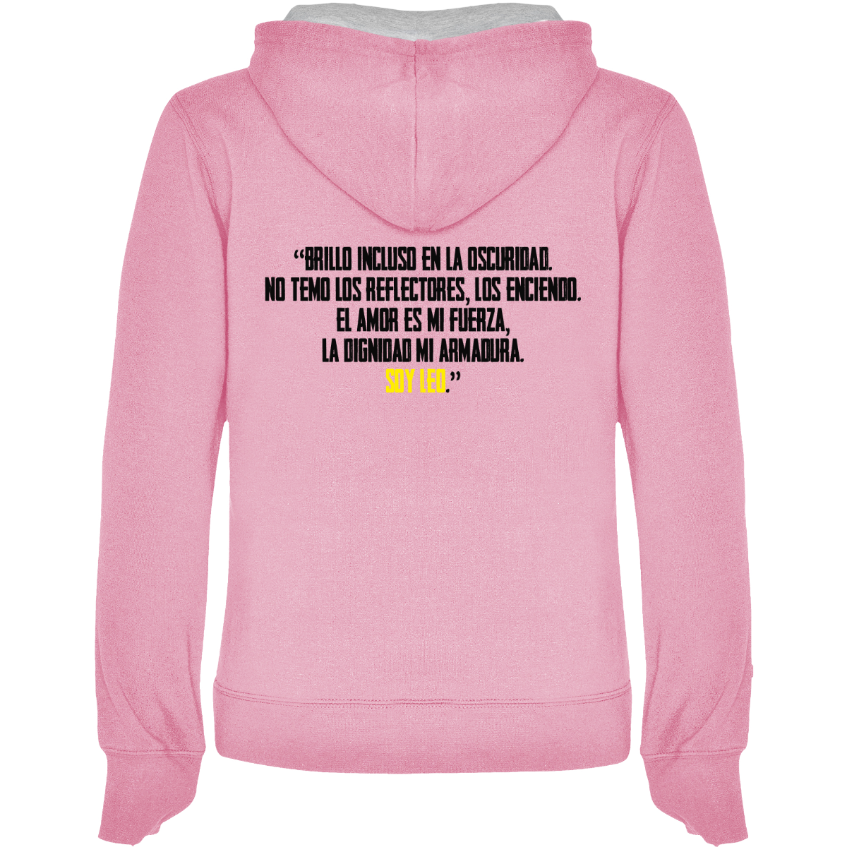 Felpa con cappuccio, anche  bicolore, tessuto doppio, con cordone regolabile. Tasca frontale. Costine 1x1 su polsini e girovita. 50% cotone / 50% poliestere, interno felpato, 280 g/m².