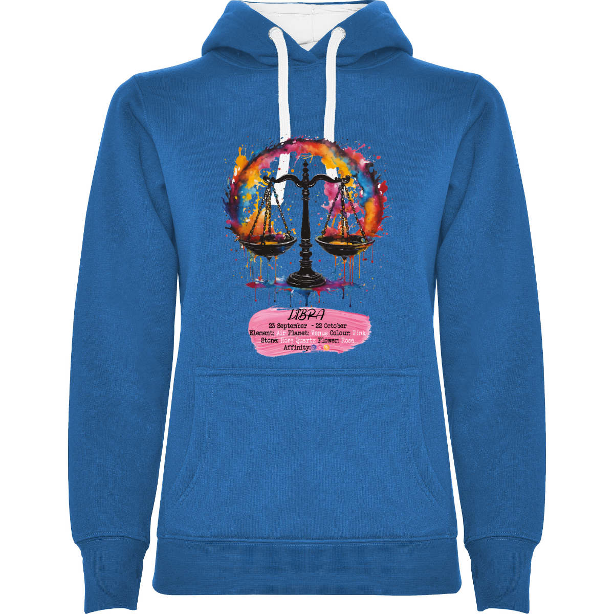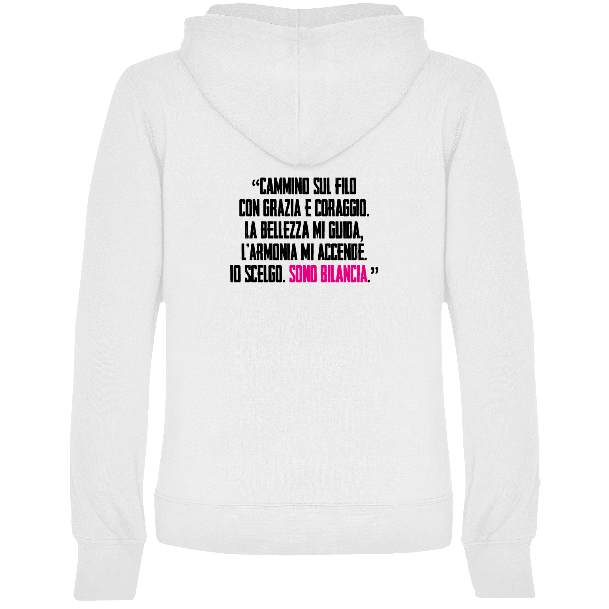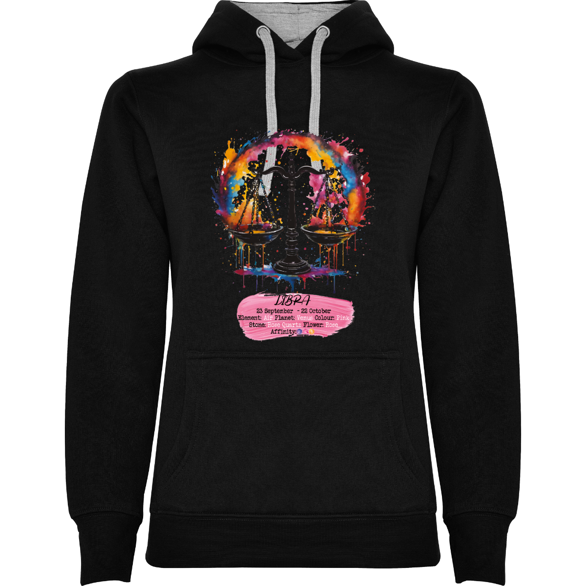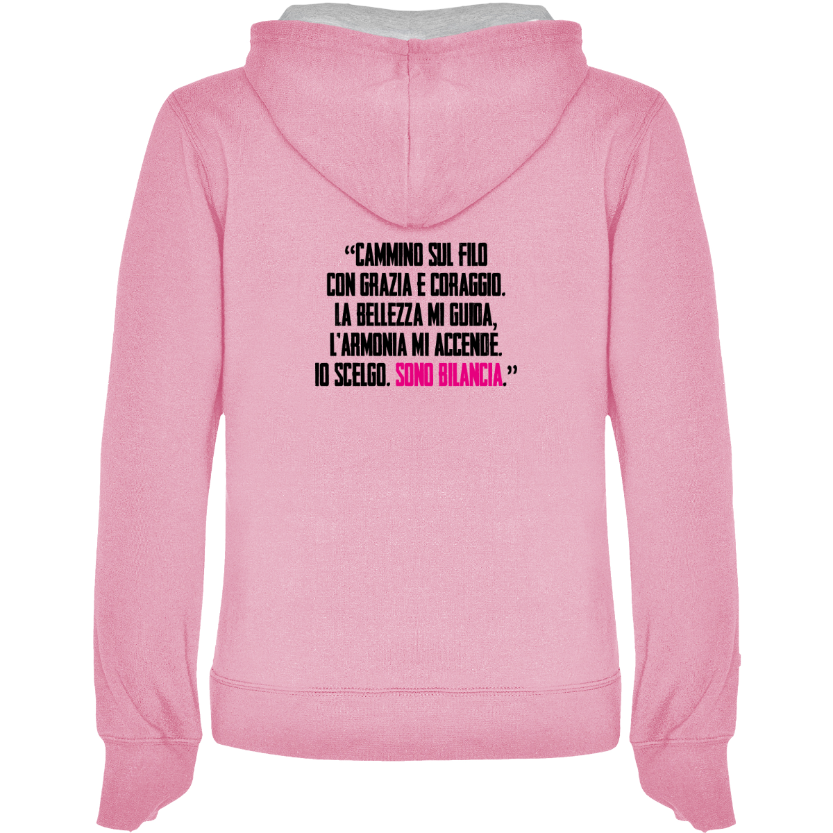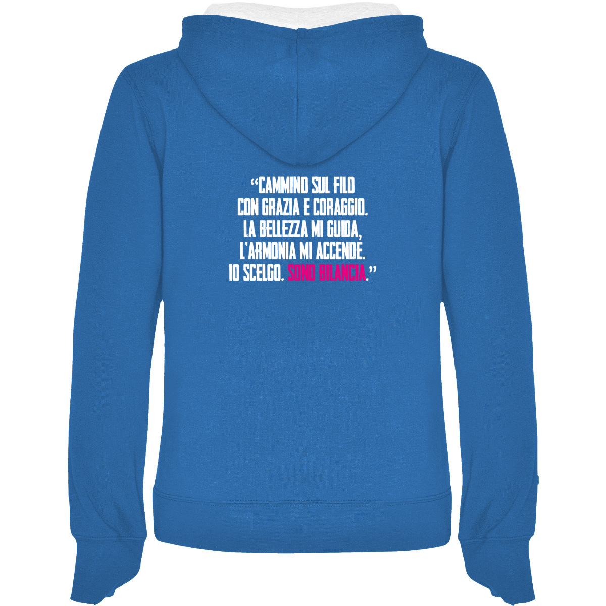Felpa con cappuccio, anche  bicolore, tessuto doppio, con cordone regolabile. Tasca frontale. Costine 1x1 su polsini e girovita. 50% cotone / 50% poliestere, interno felpato, 280 g/m².