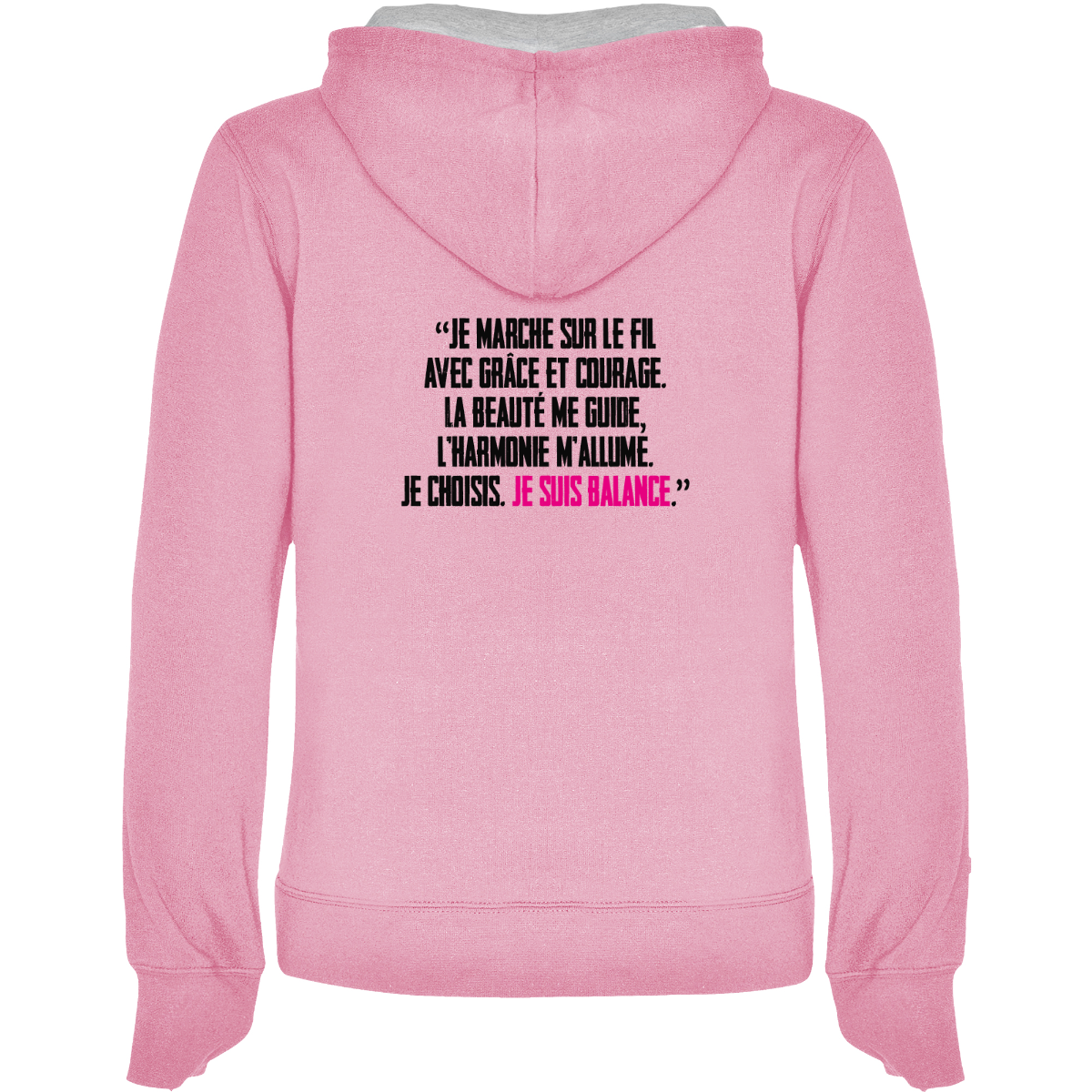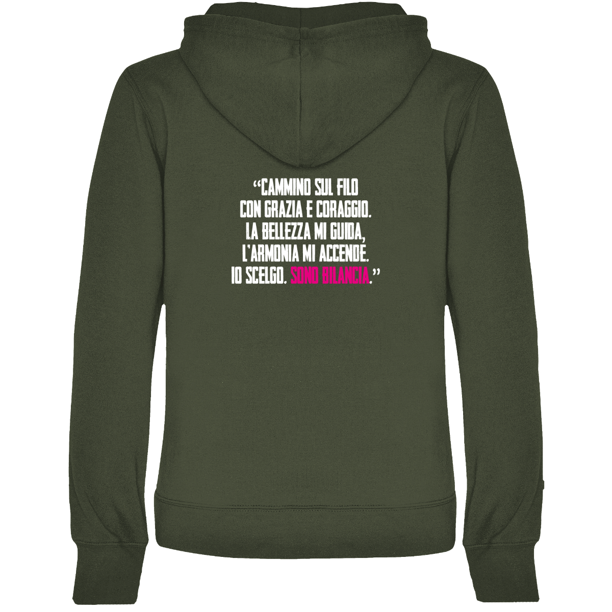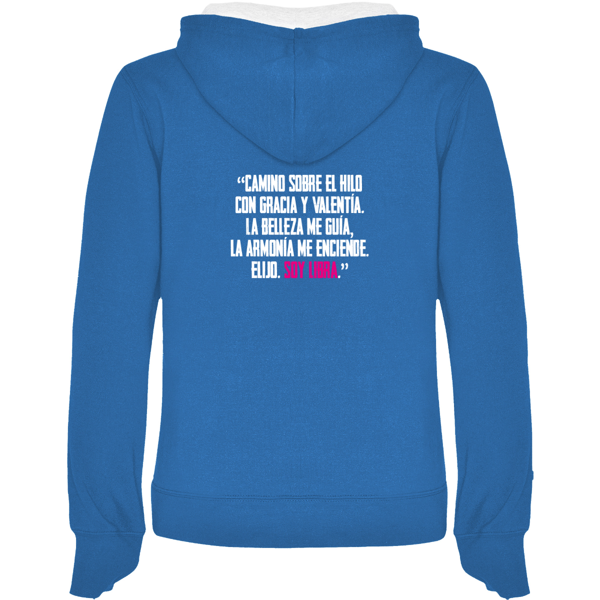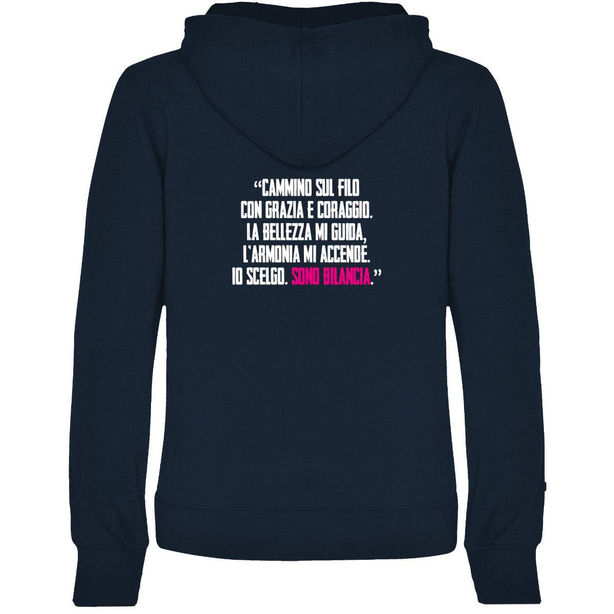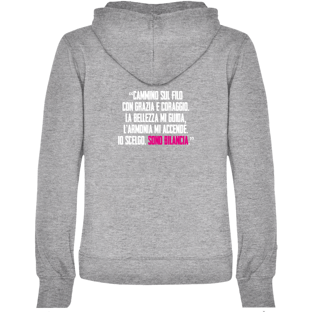 Felpa con cappuccio, anche  bicolore, tessuto doppio, con cordone regolabile. Tasca frontale. Costine 1x1 su polsini e girovita. 50% cotone / 50% poliestere, interno felpato, 280 g/m².
