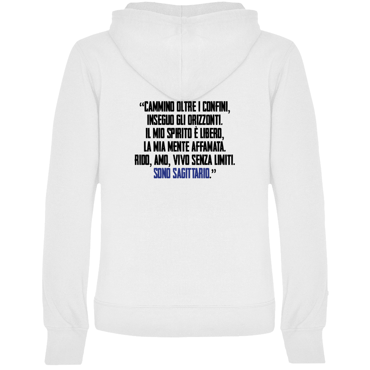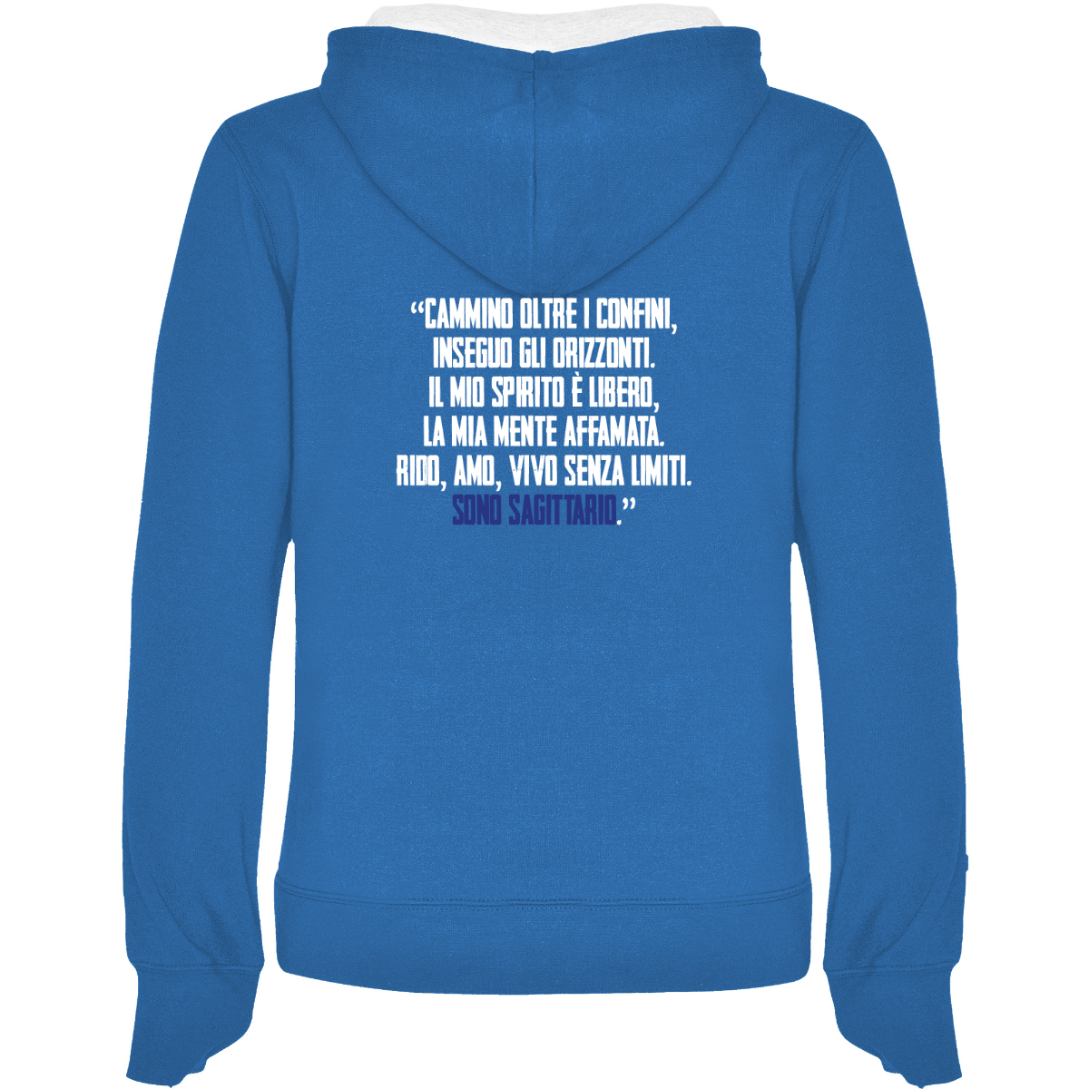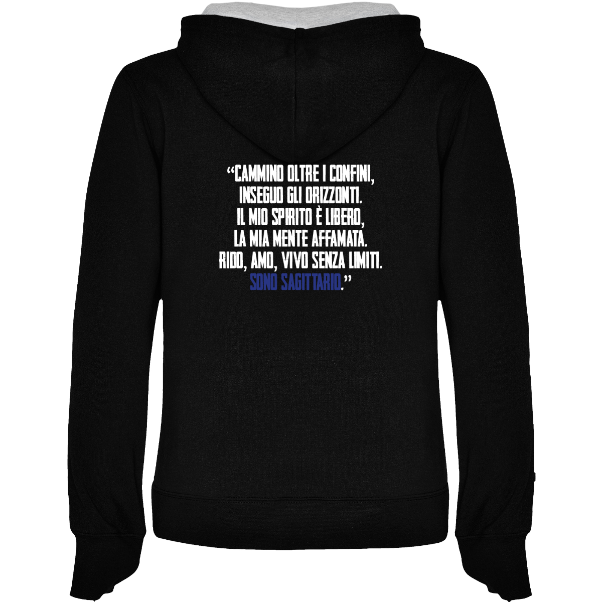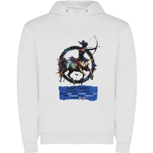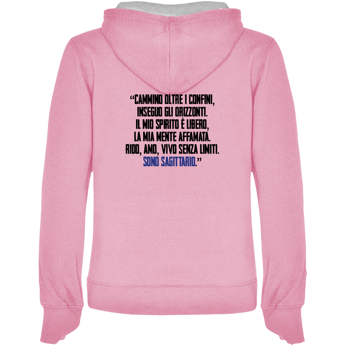 Felpa con cappuccio, anche  bicolore, tessuto doppio, con cordone regolabile. Tasca frontale. Costine 1x1 su polsini e girovita. 50% cotone / 50% poliestere, interno felpato, 280 g/m².