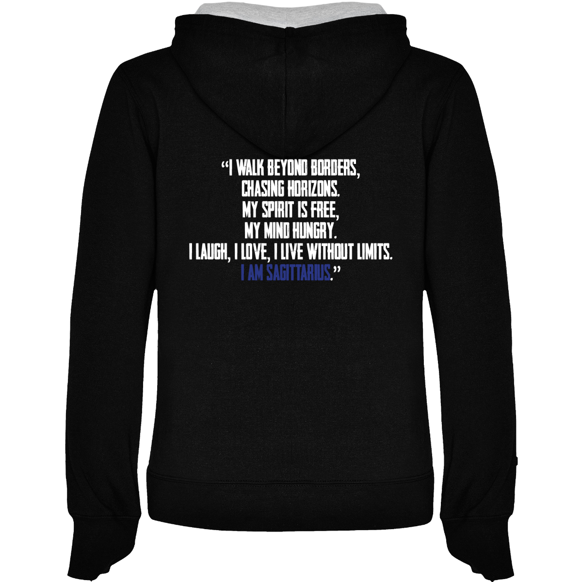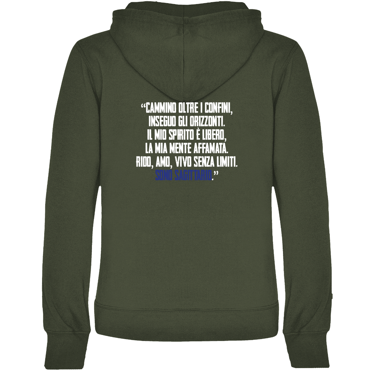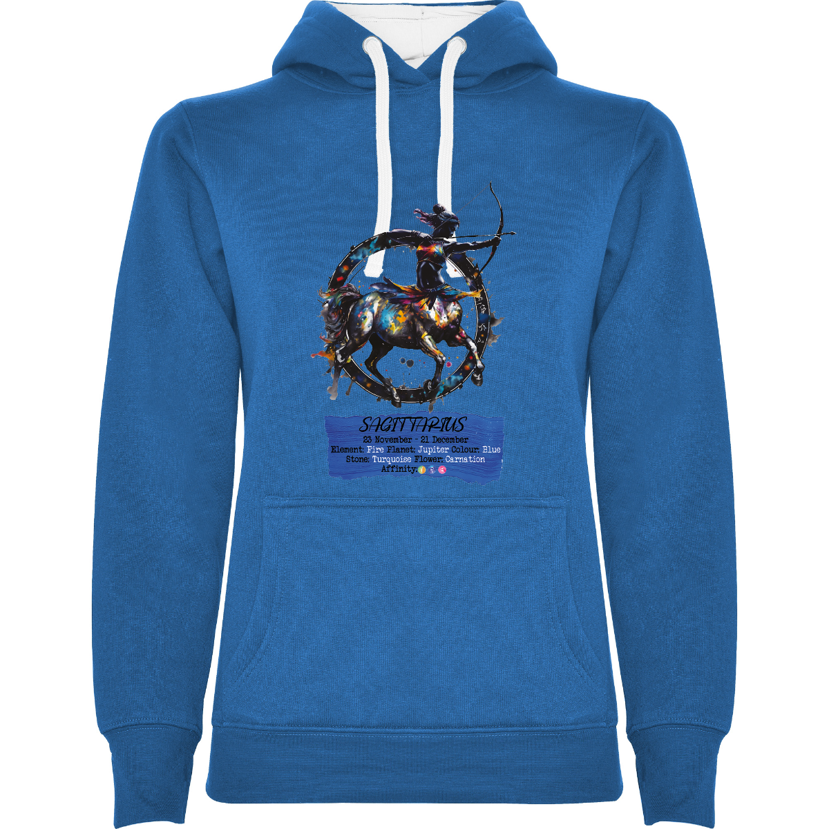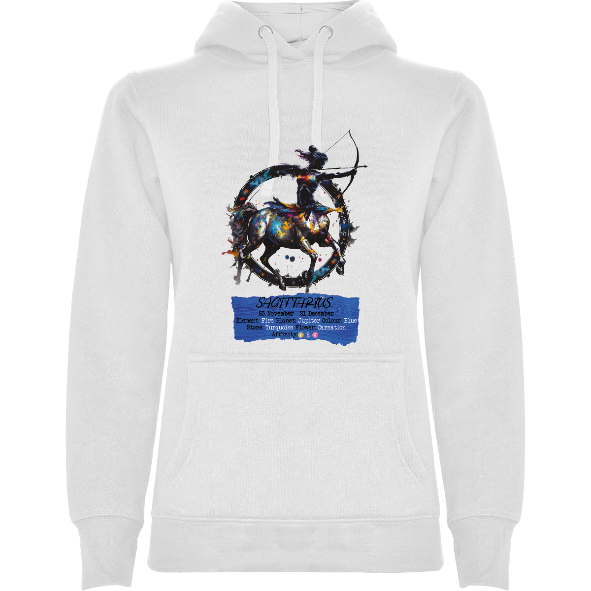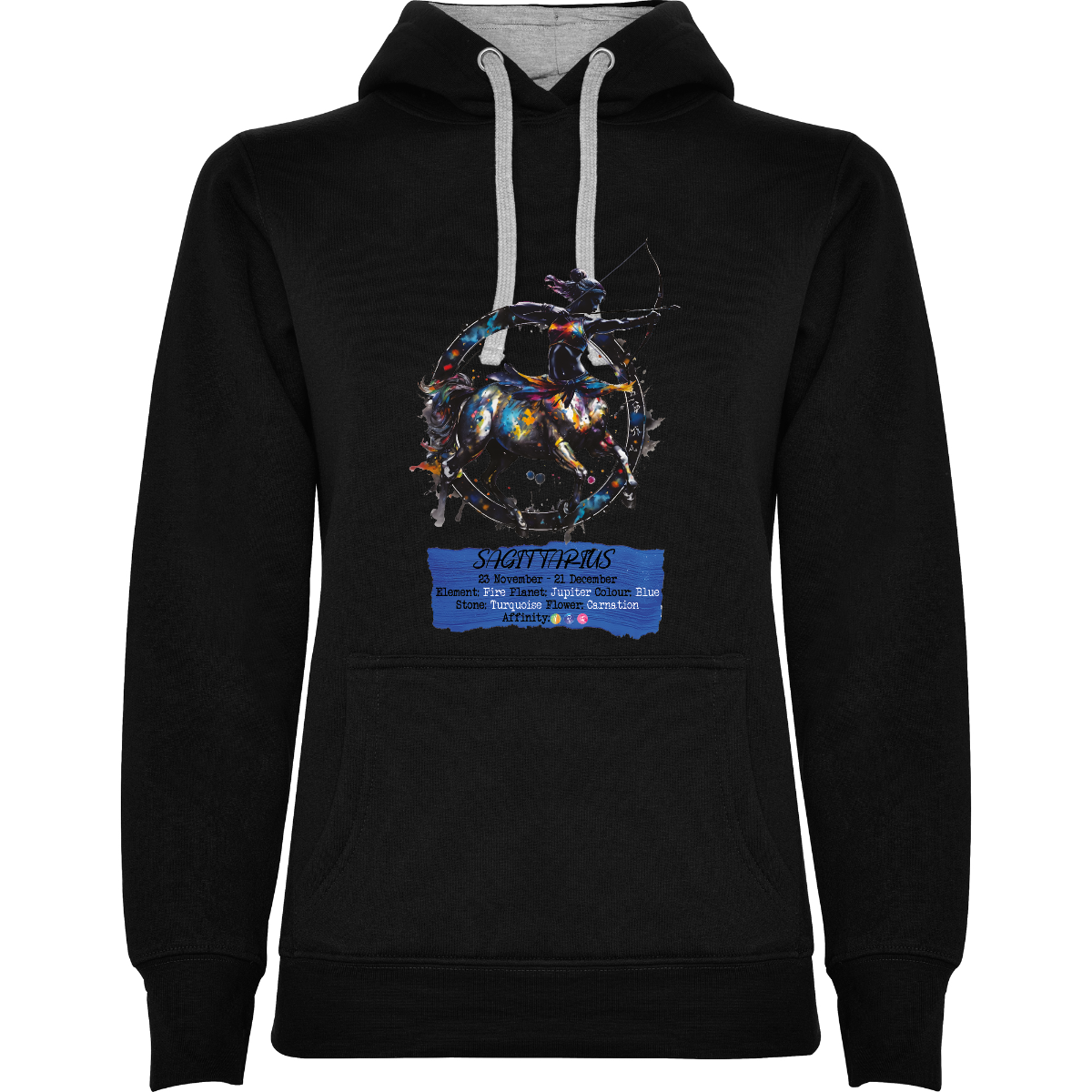 Felpa con cappuccio, anche  bicolore, tessuto doppio, con cordone regolabile. Tasca frontale. Costine 1x1 su polsini e girovita. 50% cotone / 50% poliestere, interno felpato, 280 g/m².