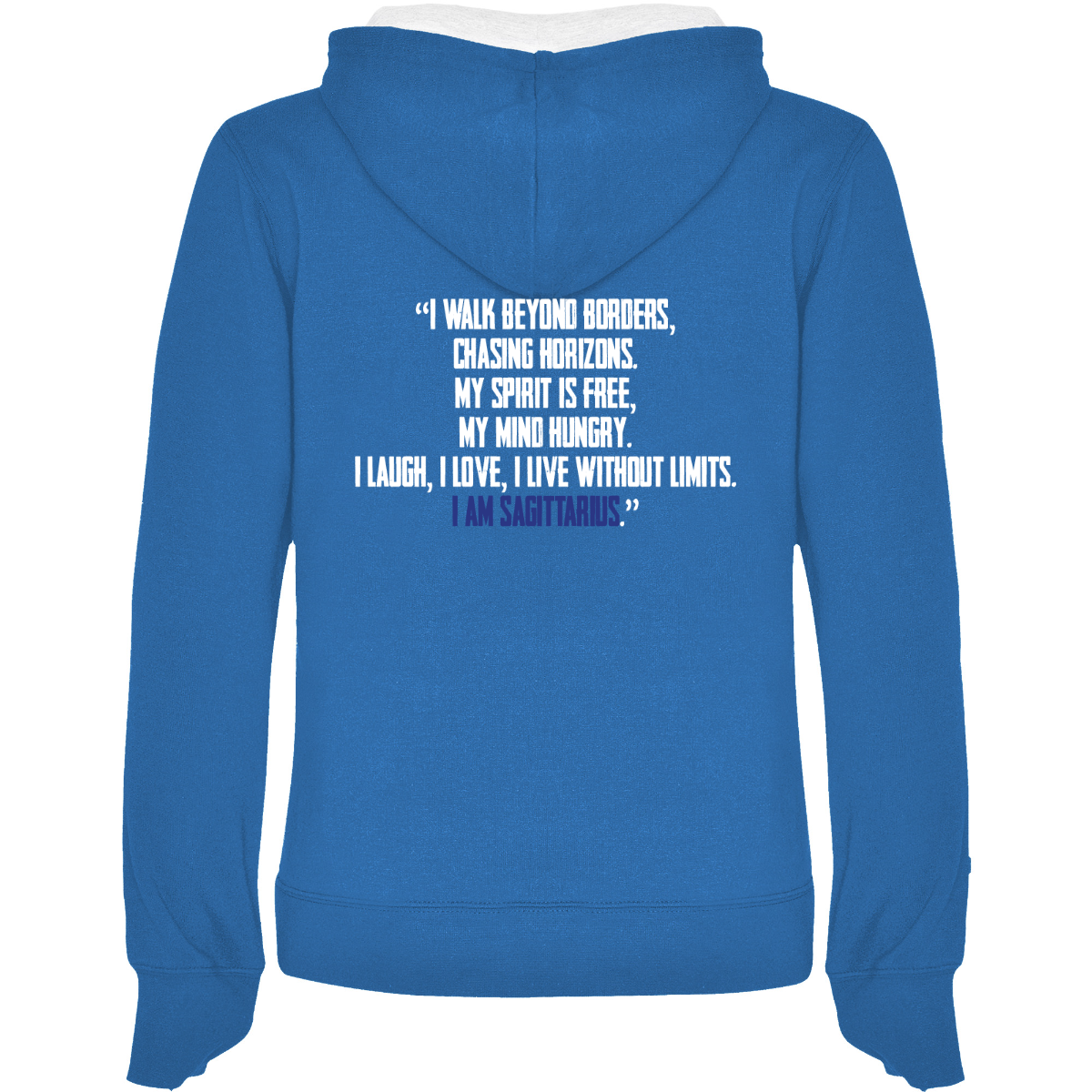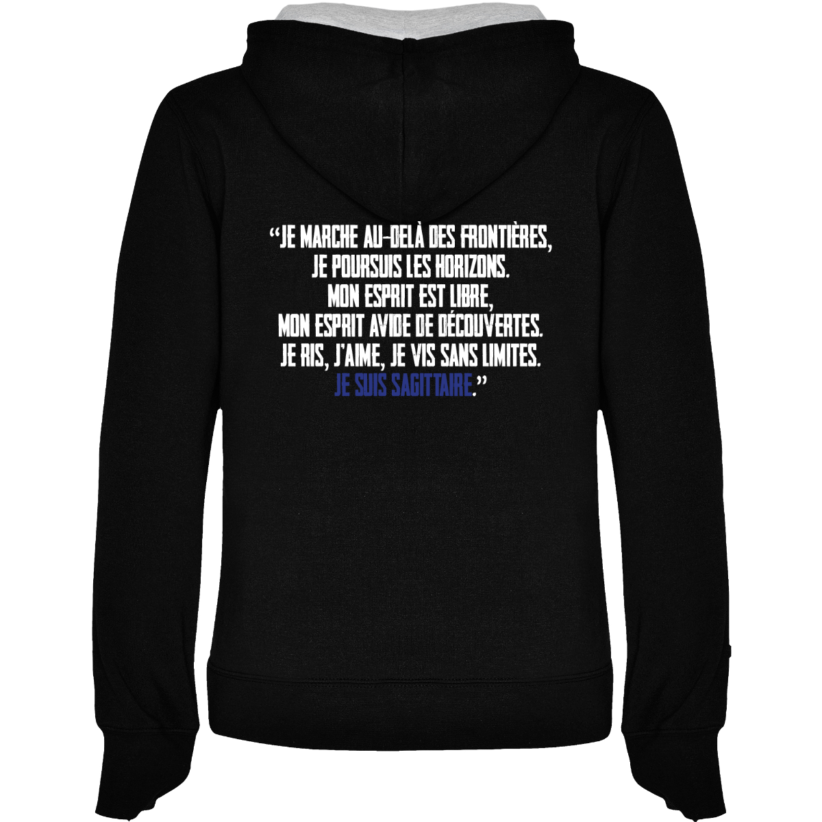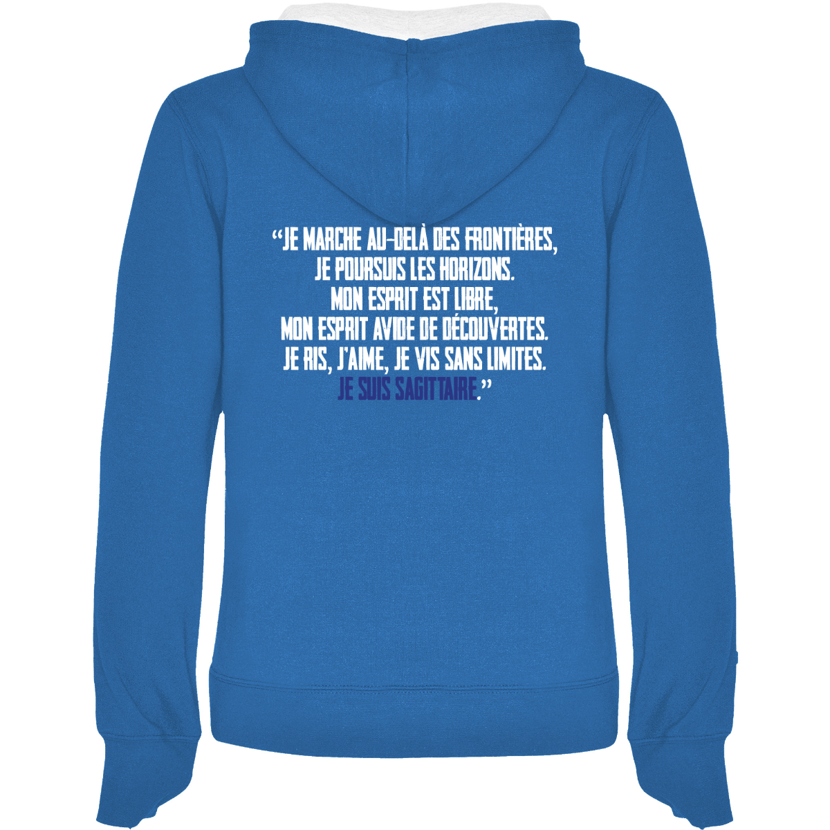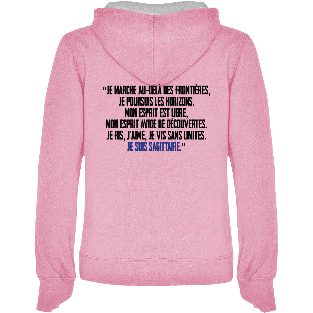 Felpa con cappuccio, anche  bicolore, tessuto doppio, con cordone regolabile. Tasca frontale. Costine 1x1 su polsini e girovita. 50% cotone / 50% poliestere, interno felpato, 280 g/m².