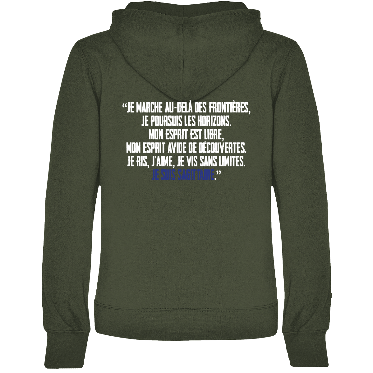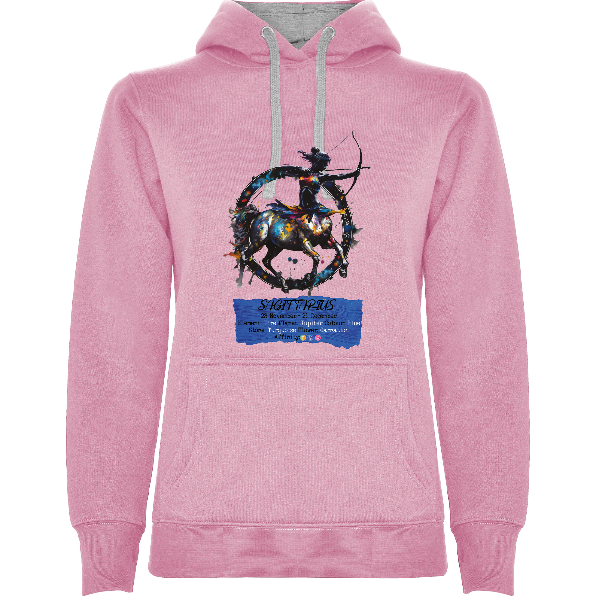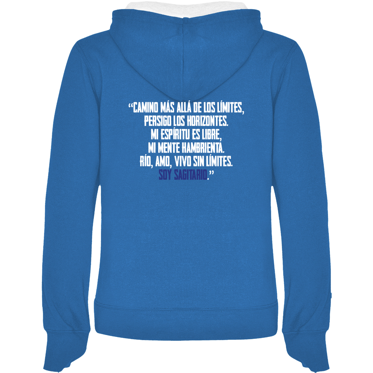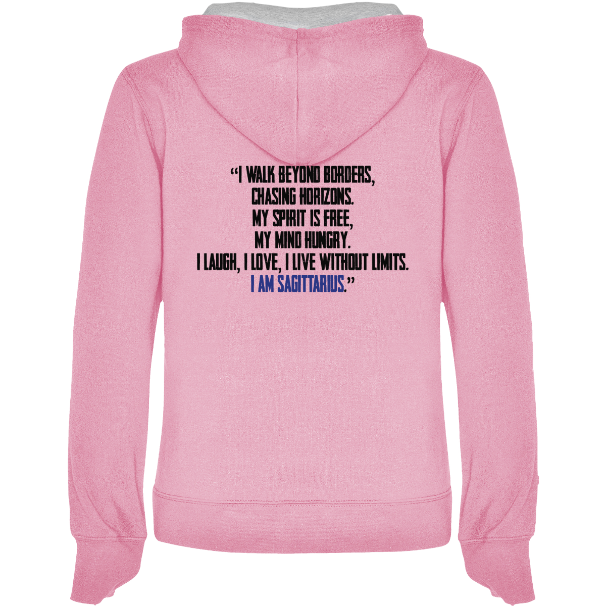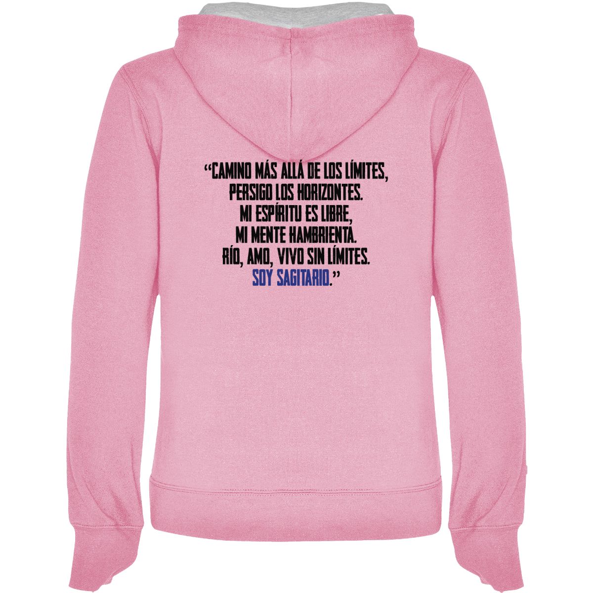 Felpa con cappuccio, anche  bicolore, tessuto doppio, con cordone regolabile. Tasca frontale. Costine 1x1 su polsini e girovita. 50% cotone / 50% poliestere, interno felpato, 280 g/m².