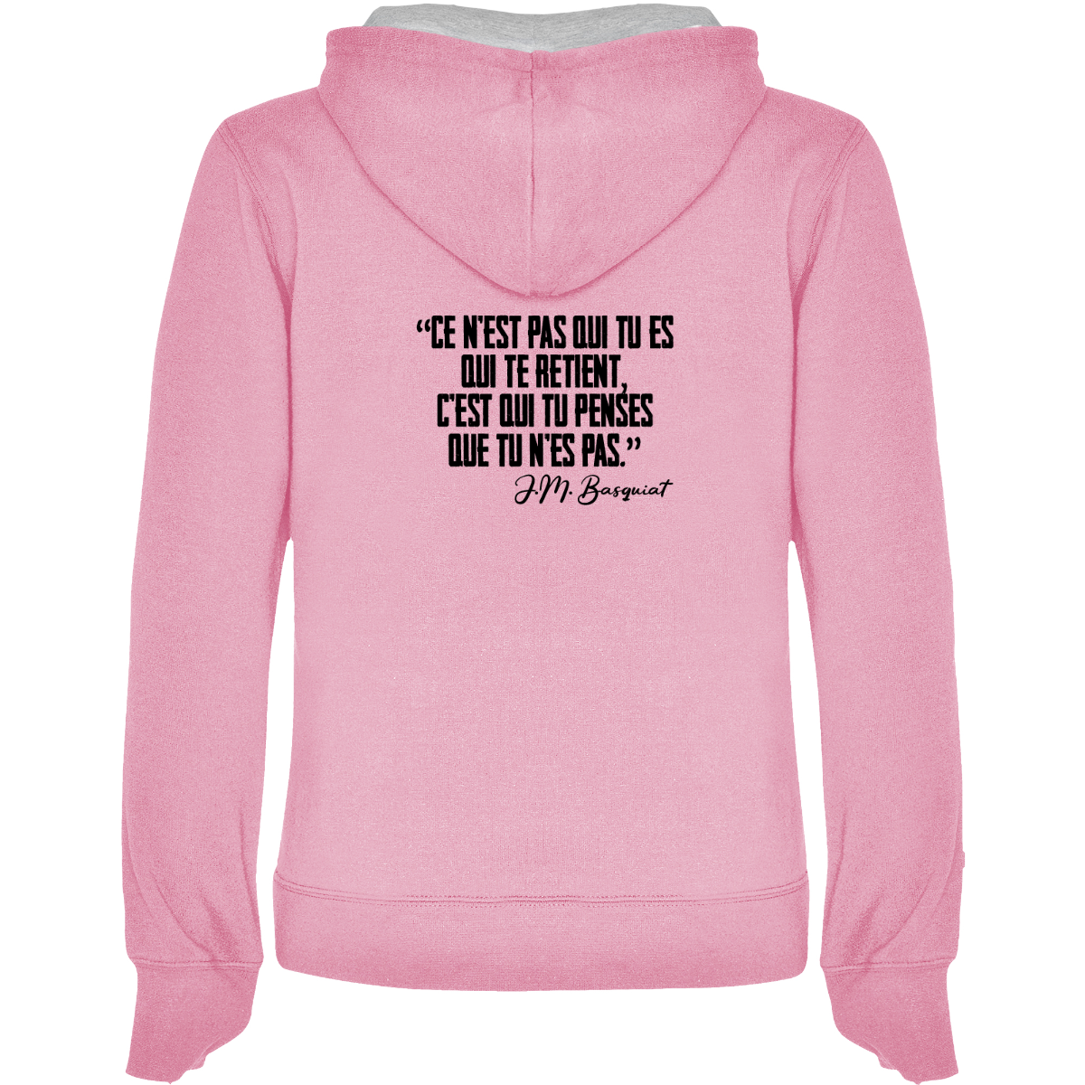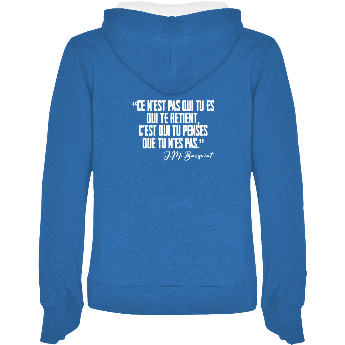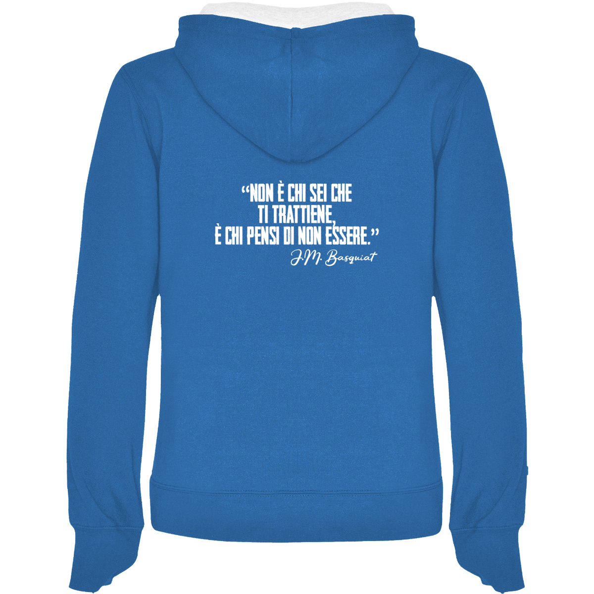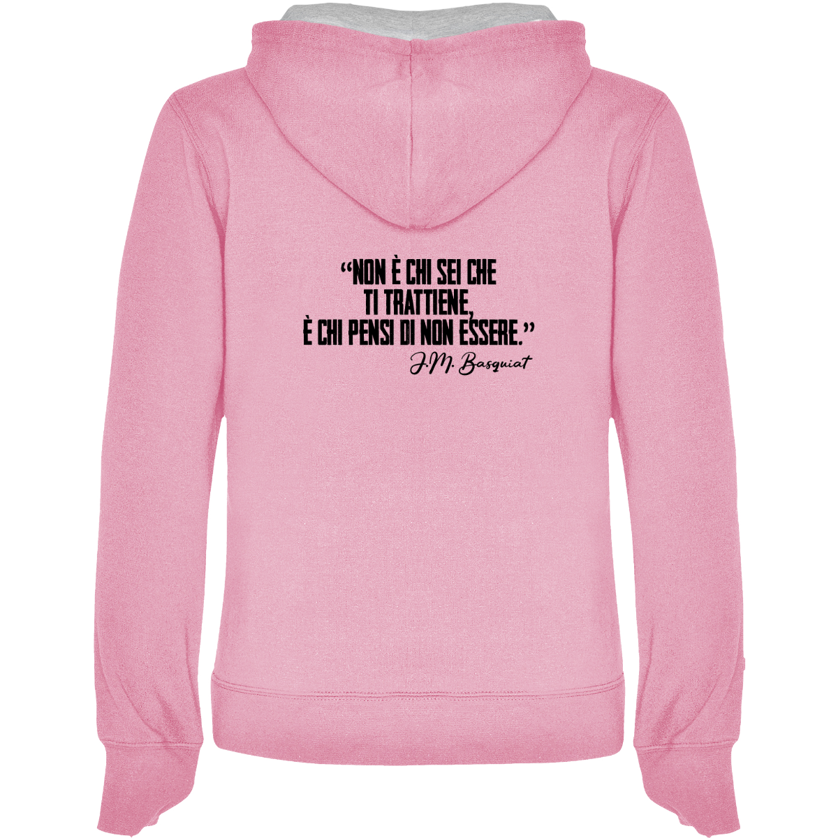 Felpa con cappuccio, anche  bicolore, tessuto doppio, con cordone regolabile. Tasca frontale. Costine 1x1 su polsini e girovita. 50% cotone / 50% poliestere, interno felpato, 280 g/m².