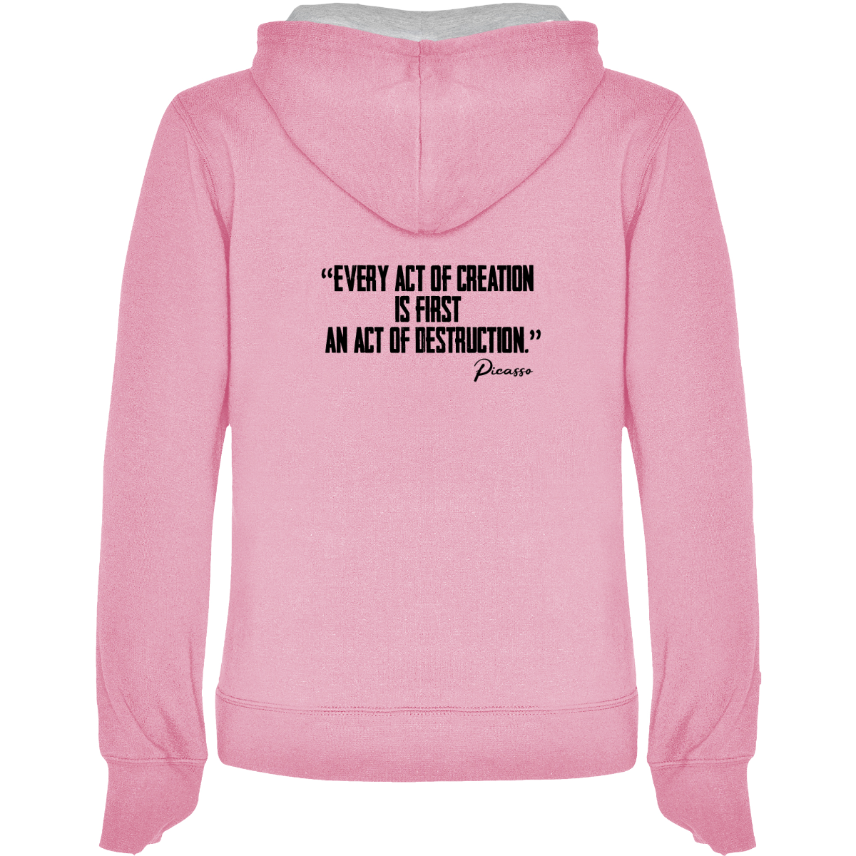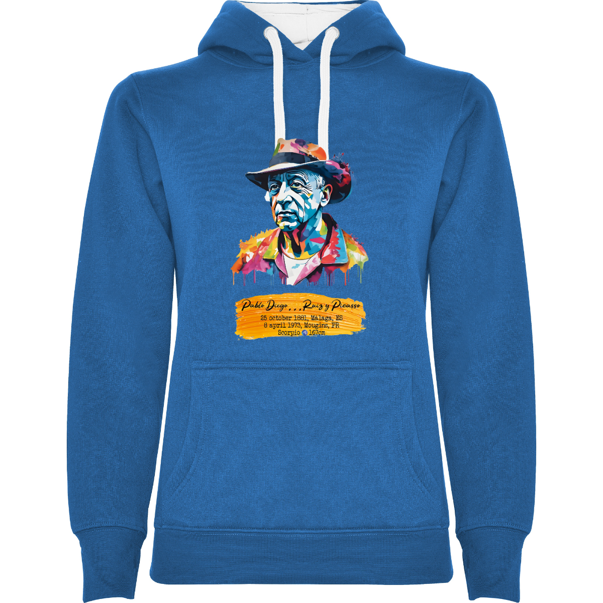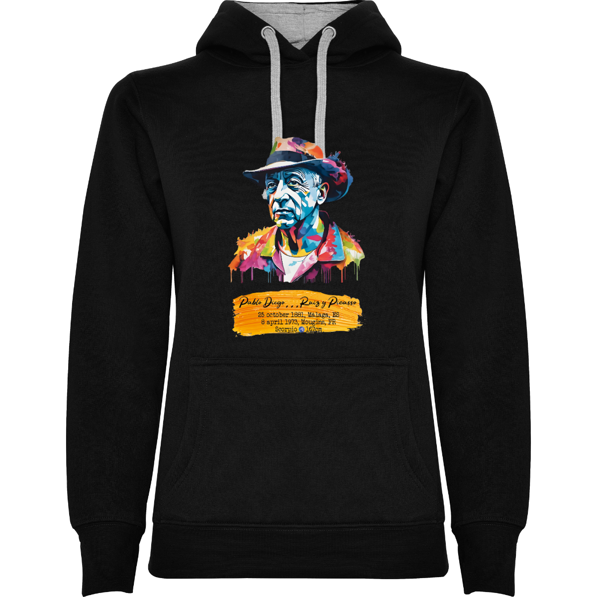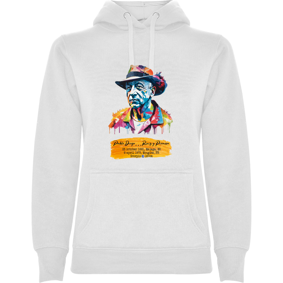 Felpa con cappuccio, anche  bicolore, tessuto doppio, con cordone regolabile. Tasca frontale. Costine 1x1 su polsini e girovita. 50% cotone / 50% poliestere, interno felpato, 280 g/m².