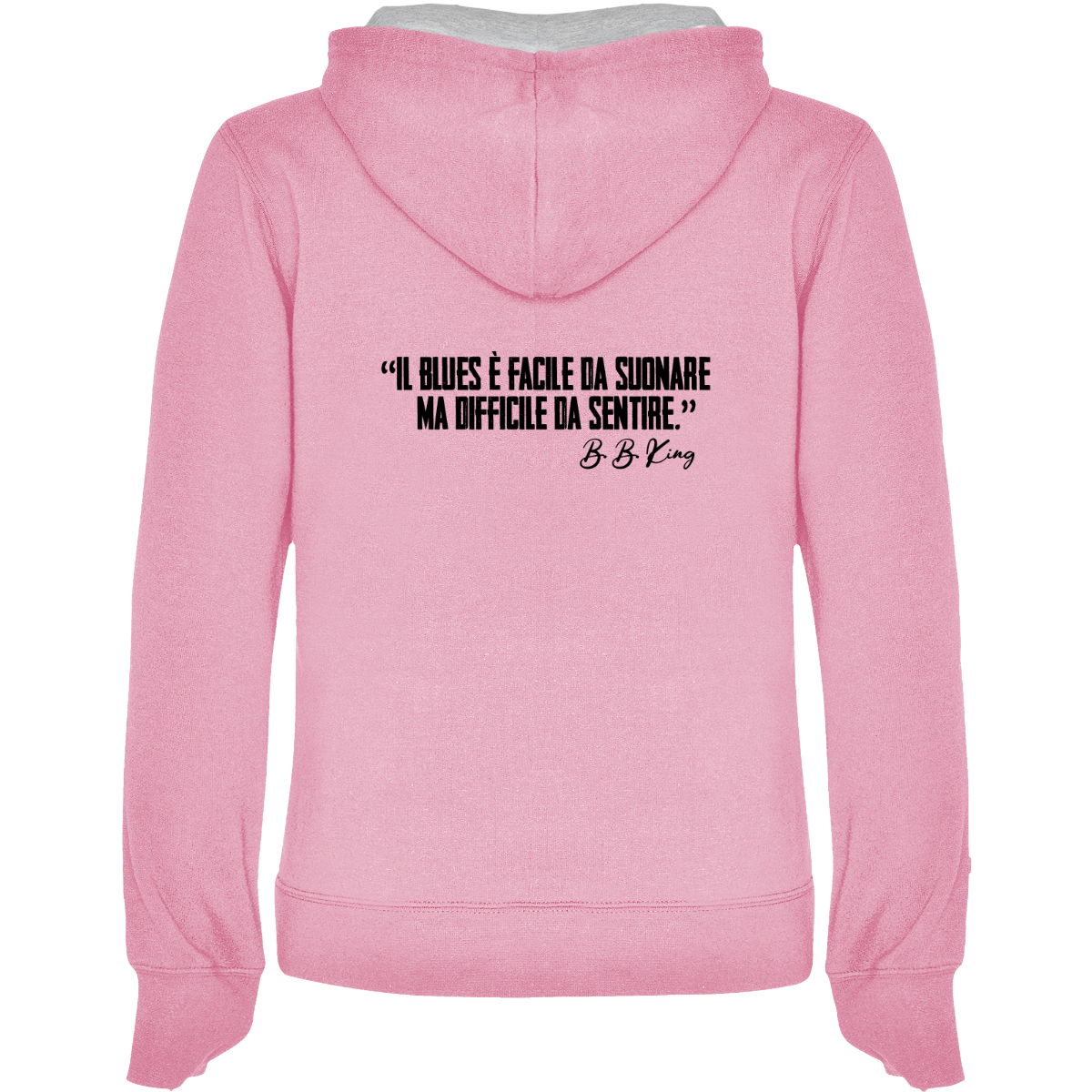 Felpa con cappuccio, anche  bicolore, tessuto doppio, con cordone regolabile. Tasca frontale. Costine 1x1 su polsini e girovita. 50% cotone / 50% poliestere, interno felpato, 280 g/m².