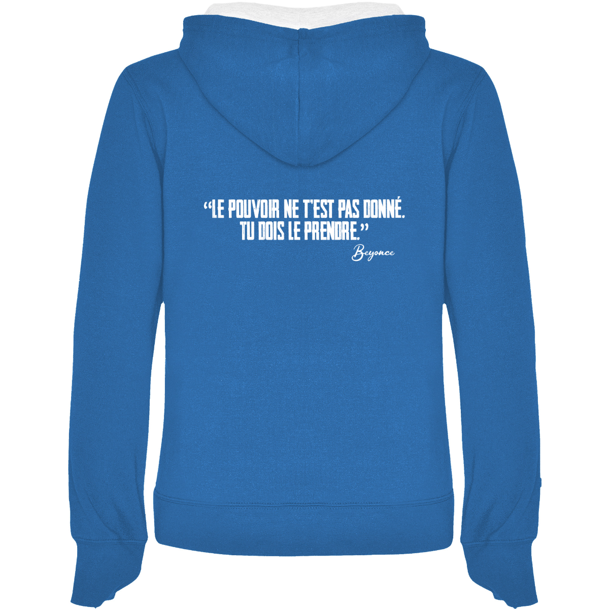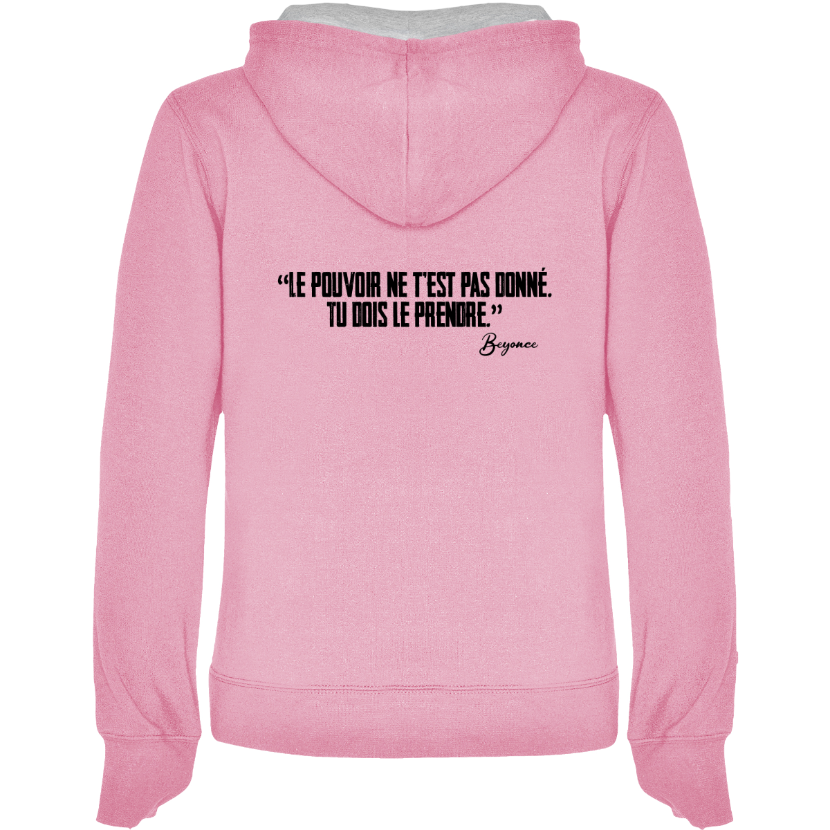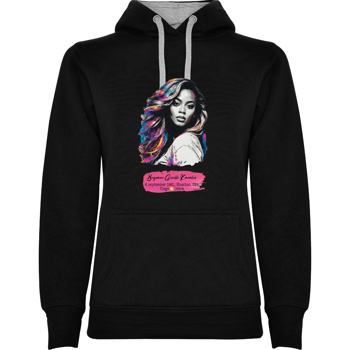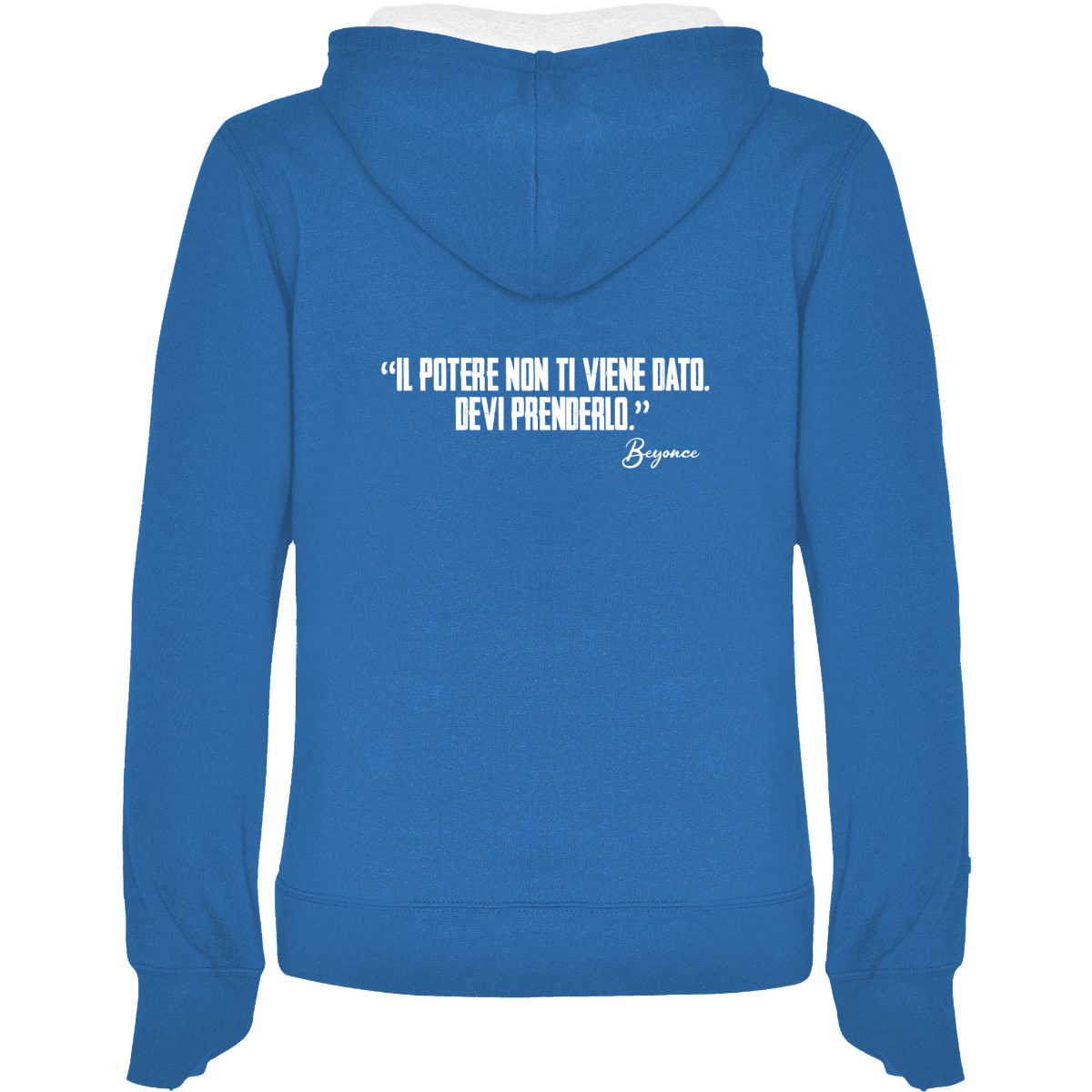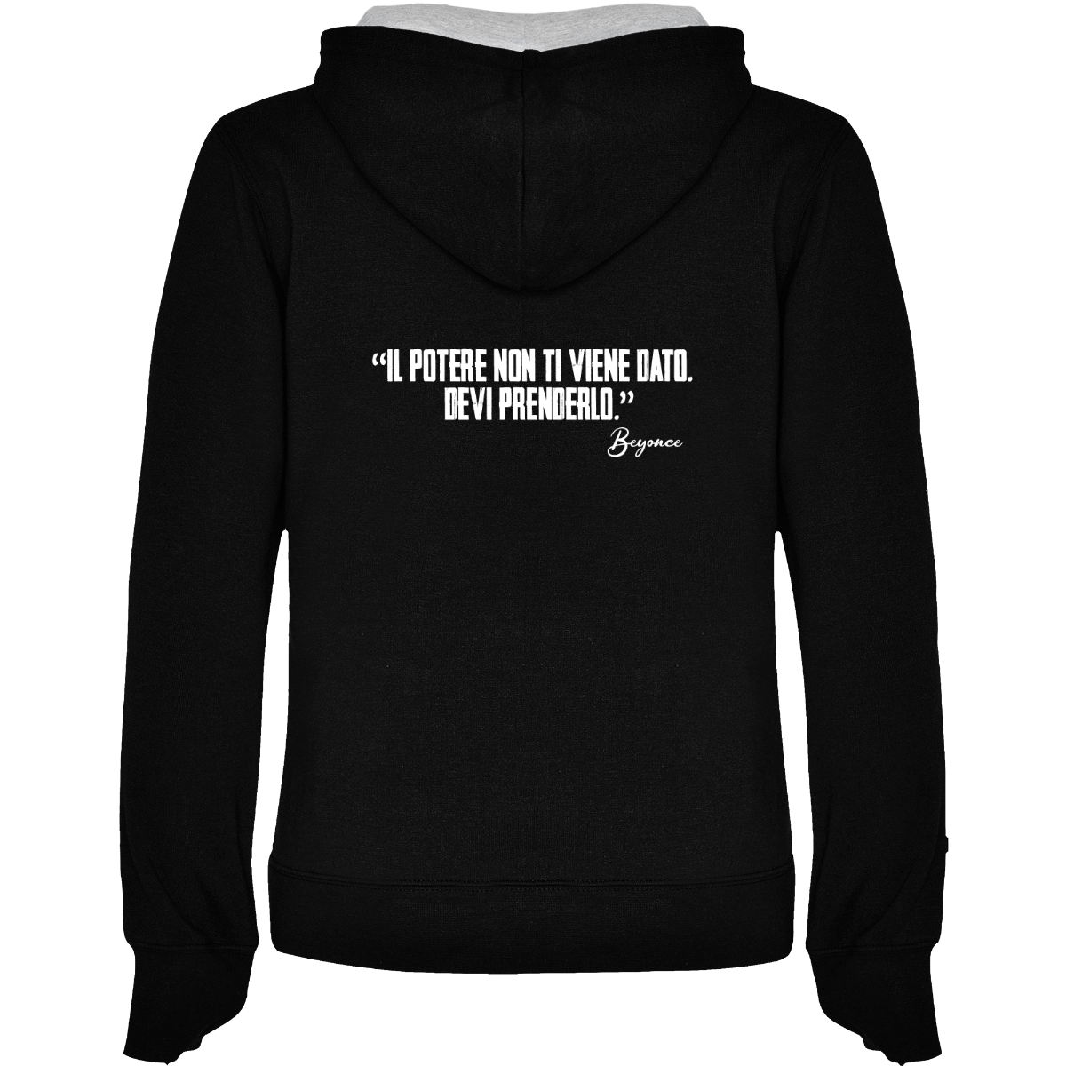 Felpa con cappuccio, anche  bicolore, tessuto doppio, con cordone regolabile. Tasca frontale. Costine 1x1 su polsini e girovita. 50% cotone / 50% poliestere, interno felpato, 280 g/m².