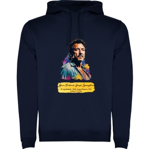 Felpa con cappuccio, anche  bicolore, tessuto doppio, con cordone regolabile. Tasca frontale. Costine 1x1 su polsini e girovita. 50% cotone / 50% poliestere, interno felpato, 280 g/m².