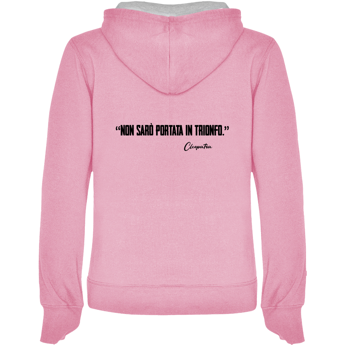 Felpa con cappuccio, anche  bicolore, tessuto doppio, con cordone regolabile. Tasca frontale. Costine 1x1 su polsini e girovita. 50% cotone / 50% poliestere, interno felpato, 280 g/m².