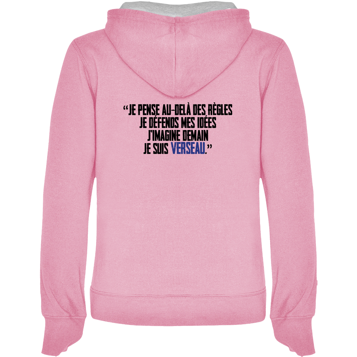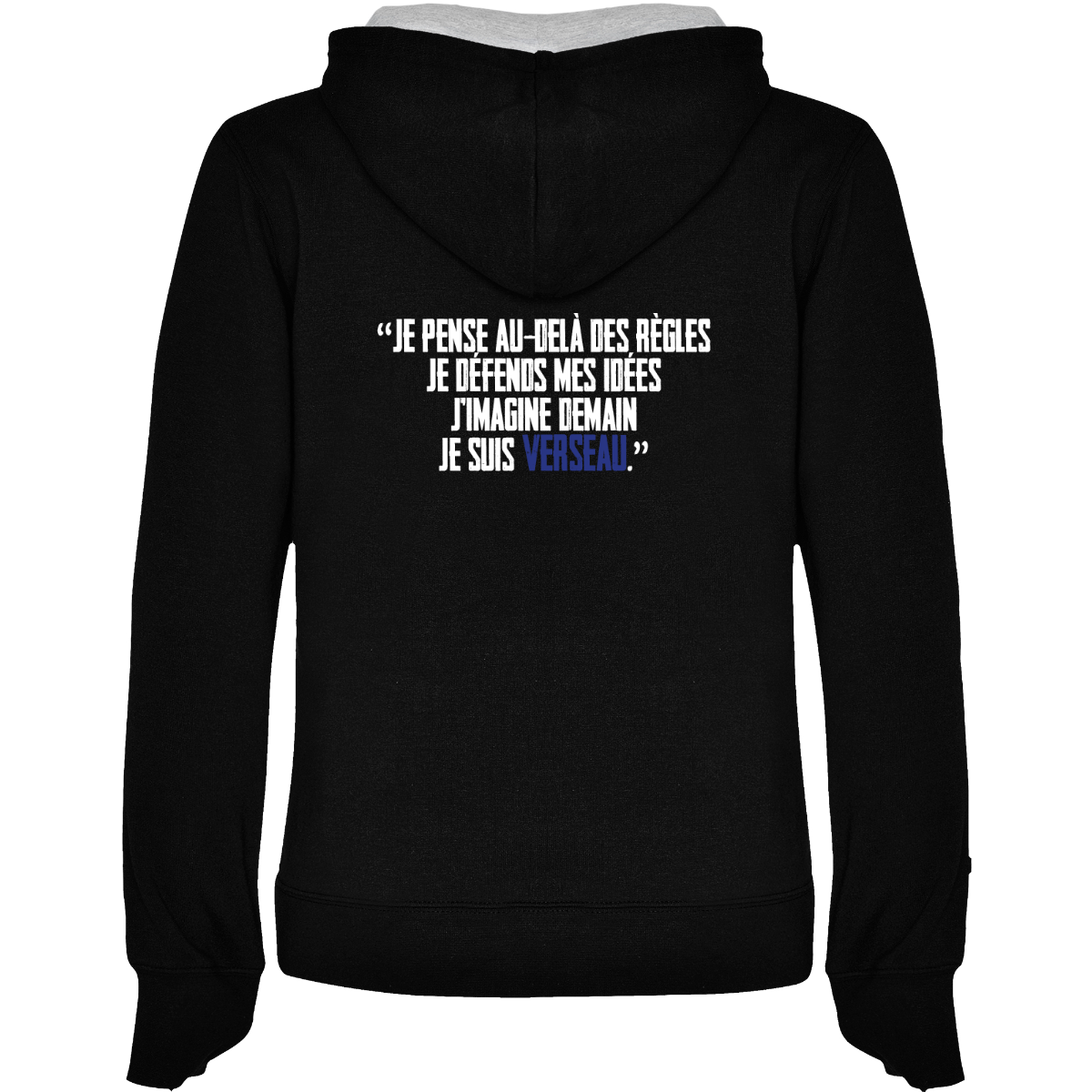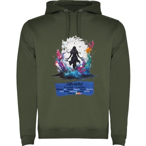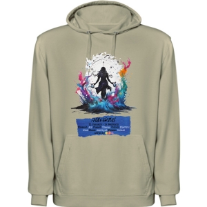 Felpa con cappuccio foderato. Polsini e vita a coste 1x1 con elastan. Apertura nei polsini per il pollice. Cuciture nastrate in tessuto coordinato. Coulisse piatta nel cappuccio. Opzioni di colore con cappuccio a contrasto e occhielli in metallo in tinta. 50% cotone / 50% poliestere, 280 g/m².