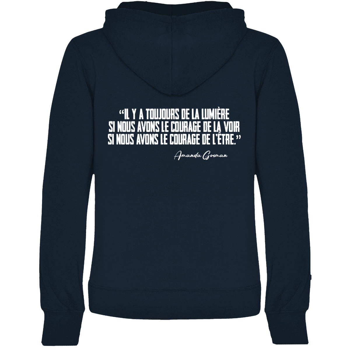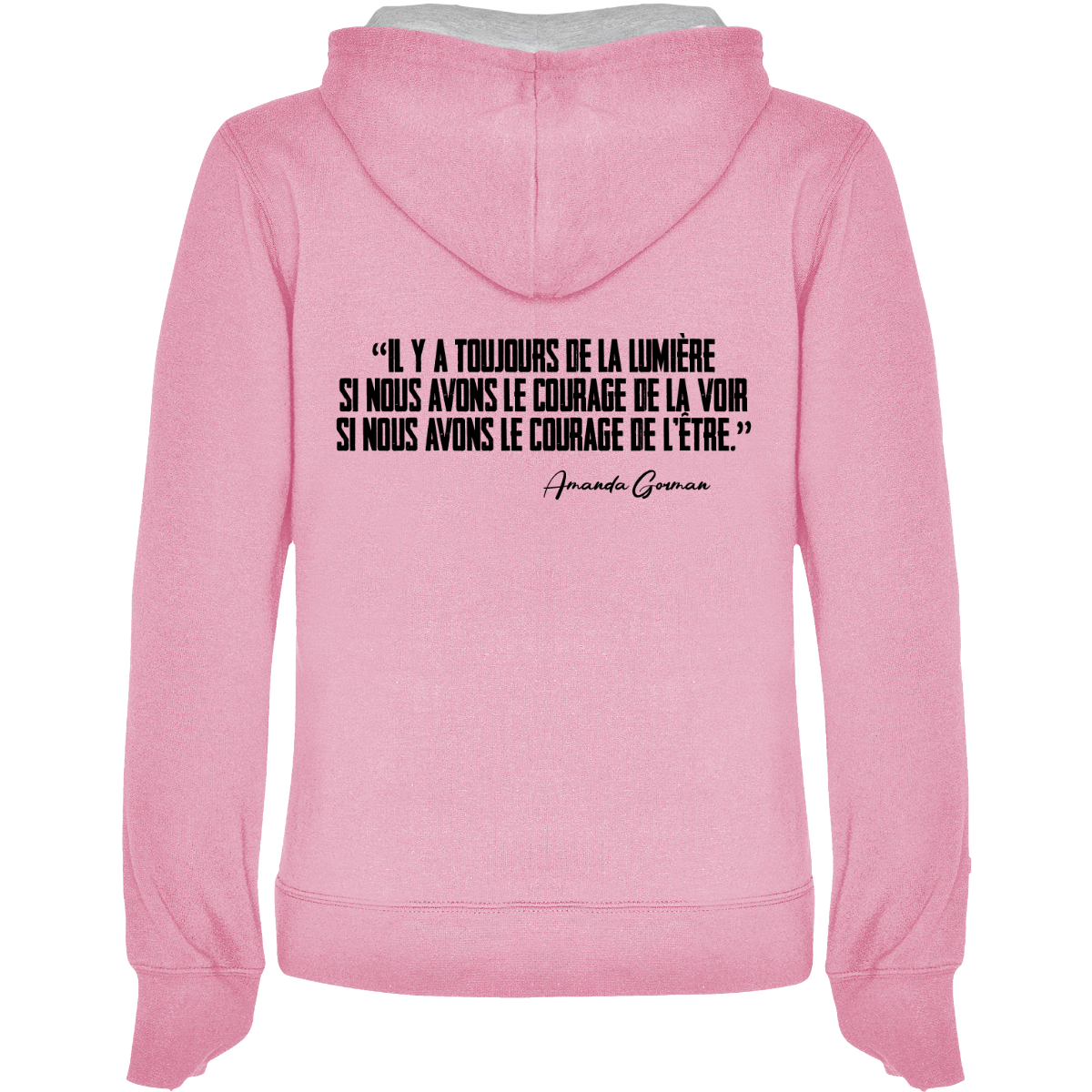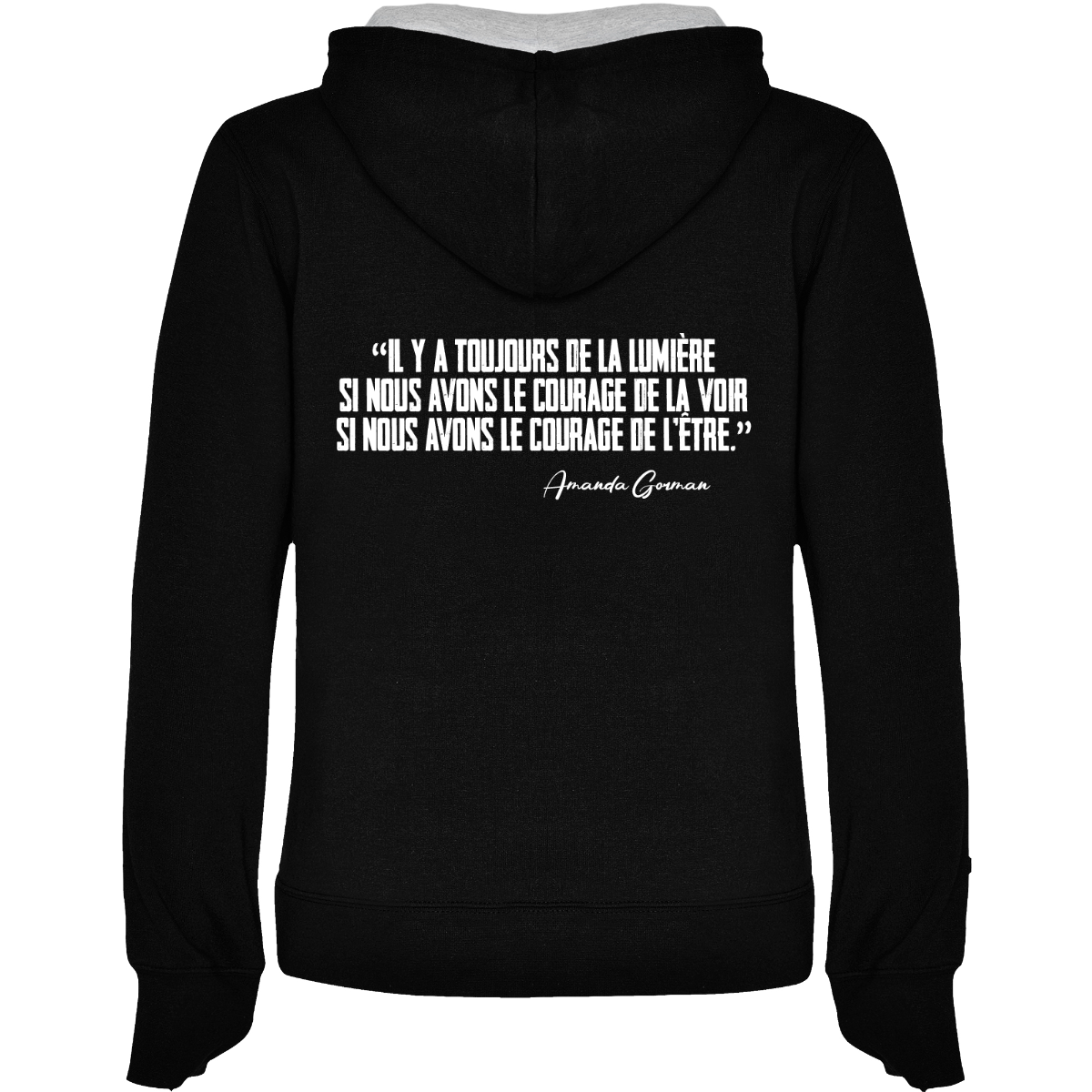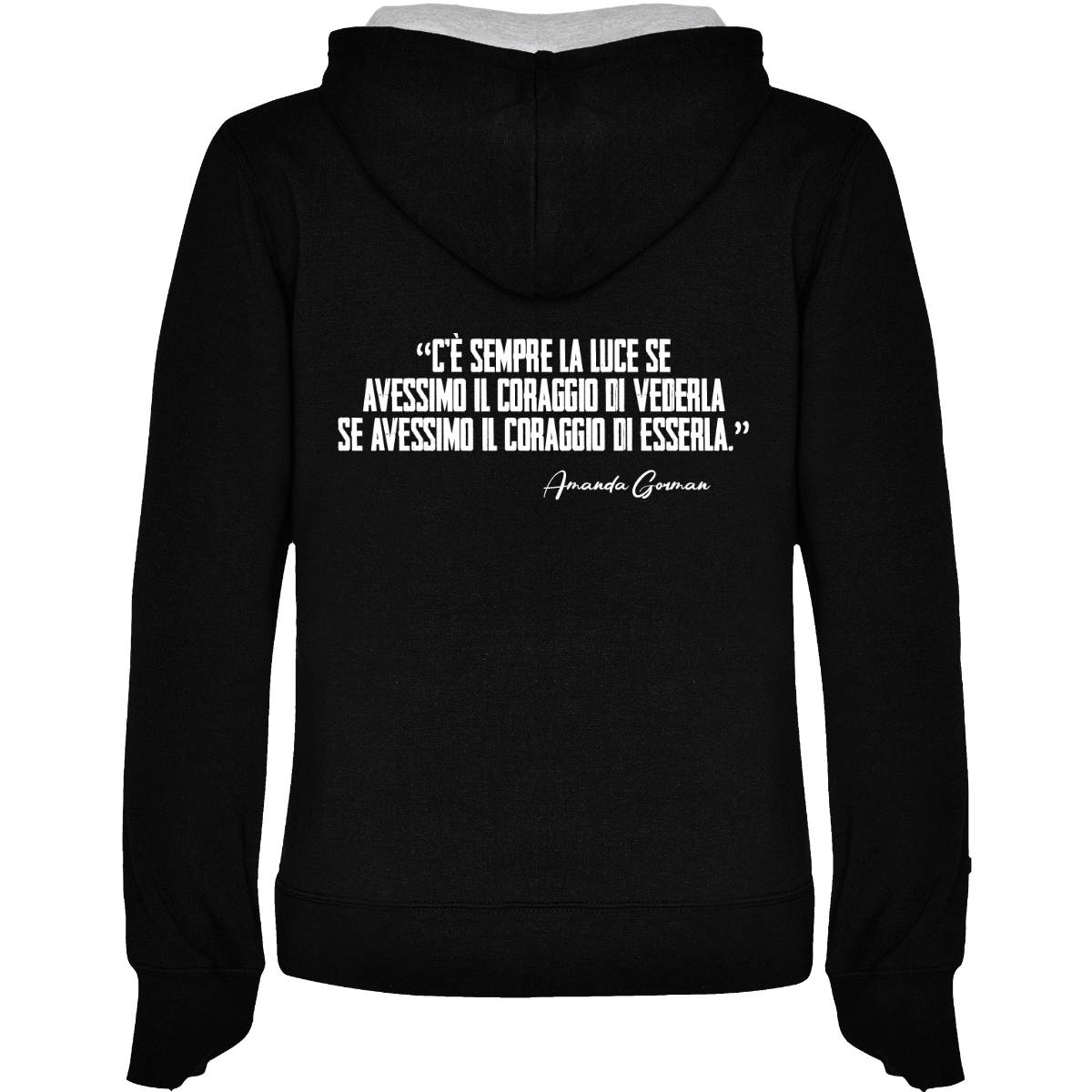 Felpa con cappuccio foderato. Polsini e vita a coste 1x1 con elastan. Apertura nei polsini per il pollice. Cuciture nastrate in tessuto coordinato. Coulisse piatta nel cappuccio. Opzioni di colore con cappuccio a contrasto e occhielli in metallo in tinta. 50% cotone / 50% poliestere, 280 g/m².