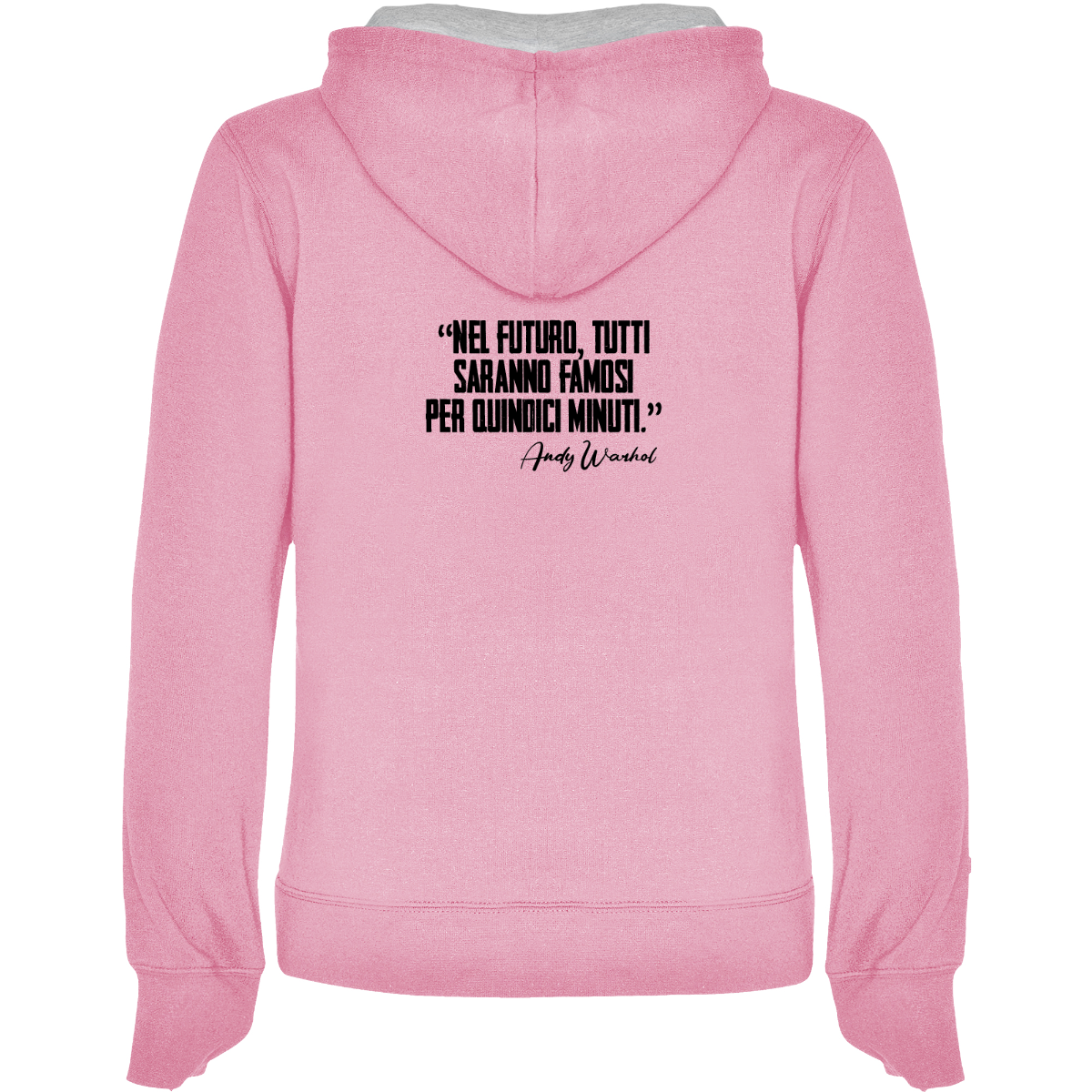 Felpa con cappuccio foderato. Polsini e vita a coste 1x1 con elastan. Apertura nei polsini per il pollice. Cuciture nastrate in tessuto coordinato. Coulisse piatta nel cappuccio. Opzioni di colore con cappuccio a contrasto e occhielli in metallo in tinta. 50% cotone / 50% poliestere, 280 g/m².