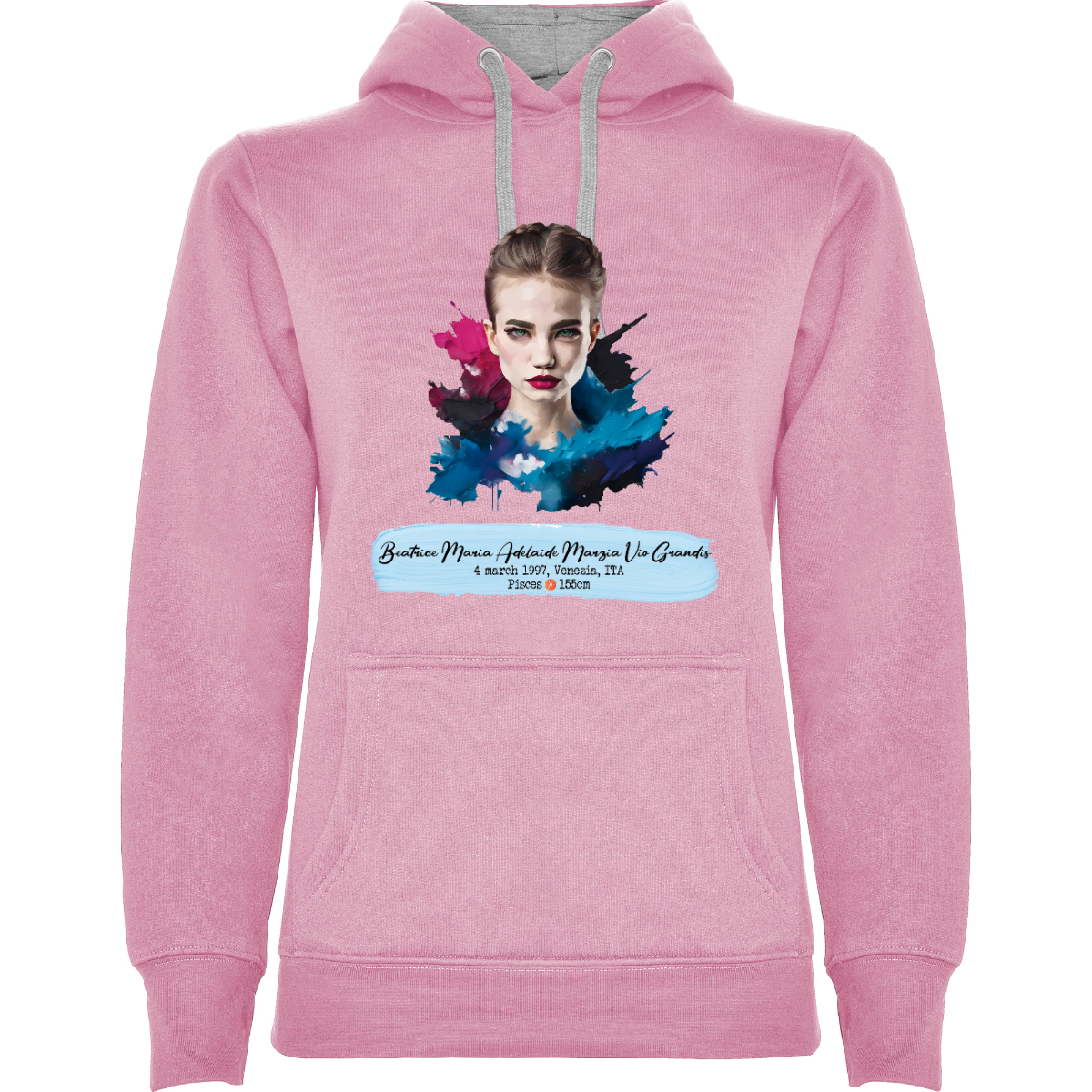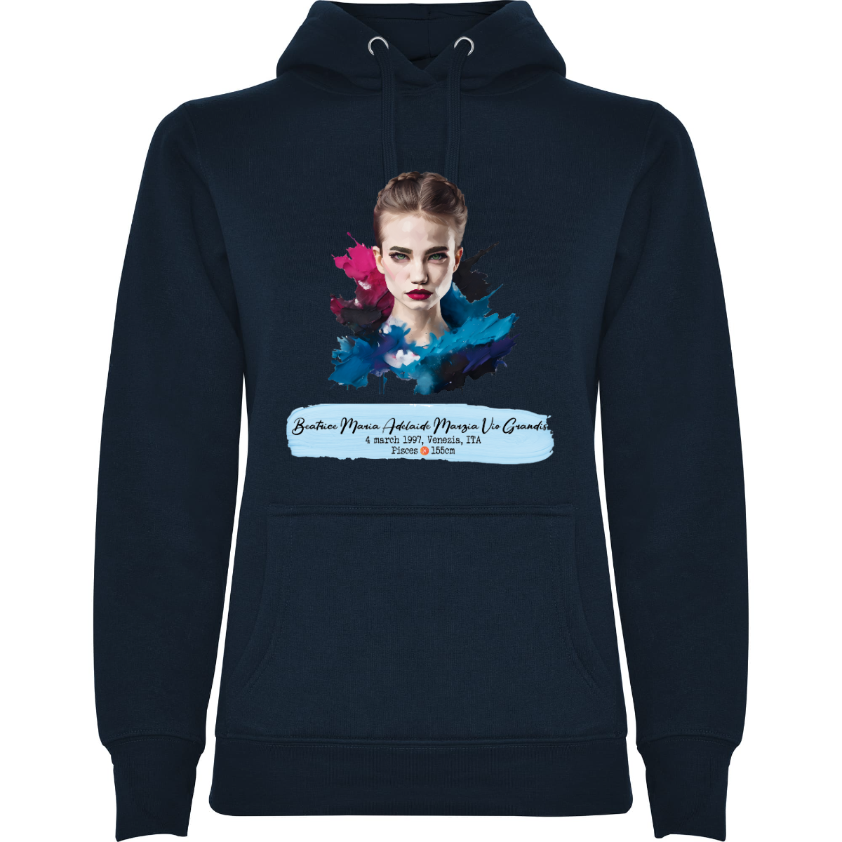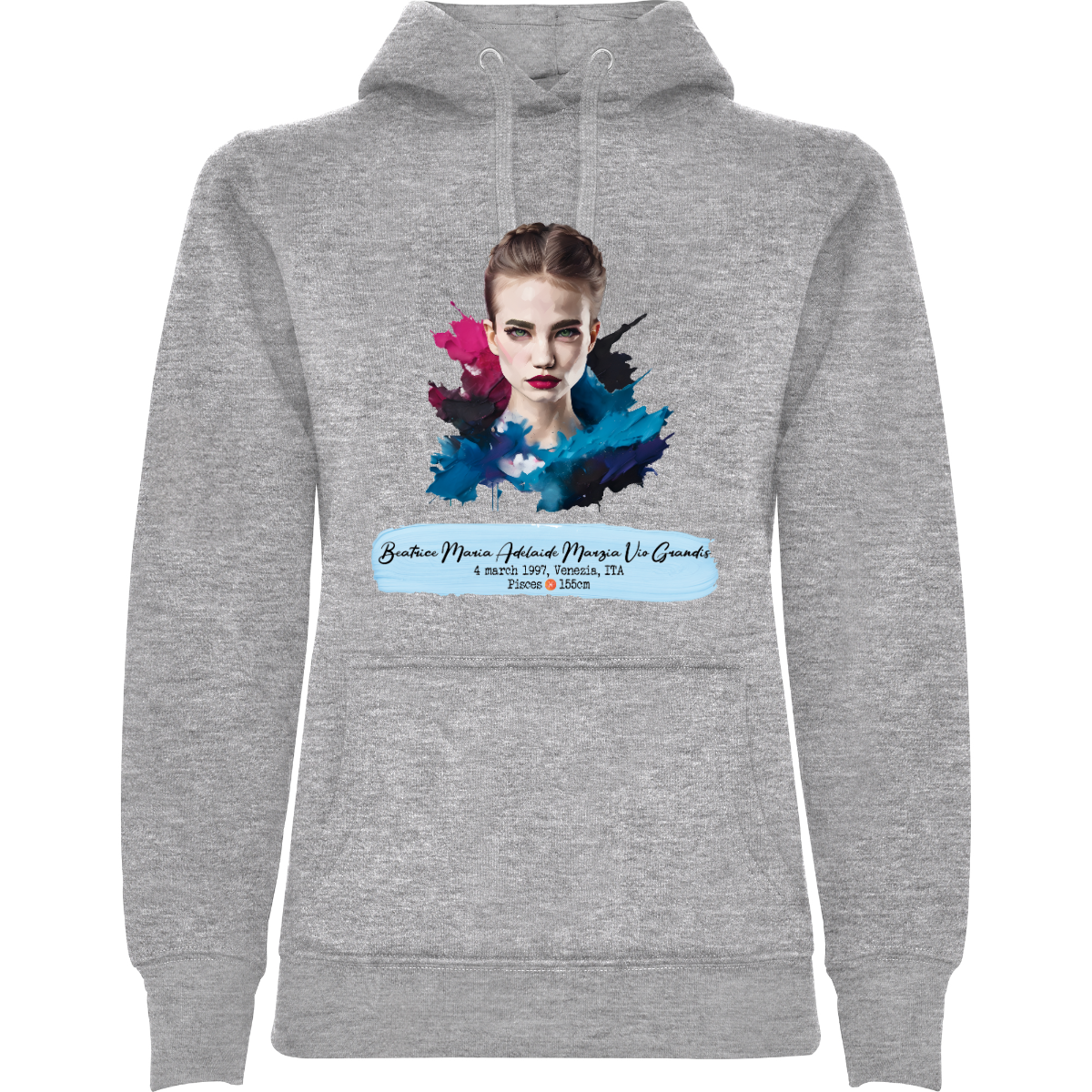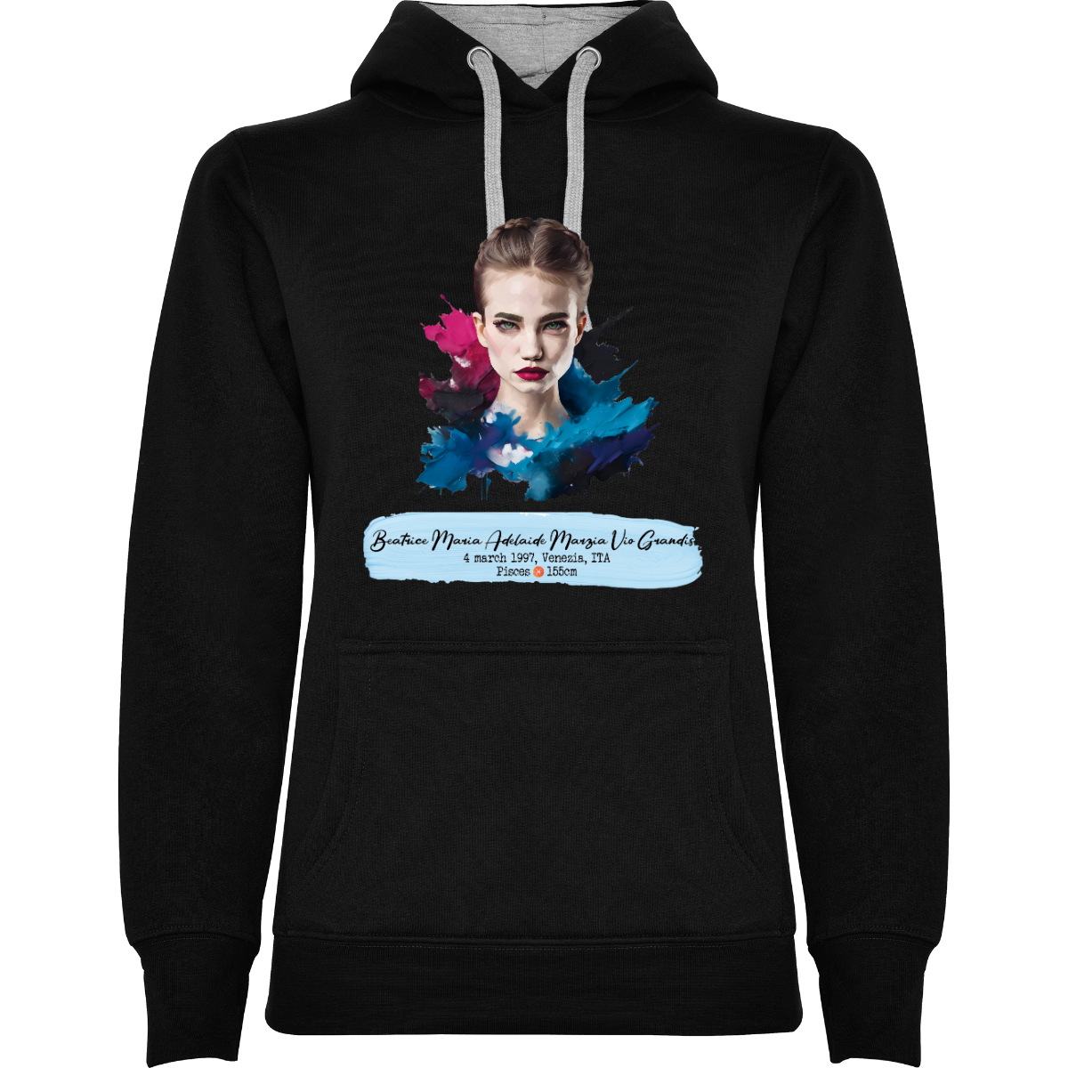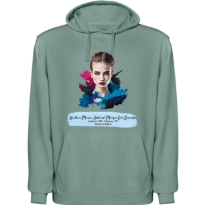 Felpa con cappuccio foderato. Polsini e vita a coste 1x1 con elastan. Apertura nei polsini per il pollice. Cuciture nastrate in tessuto coordinato. Coulisse piatta nel cappuccio. Opzioni di colore con cappuccio a contrasto e occhielli in metallo in tinta. 50% cotone / 50% poliestere, 280 g/m².
