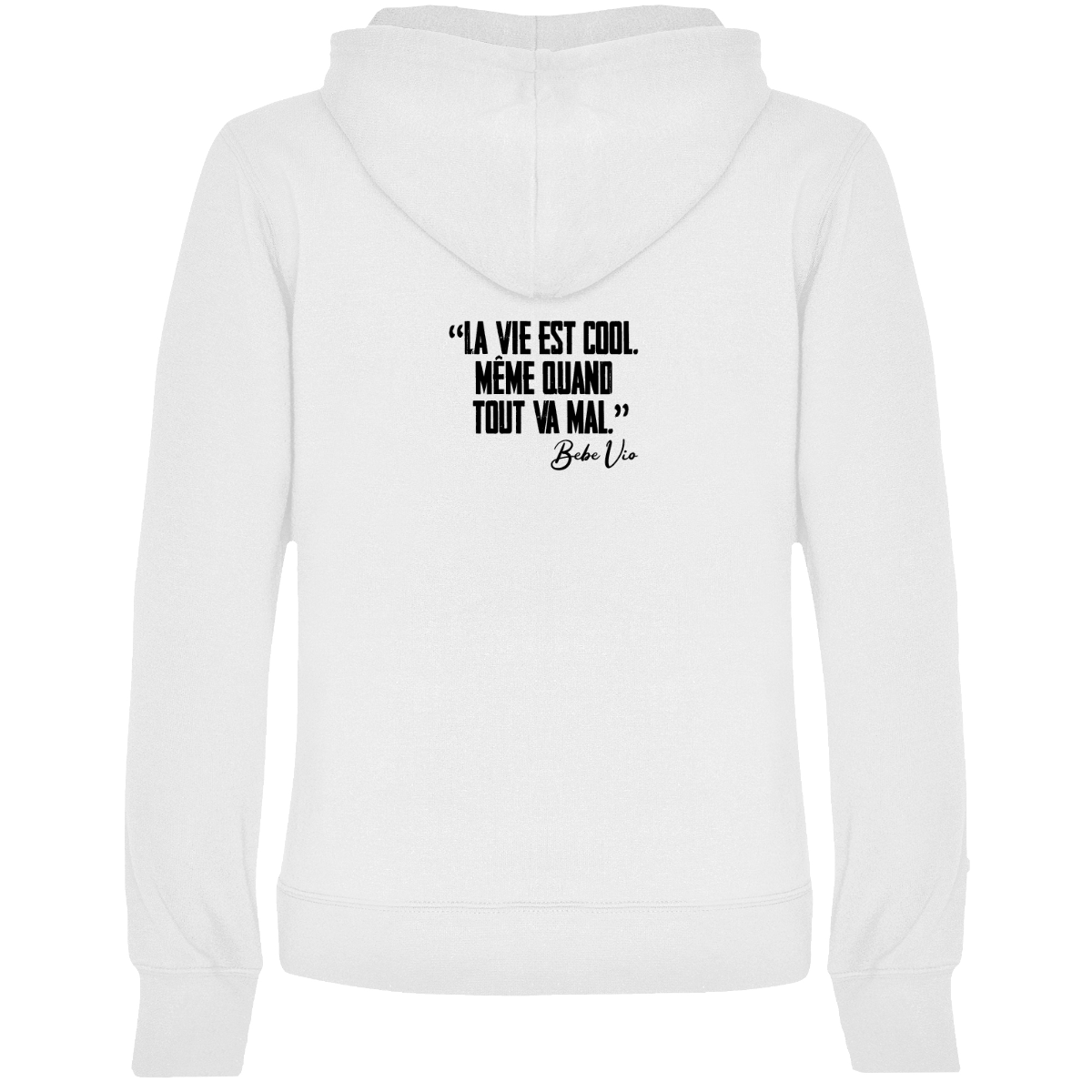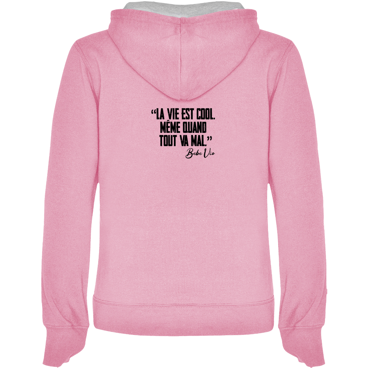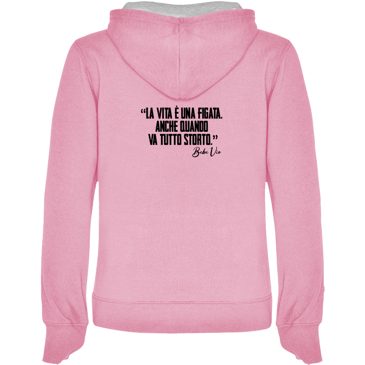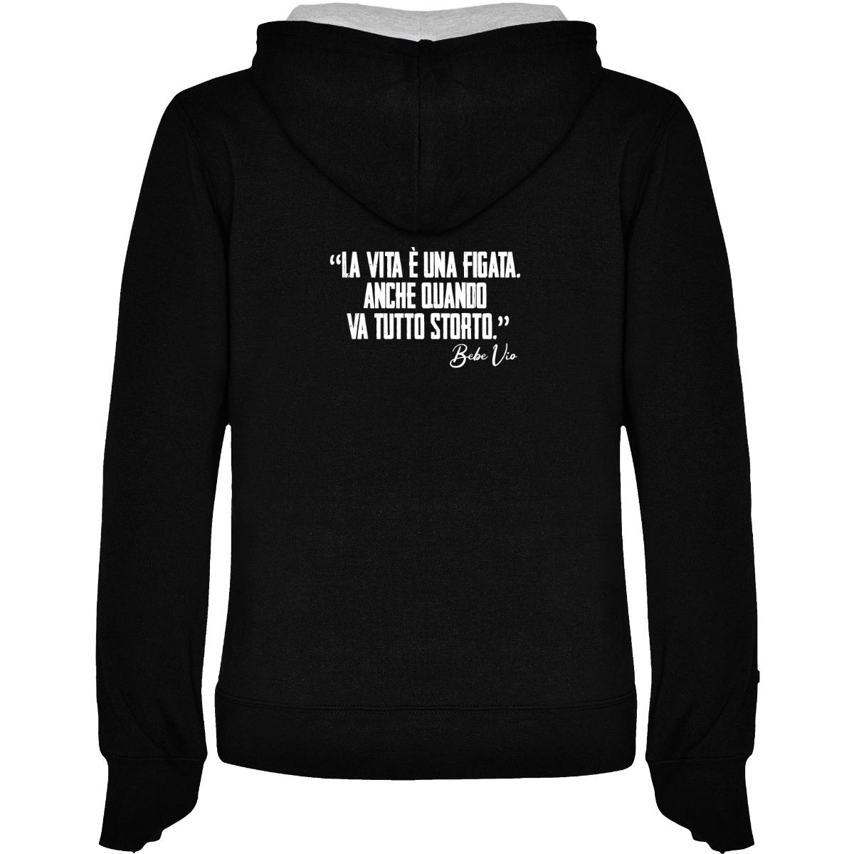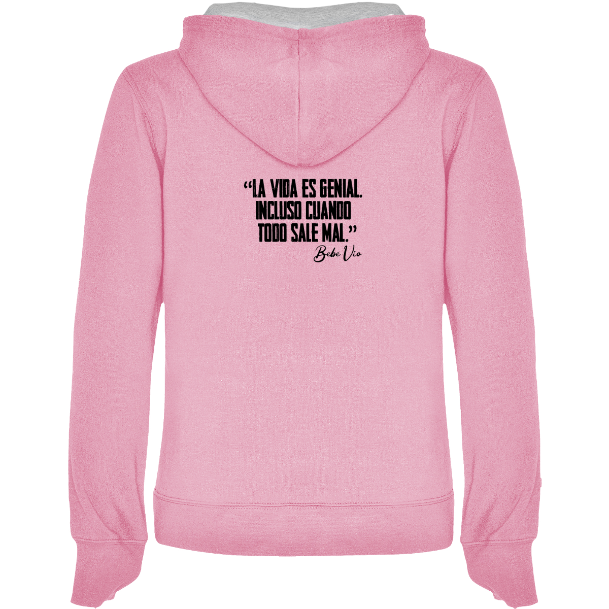 Felpa con cappuccio foderato. Polsini e vita a coste 1x1 con elastan. Apertura nei polsini per il pollice. Cuciture nastrate in tessuto coordinato. Coulisse piatta nel cappuccio. Opzioni di colore con cappuccio a contrasto e occhielli in metallo in tinta. 50% cotone / 50% poliestere, 280 g/m².