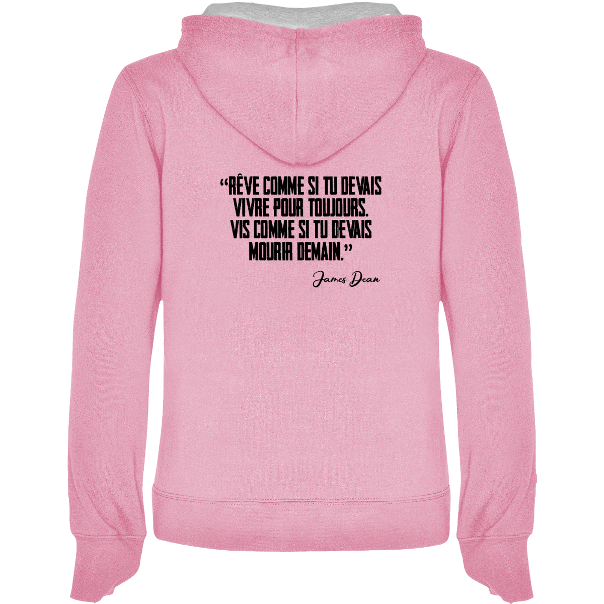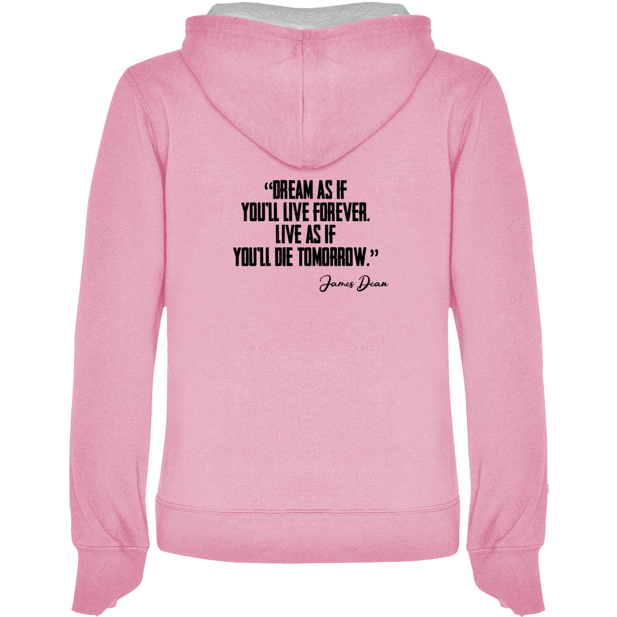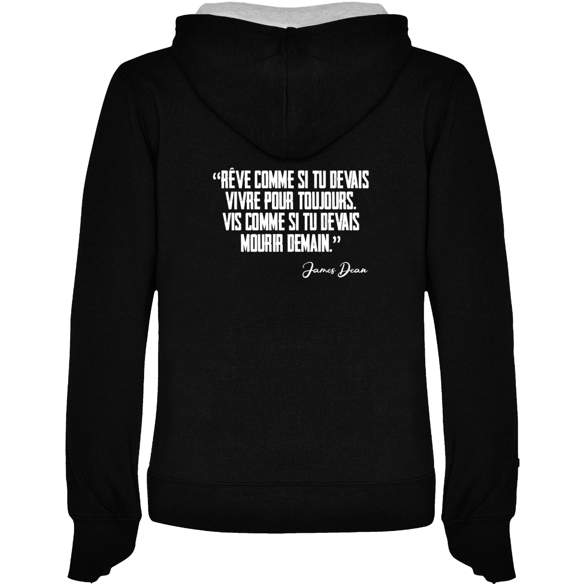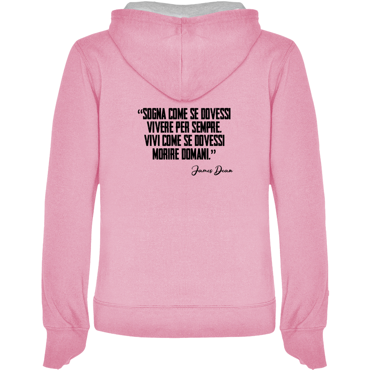 Felpa con cappuccio foderato. Polsini e vita a coste 1x1 con elastan. Apertura nei polsini per il pollice. Cuciture nastrate in tessuto coordinato. Coulisse piatta nel cappuccio. Opzioni di colore con cappuccio a contrasto e occhielli in metallo in tinta. 50% cotone / 50% poliestere, 280 g/m².