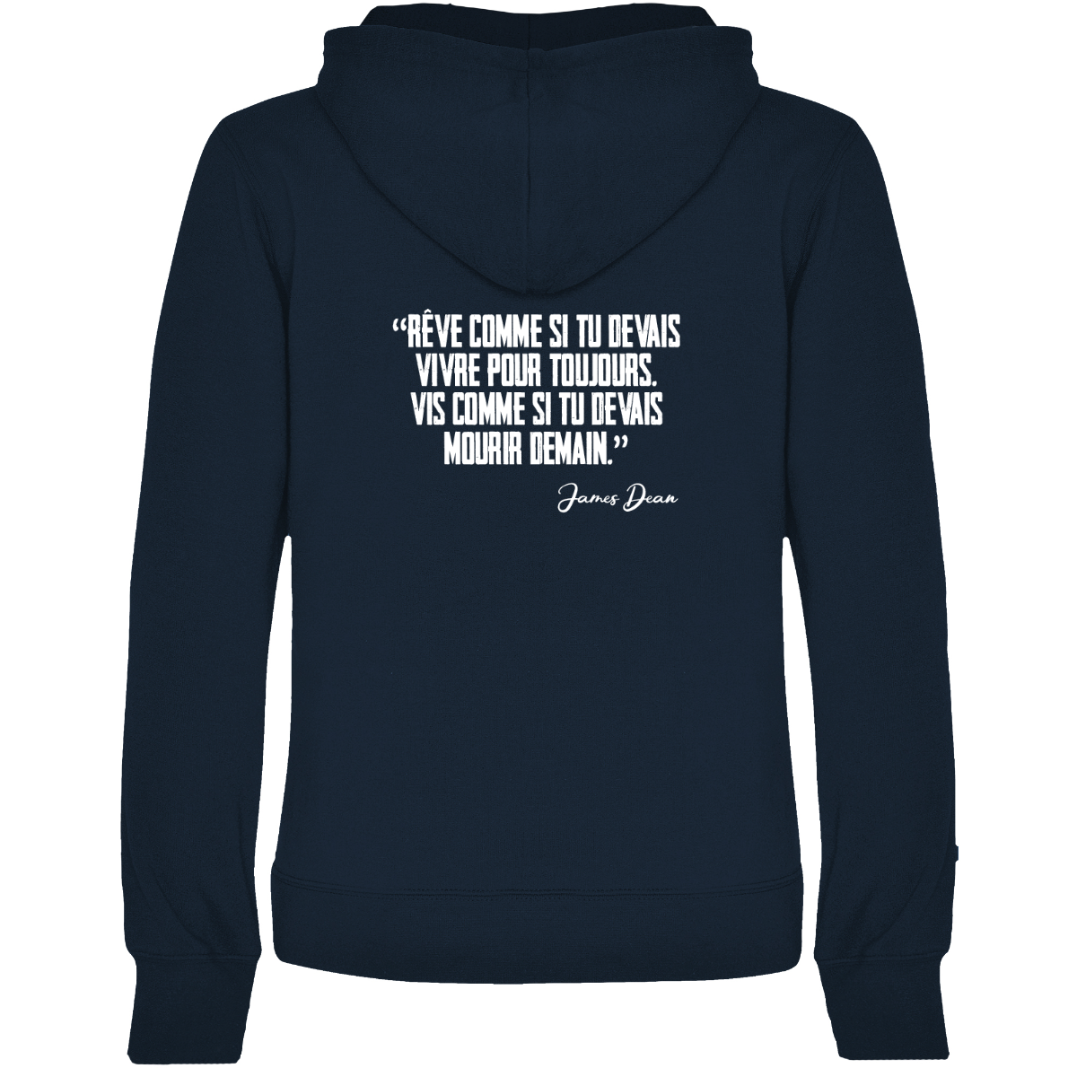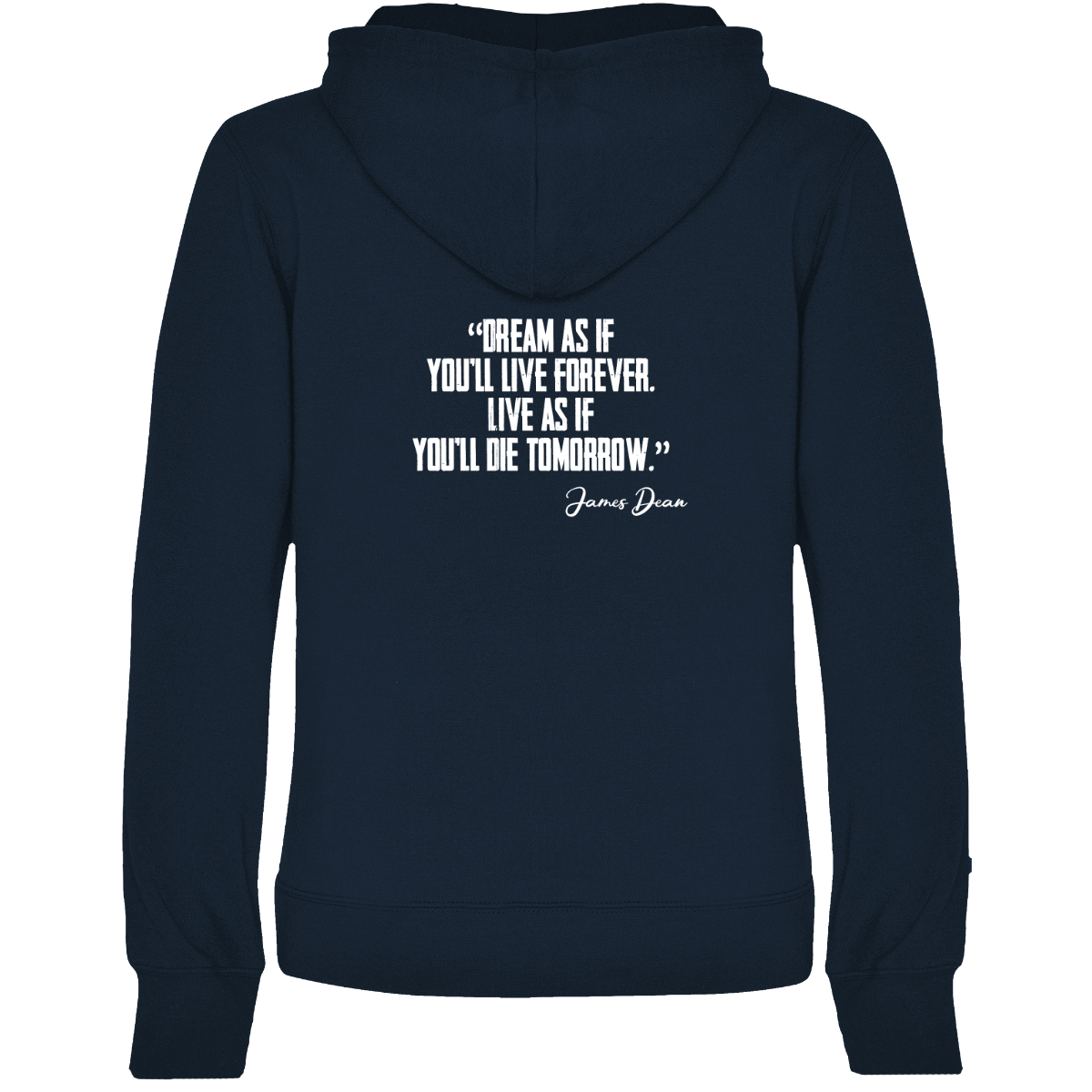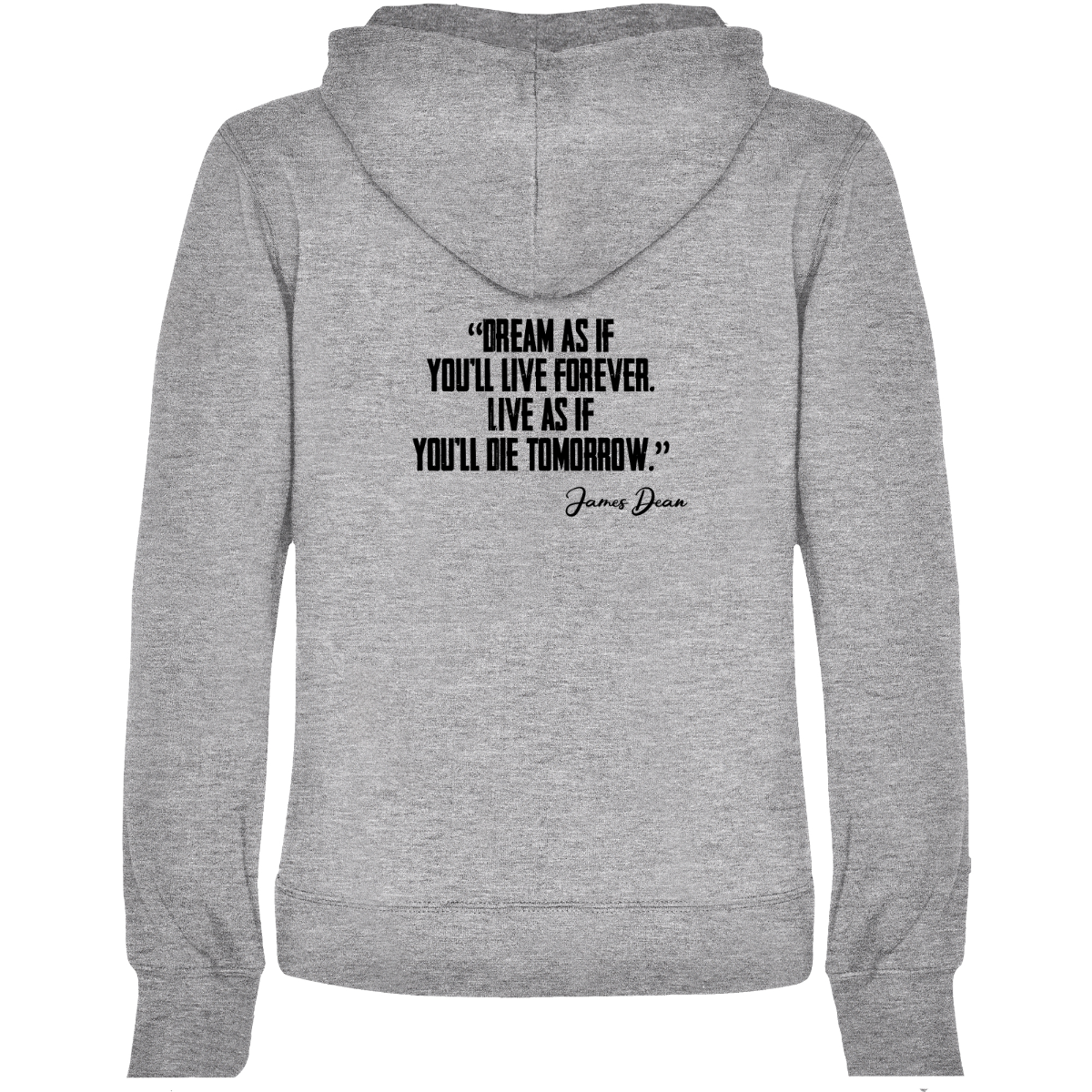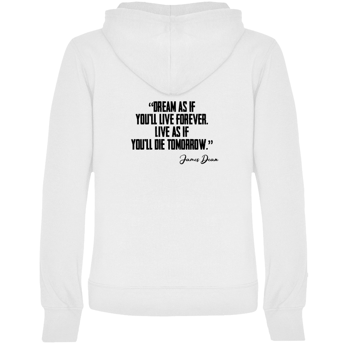 Felpa con cappuccio foderato. Polsini e vita a coste 1x1 con elastan. Apertura nei polsini per il pollice. Cuciture nastrate in tessuto coordinato. Coulisse piatta nel cappuccio. Opzioni di colore con cappuccio a contrasto e occhielli in metallo in tinta. 50% cotone / 50% poliestere, 280 g/m².