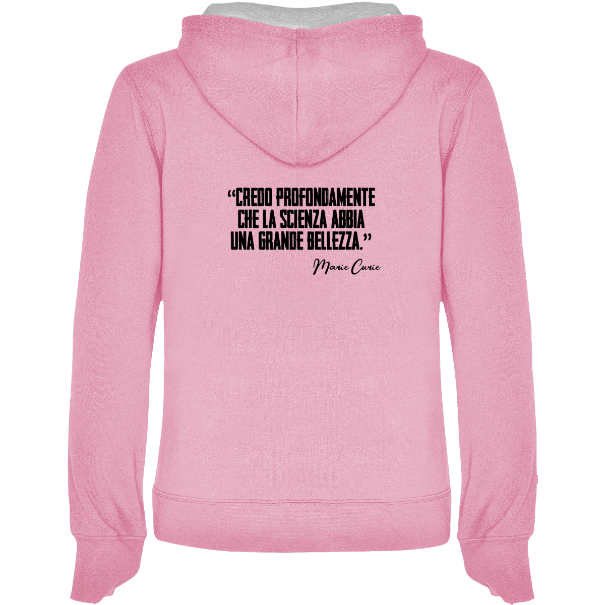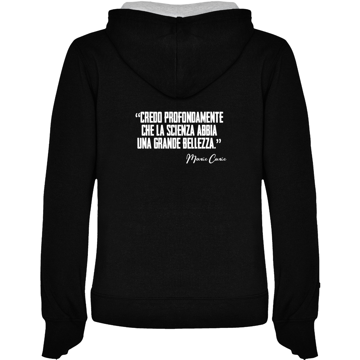 Felpa con cappuccio foderato. Polsini e vita a coste 1x1 con elastan. Apertura nei polsini per il pollice. Cuciture nastrate in tessuto coordinato. Coulisse piatta nel cappuccio. Opzioni di colore con cappuccio a contrasto e occhielli in metallo in tinta. 50% cotone / 50% poliestere, 280 g/m².