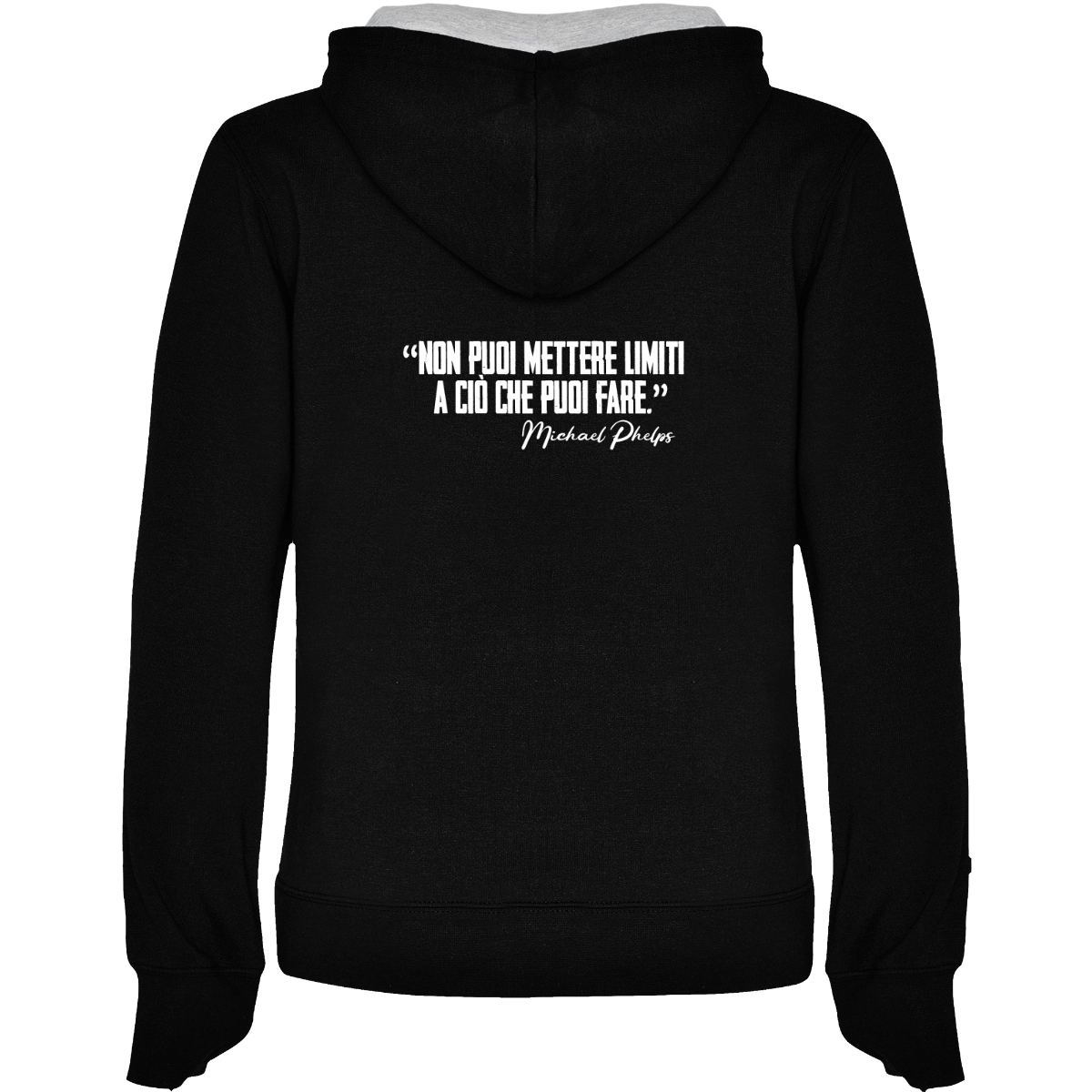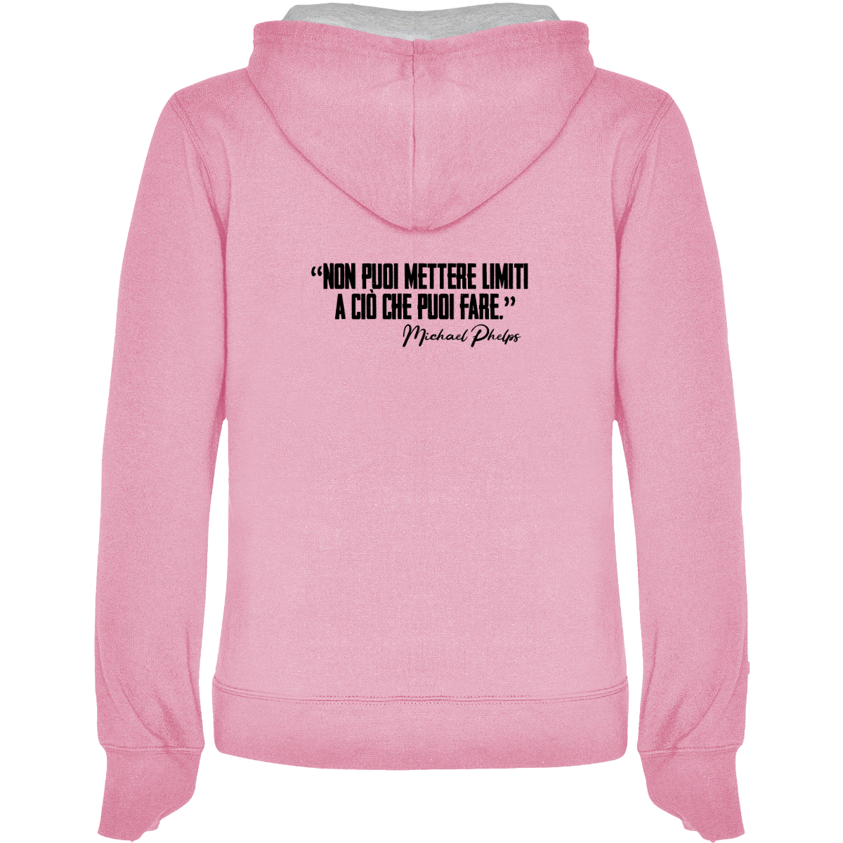 Felpa con cappuccio foderato. Polsini e vita a coste 1x1 con elastan. Apertura nei polsini per il pollice. Cuciture nastrate in tessuto coordinato. Coulisse piatta nel cappuccio. Opzioni di colore con cappuccio a contrasto e occhielli in metallo in tinta. 50% cotone / 50% poliestere, 280 g/m².