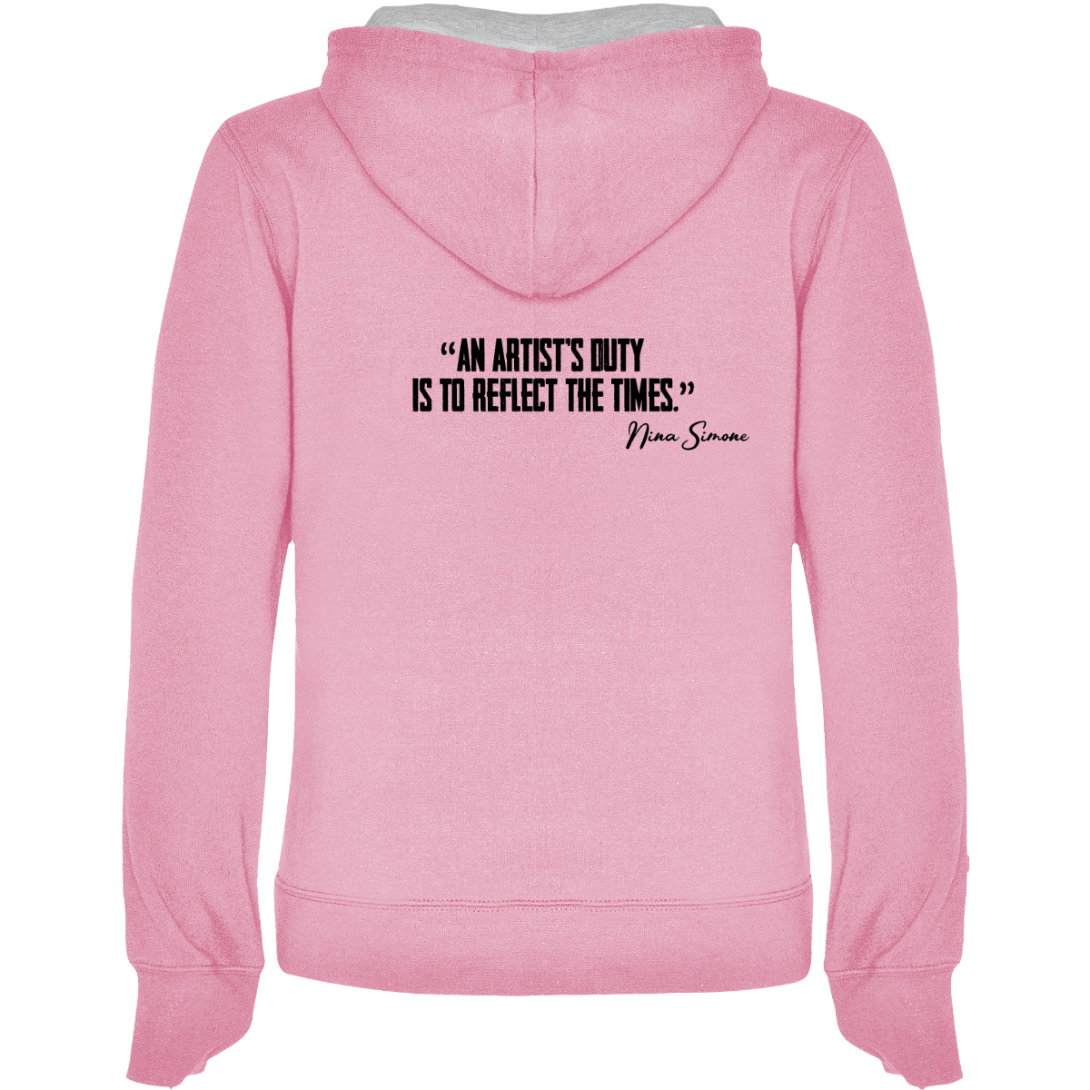 Felpa con cappuccio foderato. Polsini e vita a coste 1x1 con elastan. Apertura nei polsini per il pollice. Cuciture nastrate in tessuto coordinato. Coulisse piatta nel cappuccio. Opzioni di colore con cappuccio a contrasto e occhielli in metallo in tinta. 50% cotone / 50% poliestere, 280 g/m².