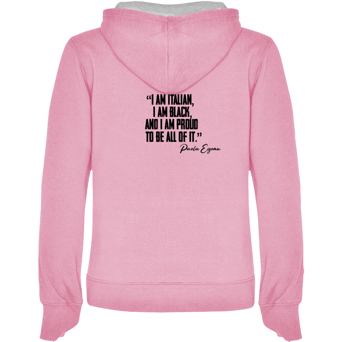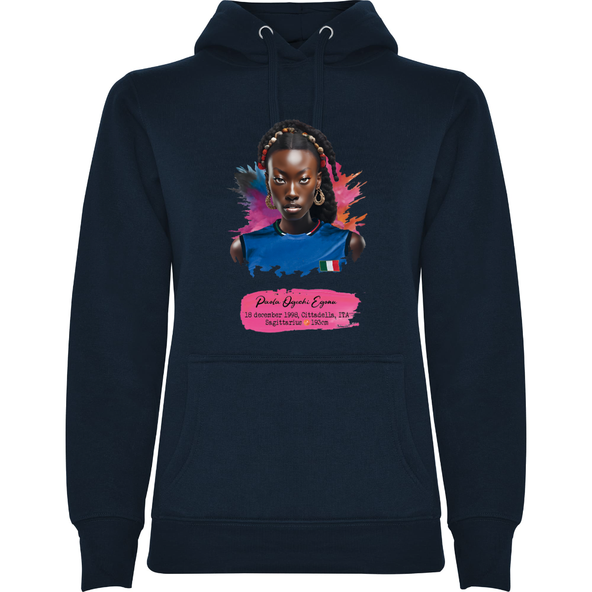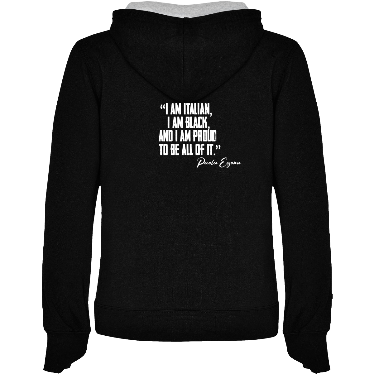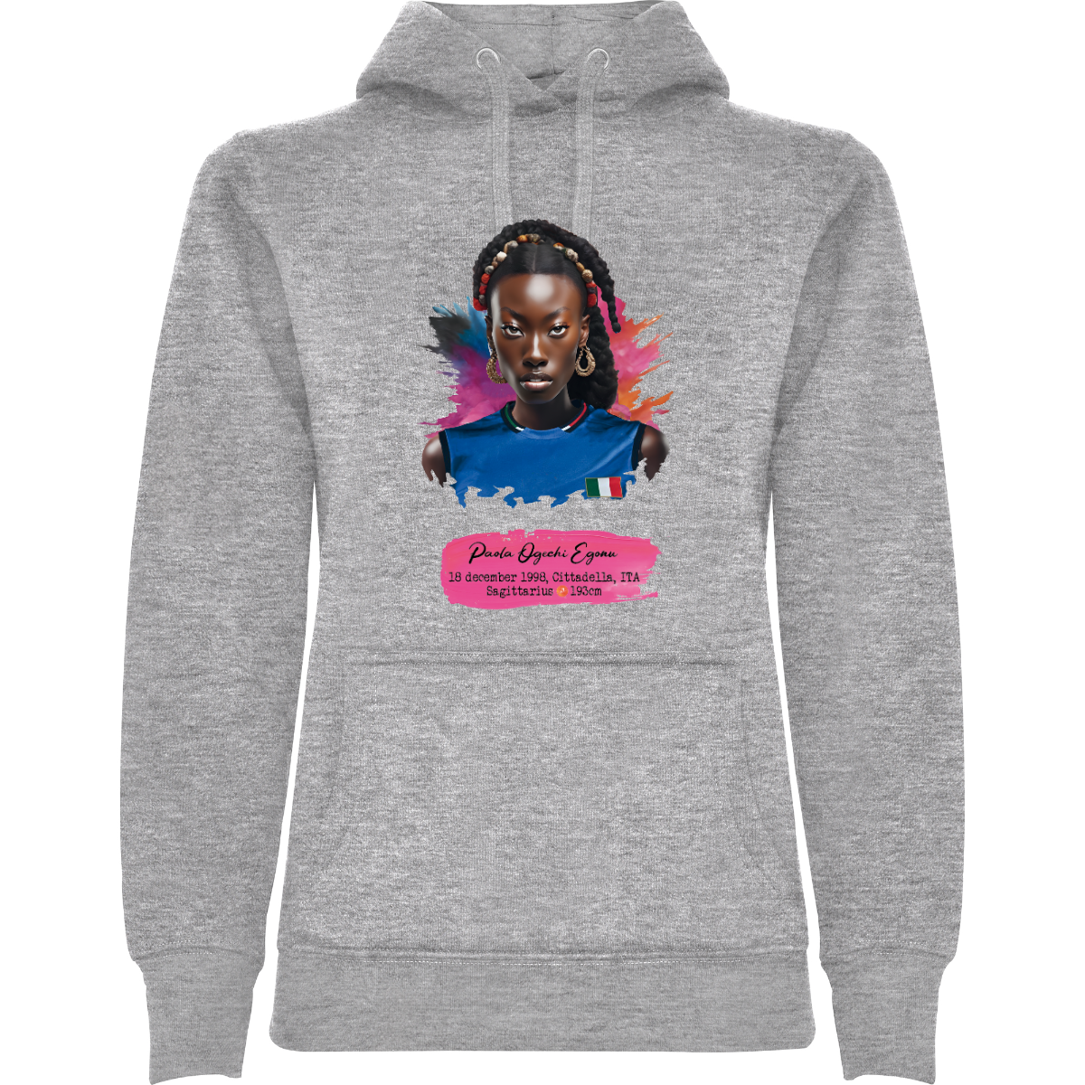 Felpa con cappuccio foderato. Polsini e vita a coste 1x1 con elastan. Apertura nei polsini per il pollice. Cuciture nastrate in tessuto coordinato. Coulisse piatta nel cappuccio. Opzioni di colore con cappuccio a contrasto e occhielli in metallo in tinta. 50% cotone / 50% poliestere, 280 g/m².