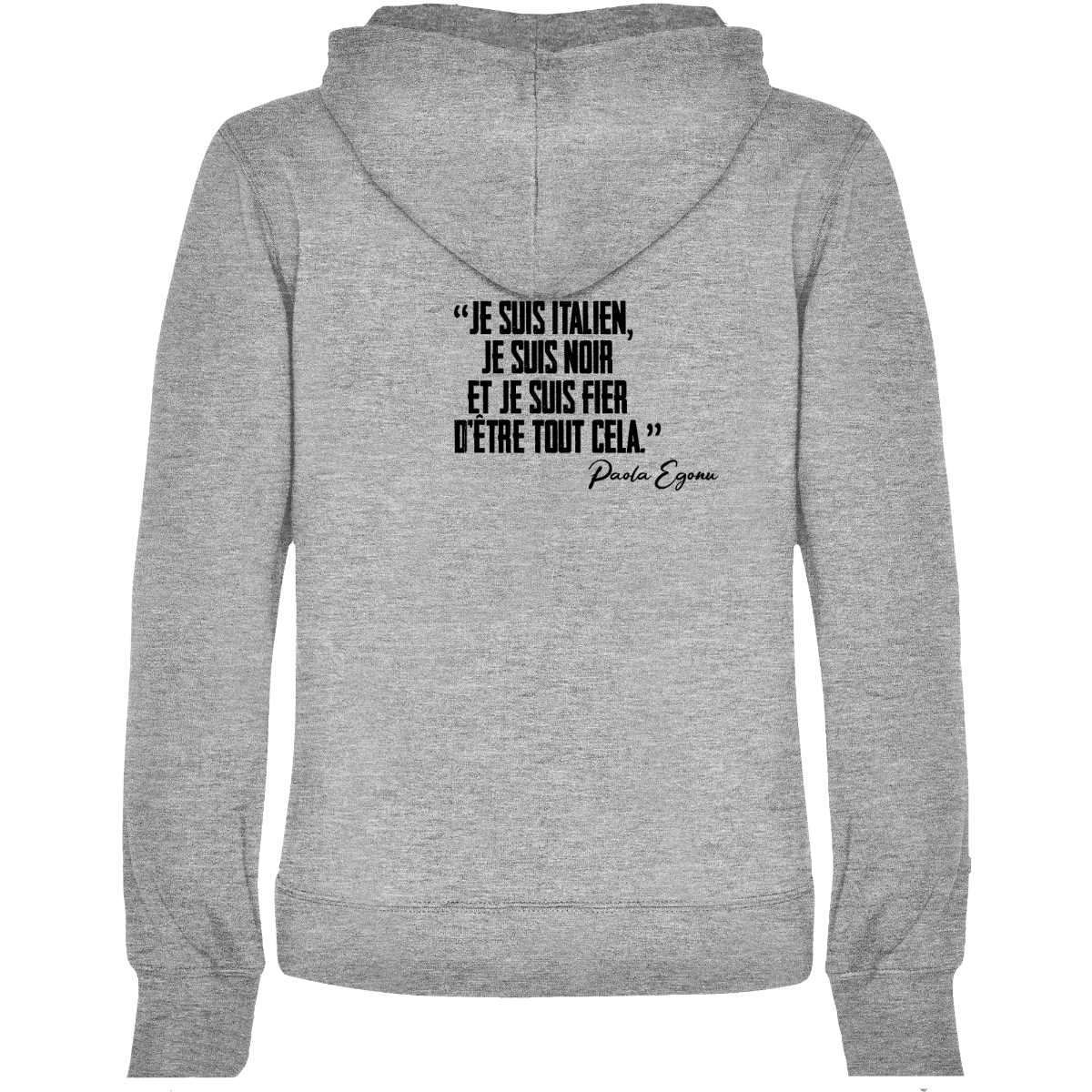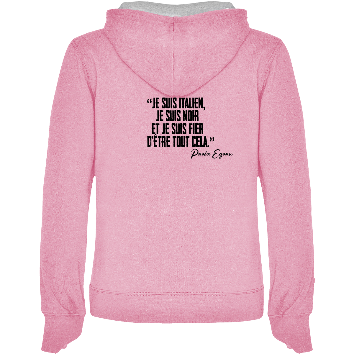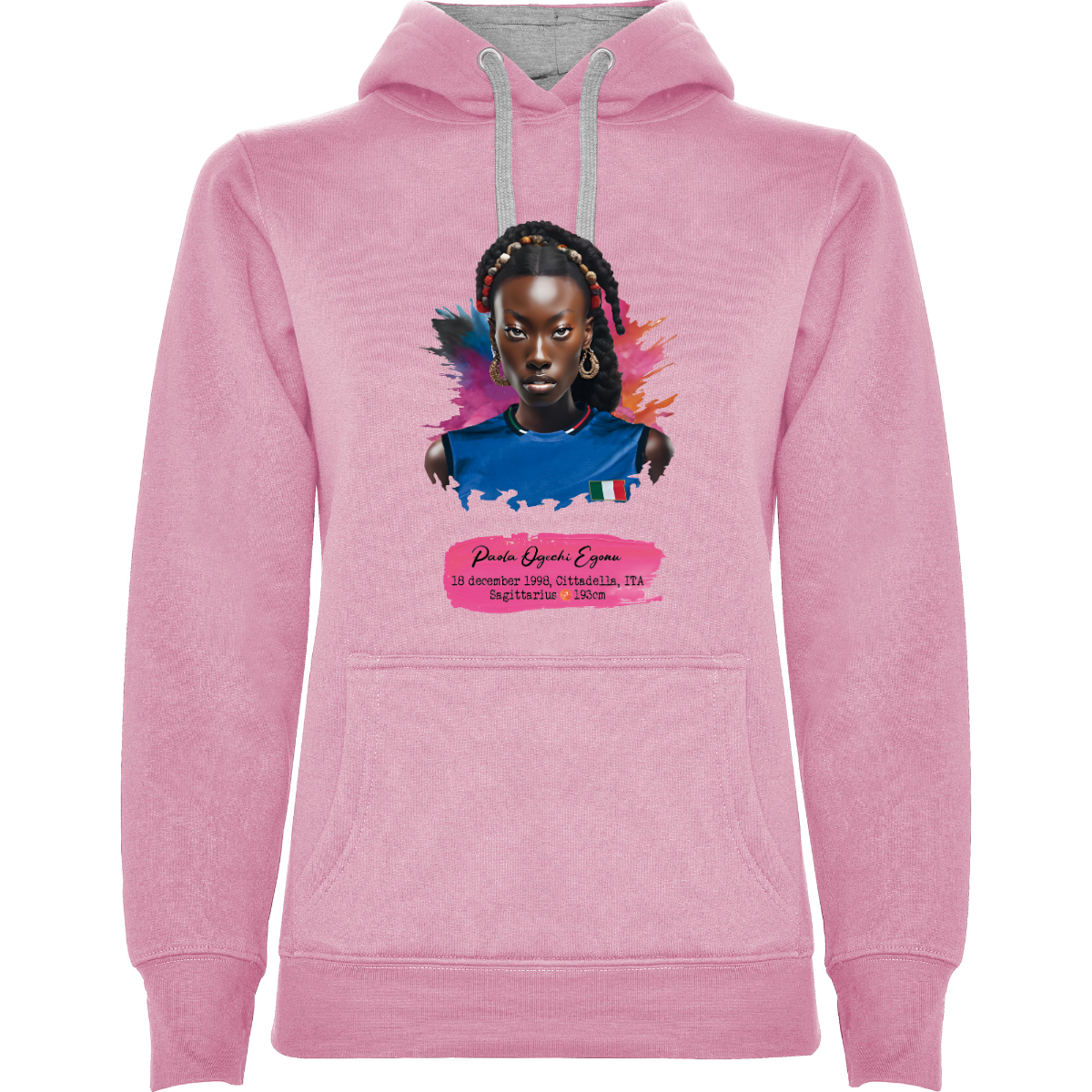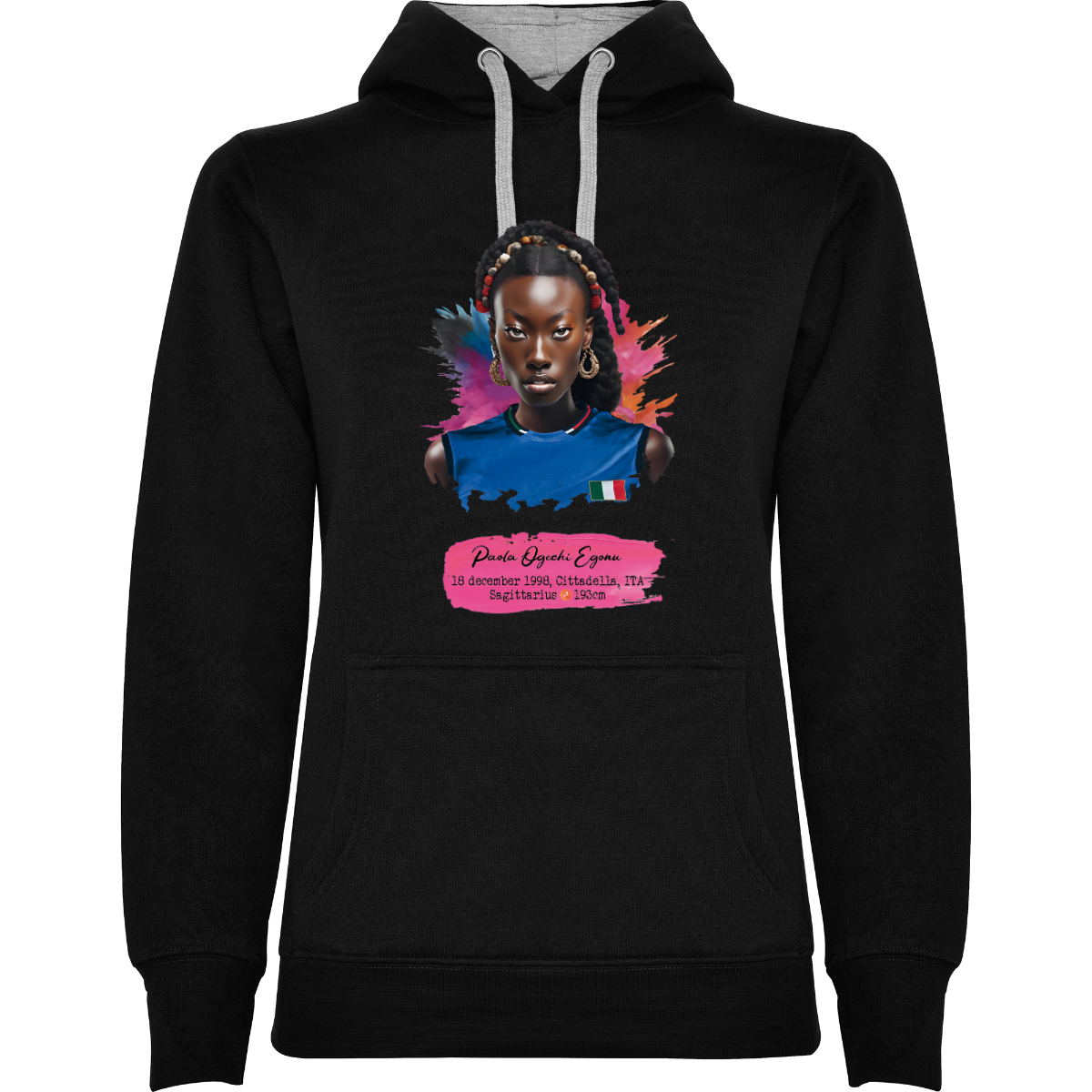 Felpa con cappuccio foderato. Polsini e vita a coste 1x1 con elastan. Apertura nei polsini per il pollice. Cuciture nastrate in tessuto coordinato. Coulisse piatta nel cappuccio. Opzioni di colore con cappuccio a contrasto e occhielli in metallo in tinta. 50% cotone / 50% poliestere, 280 g/m².