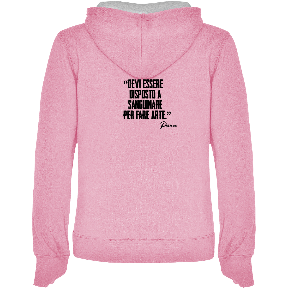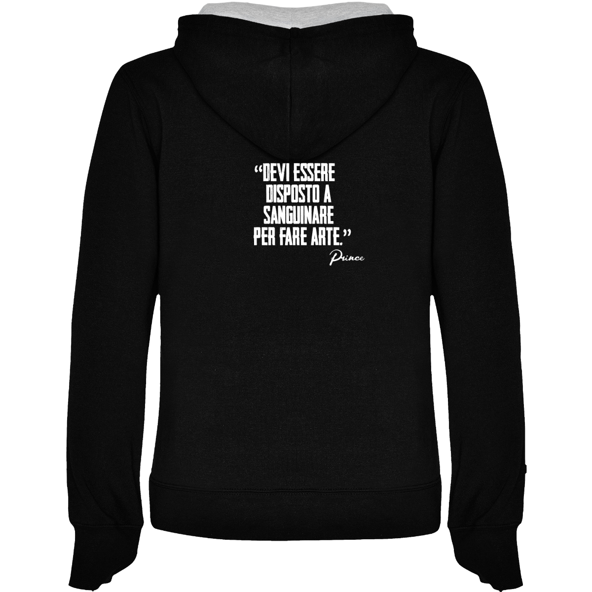 Felpa con cappuccio foderato. Polsini e vita a coste 1x1 con elastan. Apertura nei polsini per il pollice. Cuciture nastrate in tessuto coordinato. Coulisse piatta nel cappuccio. Opzioni di colore con cappuccio a contrasto e occhielli in metallo in tinta. 50% cotone / 50% poliestere, 280 g/m².