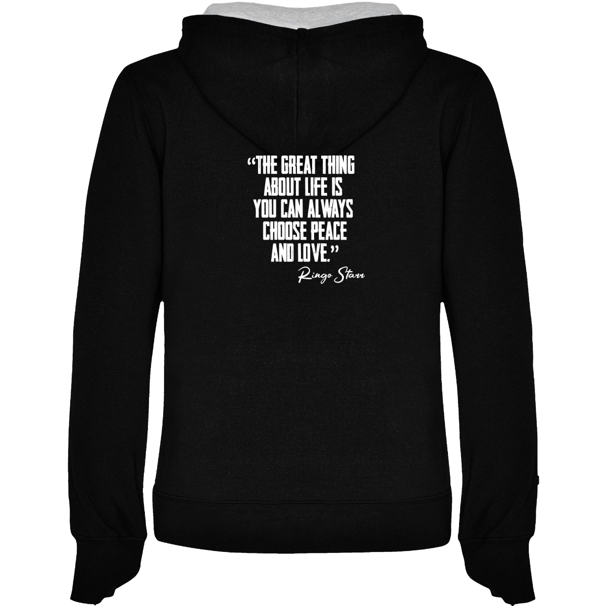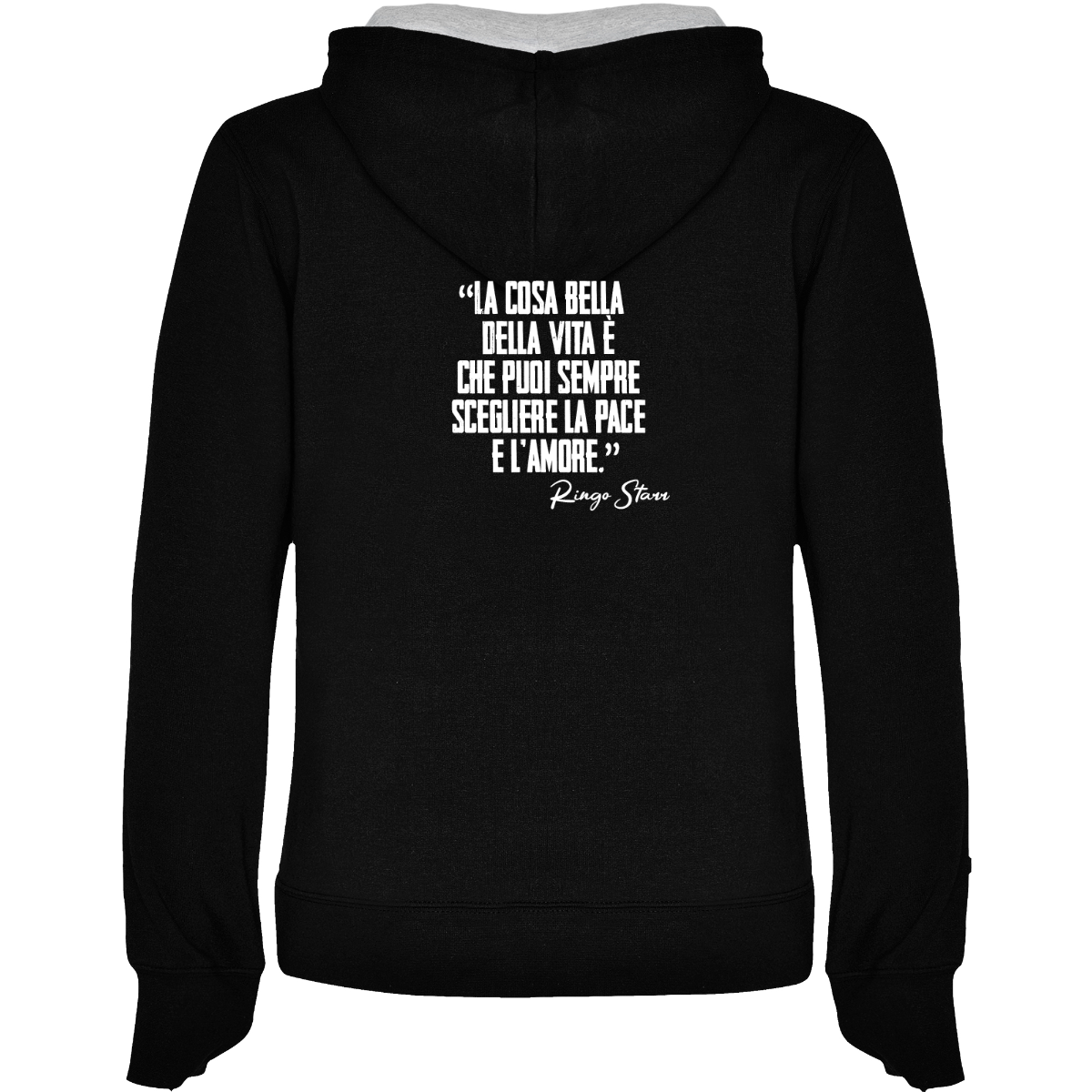 Felpa con cappuccio foderato. Polsini e vita a coste 1x1 con elastan. Apertura nei polsini per il pollice. Cuciture nastrate in tessuto coordinato. Coulisse piatta nel cappuccio. Opzioni di colore con cappuccio a contrasto e occhielli in metallo in tinta. 50% cotone / 50% poliestere, 280 g/m².