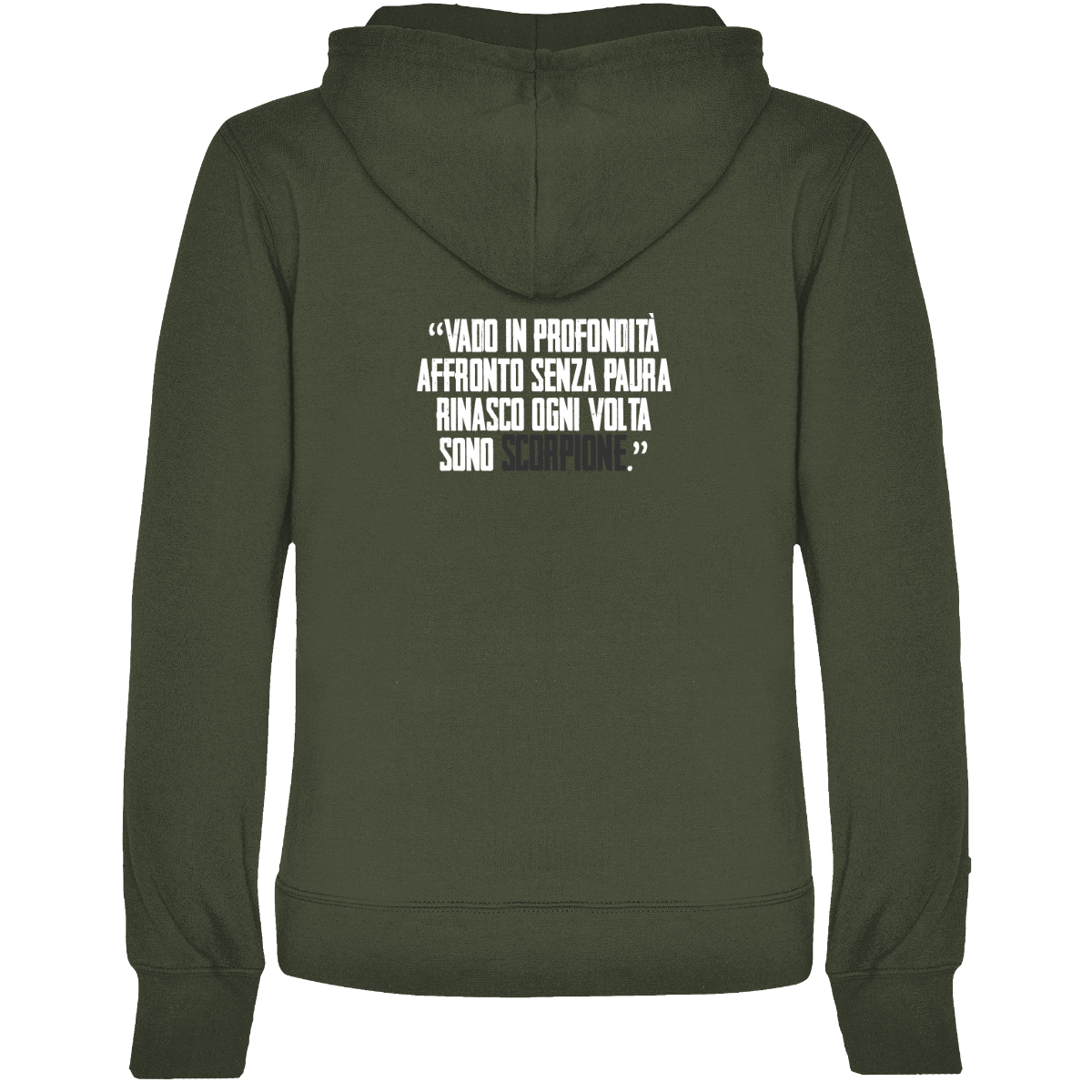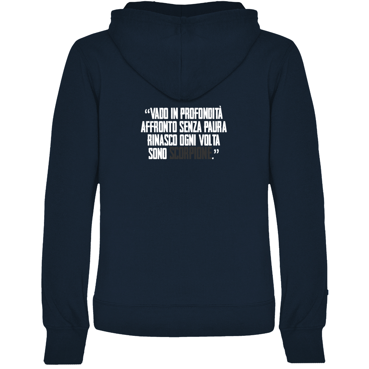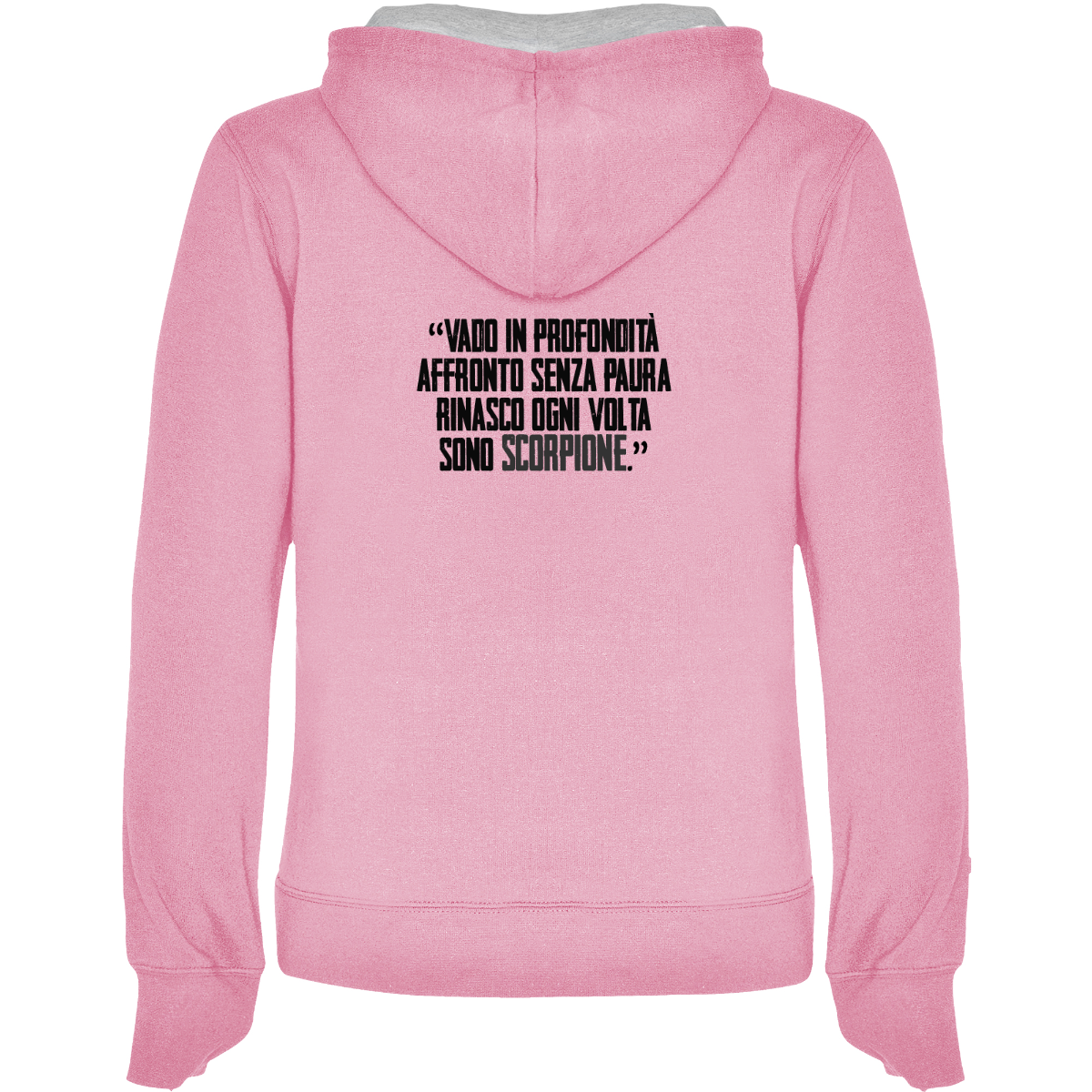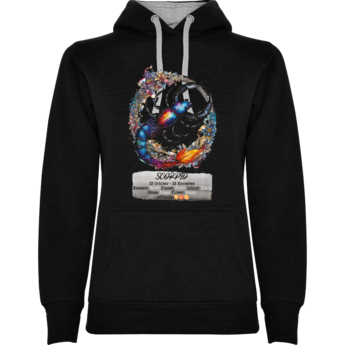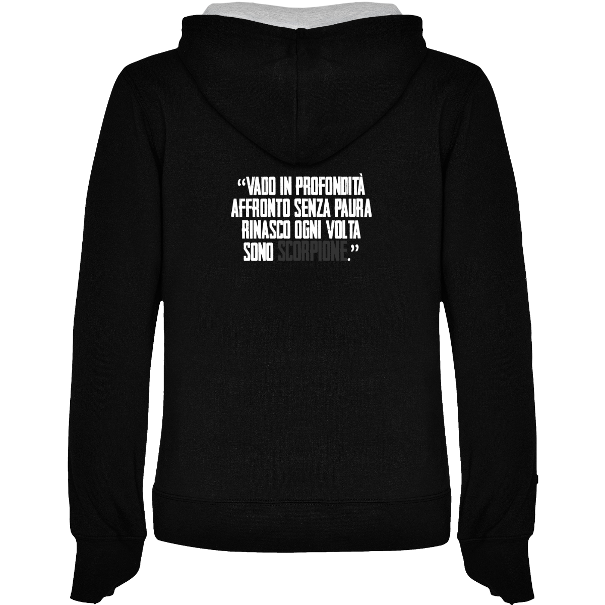Felpa con cappuccio foderato. Polsini e vita a coste 1x1 con elastan. Apertura nei polsini per il pollice. Cuciture nastrate in tessuto coordinato. Coulisse piatta nel cappuccio. Opzioni di colore con cappuccio a contrasto e occhielli in metallo in tinta. 50% cotone / 50% poliestere, 280 g/m².