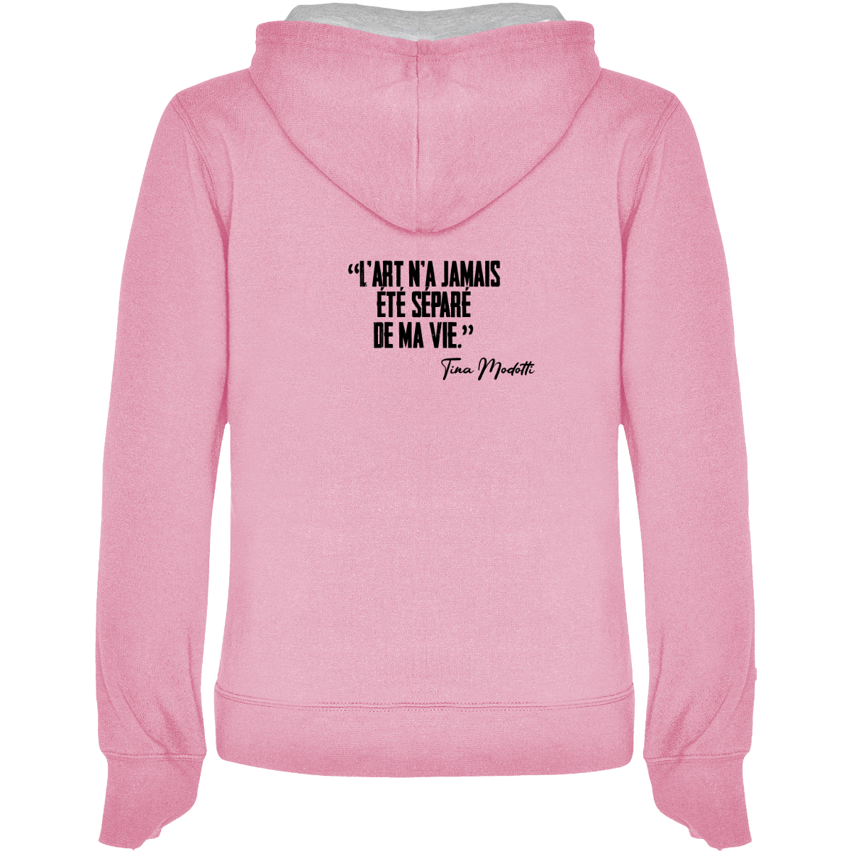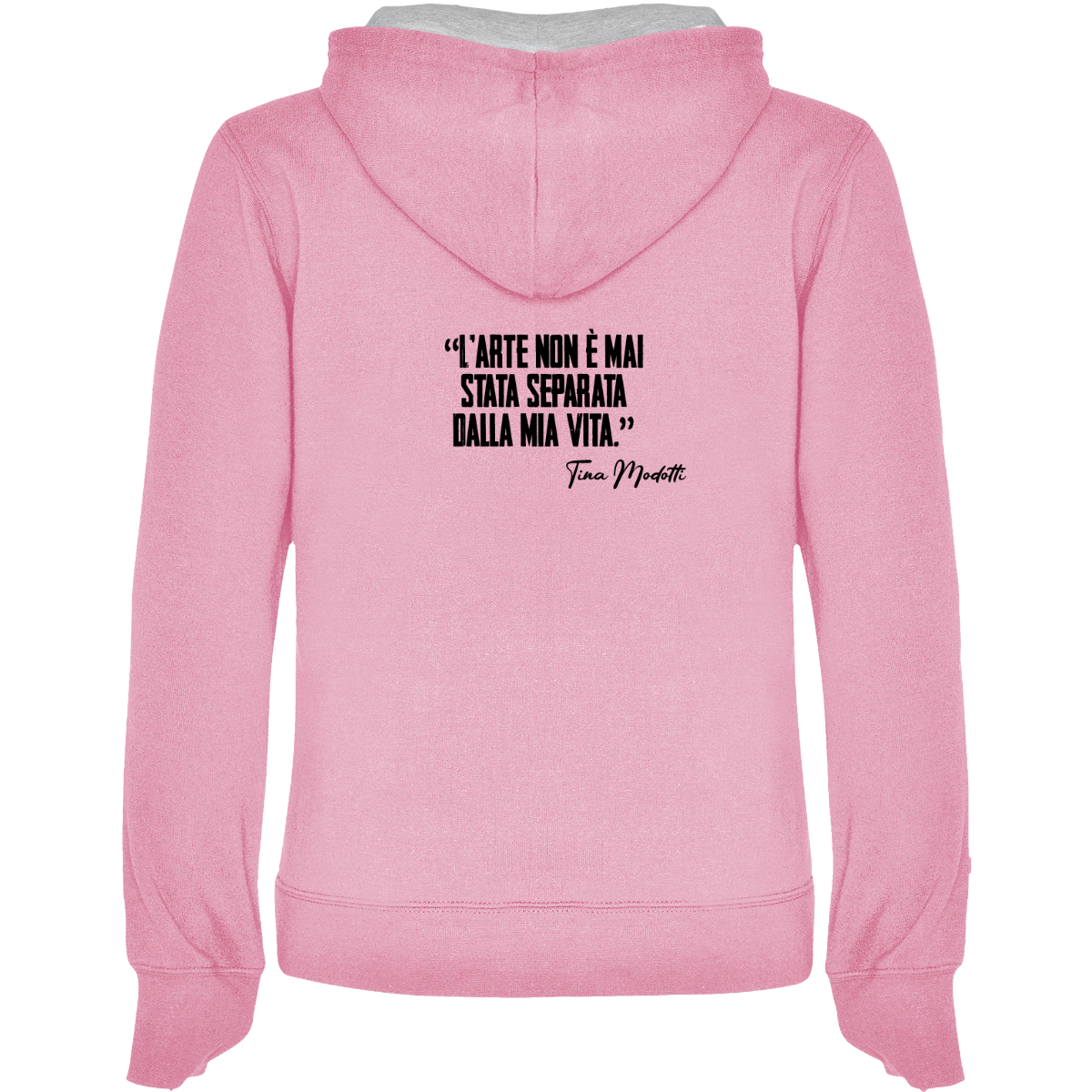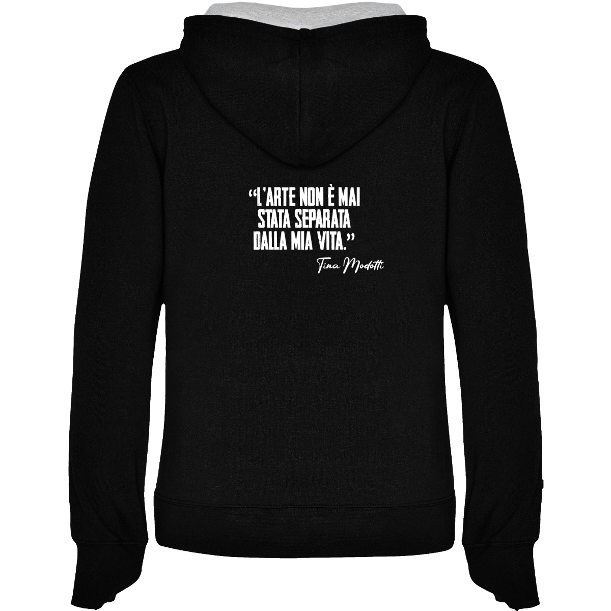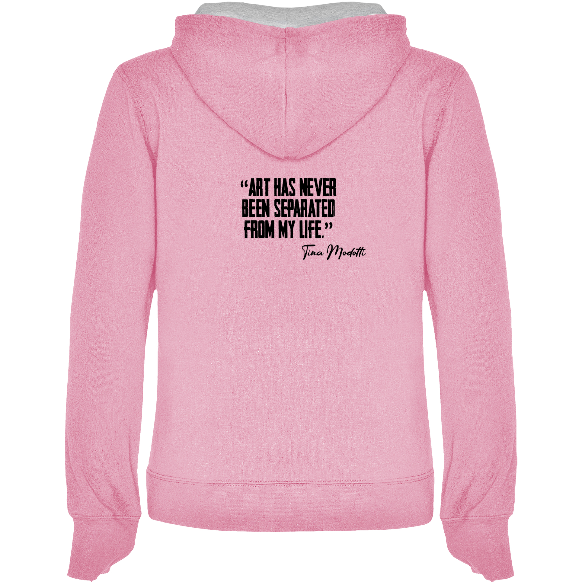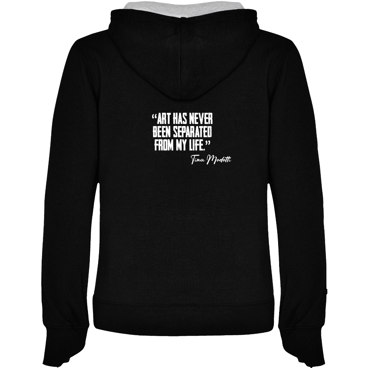 Felpa con cappuccio foderato. Polsini e vita a coste 1x1 con elastan. Apertura nei polsini per il pollice. Cuciture nastrate in tessuto coordinato. Coulisse piatta nel cappuccio. Opzioni di colore con cappuccio a contrasto e occhielli in metallo in tinta. 50% cotone / 50% poliestere, 280 g/m².
