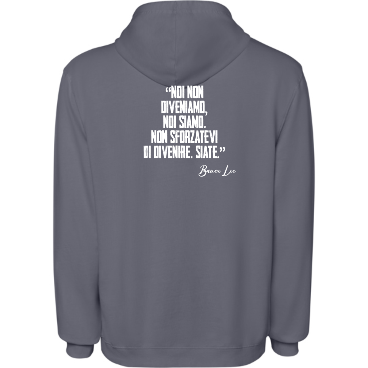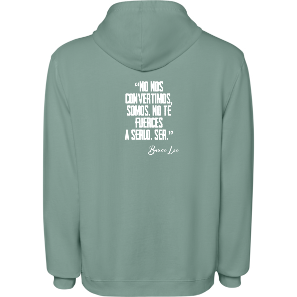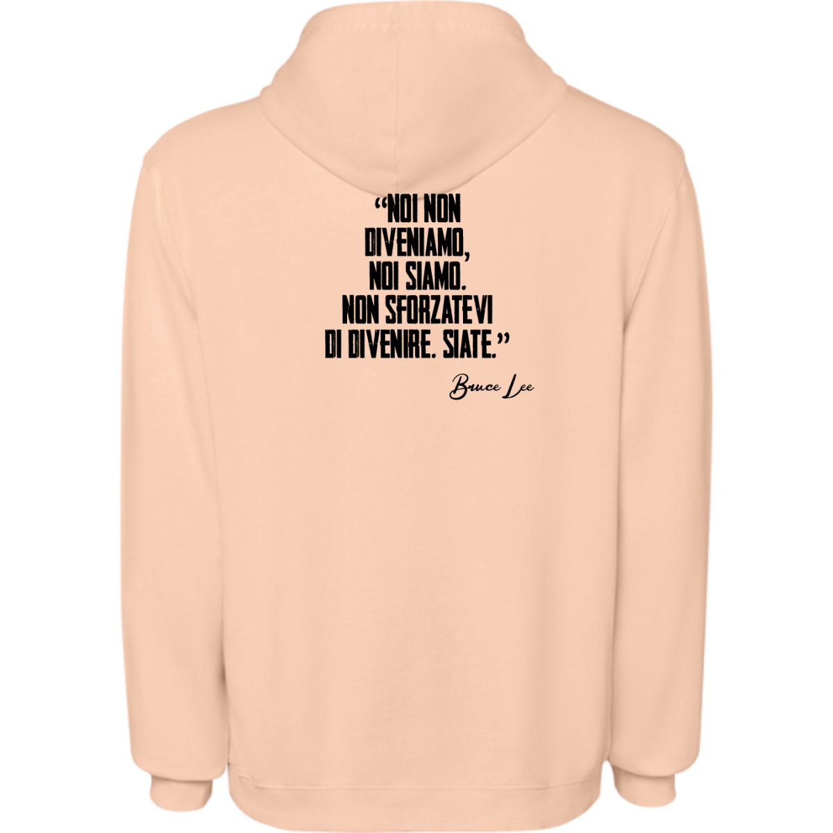 Felpa unisex con cappuccio foderato tono su tono, 100% cotone con finitura acid wash. Polsini e orlo in costina 2x1. Cordoni piatti tono su tono. Collo con copricuciture tono su tono. Tasca a canguro.