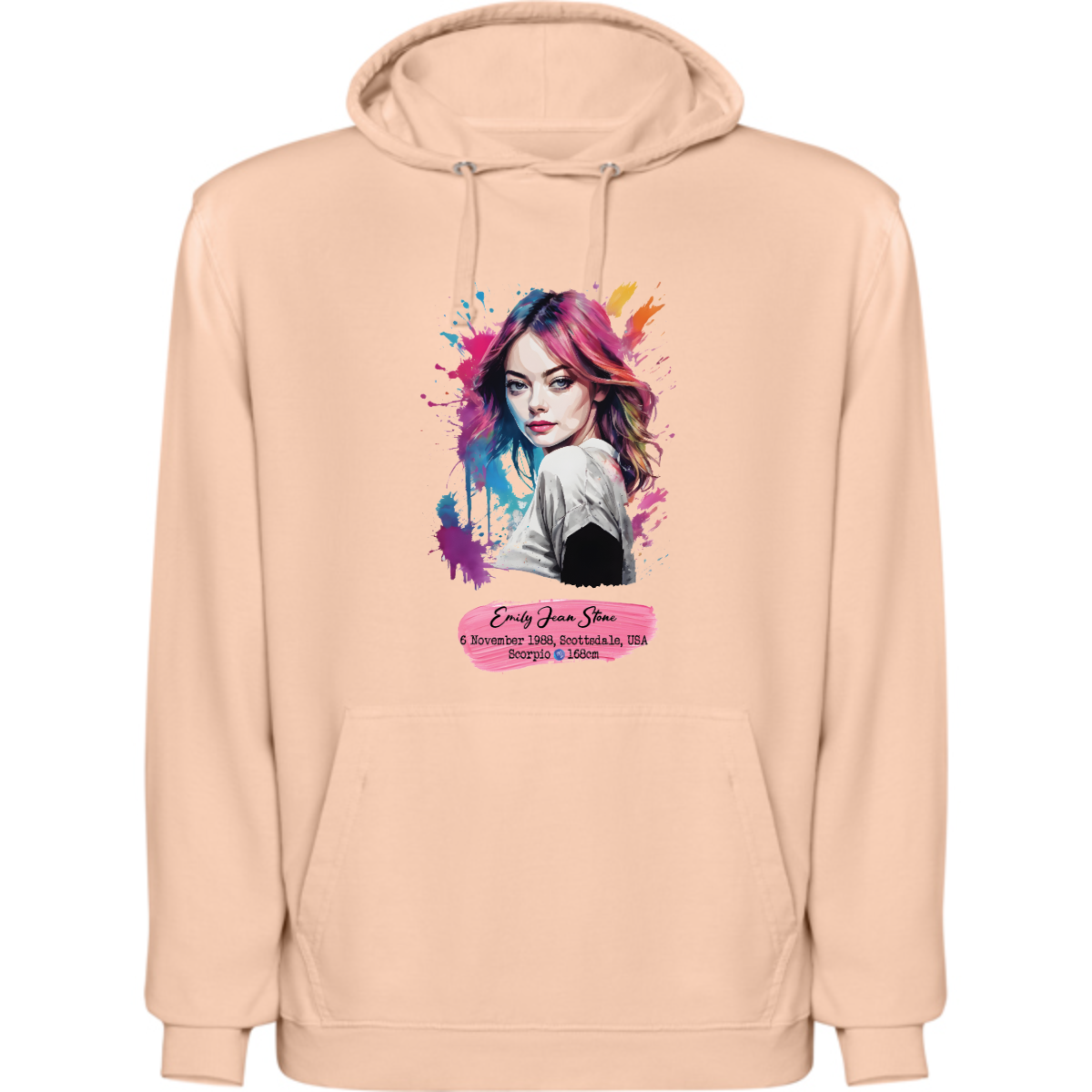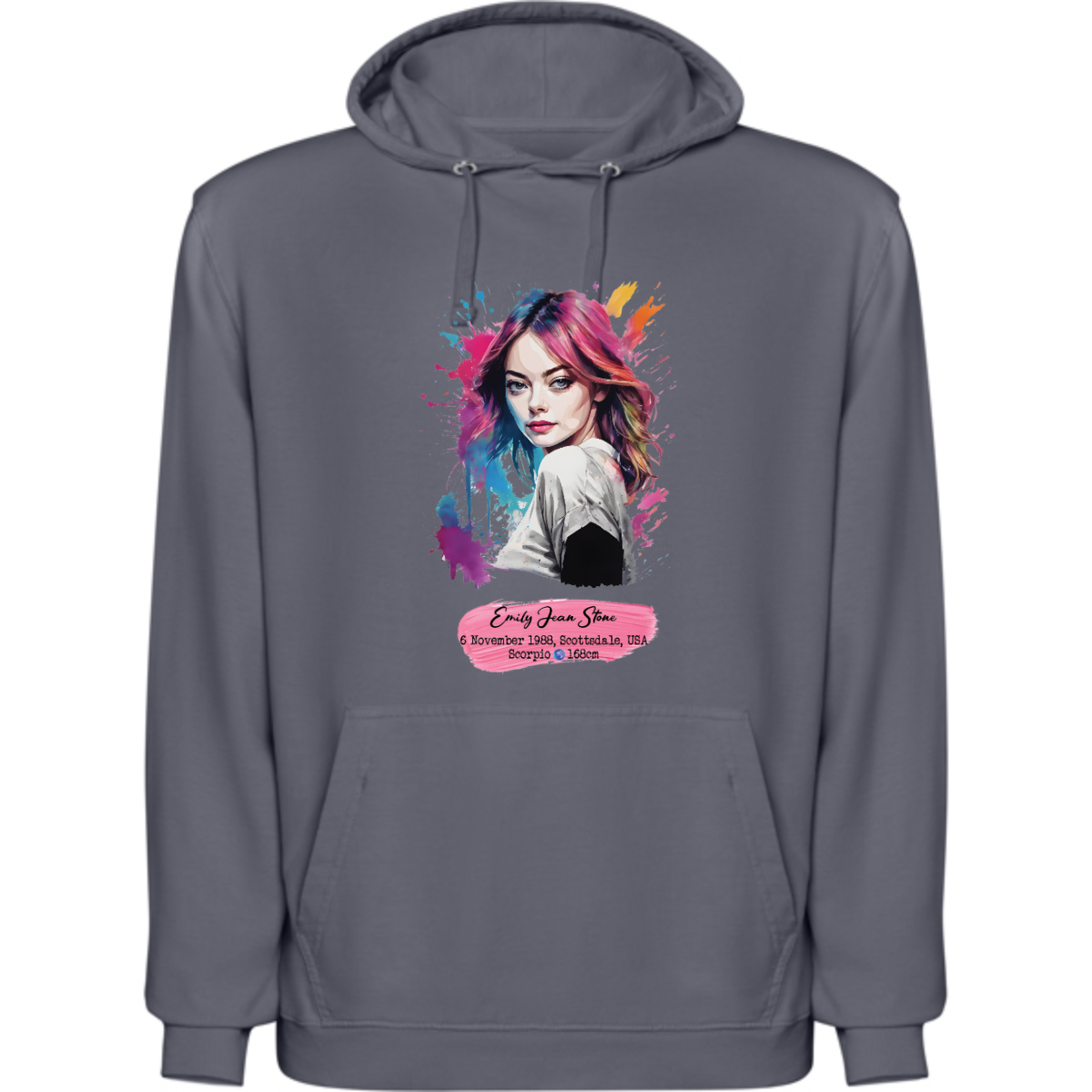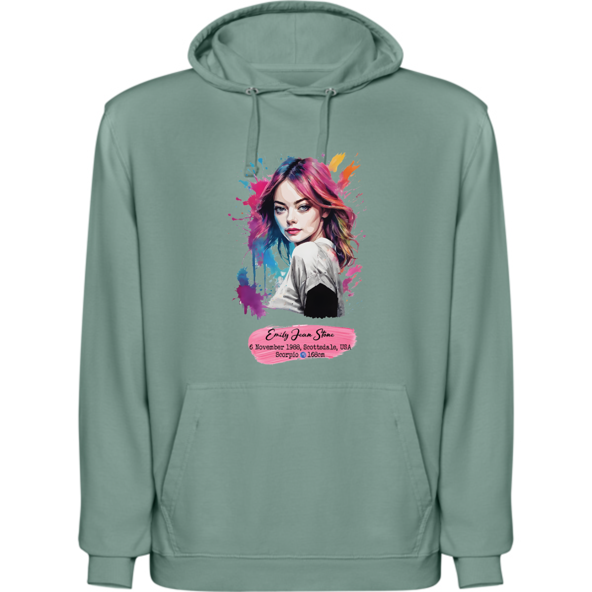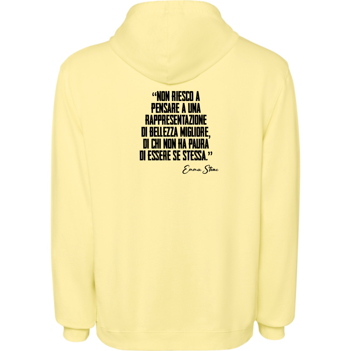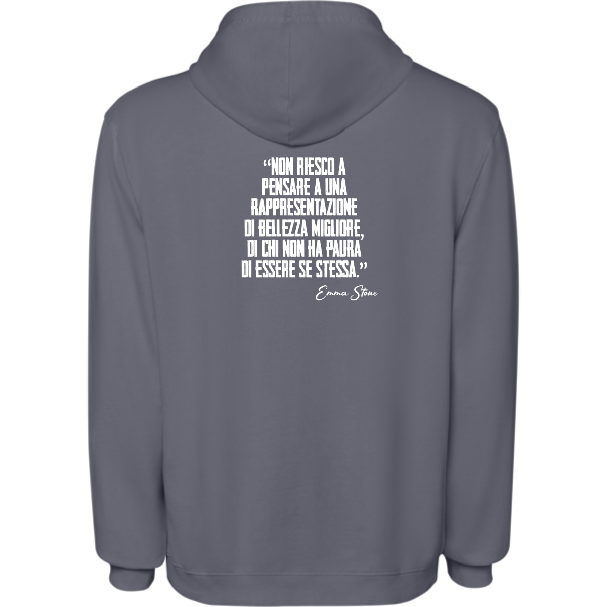 Felpa unisex con cappuccio foderato tono su tono, 100% cotone con finitura acid wash. Polsini e orlo in costina 2x1. Cordoni piatti tono su tono. Collo con copricuciture tono su tono. Tasca a canguro.