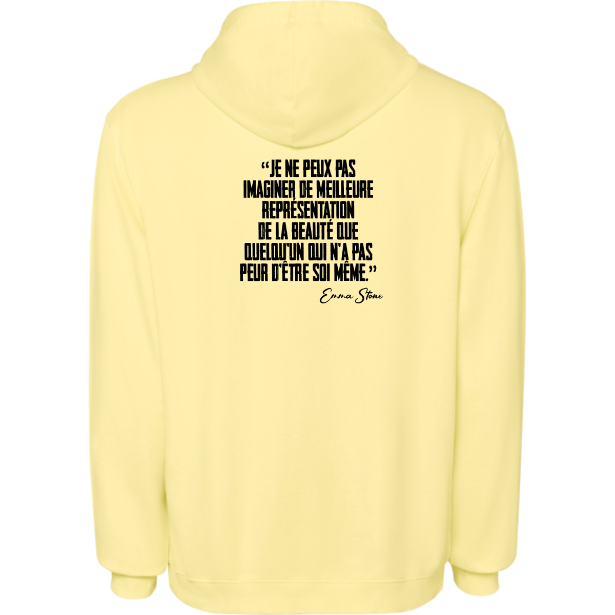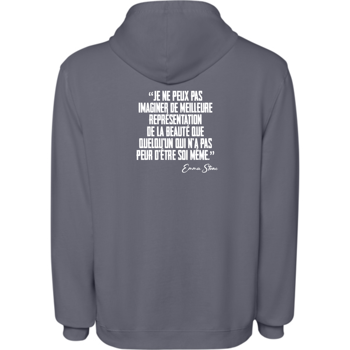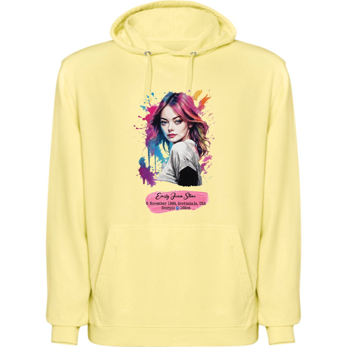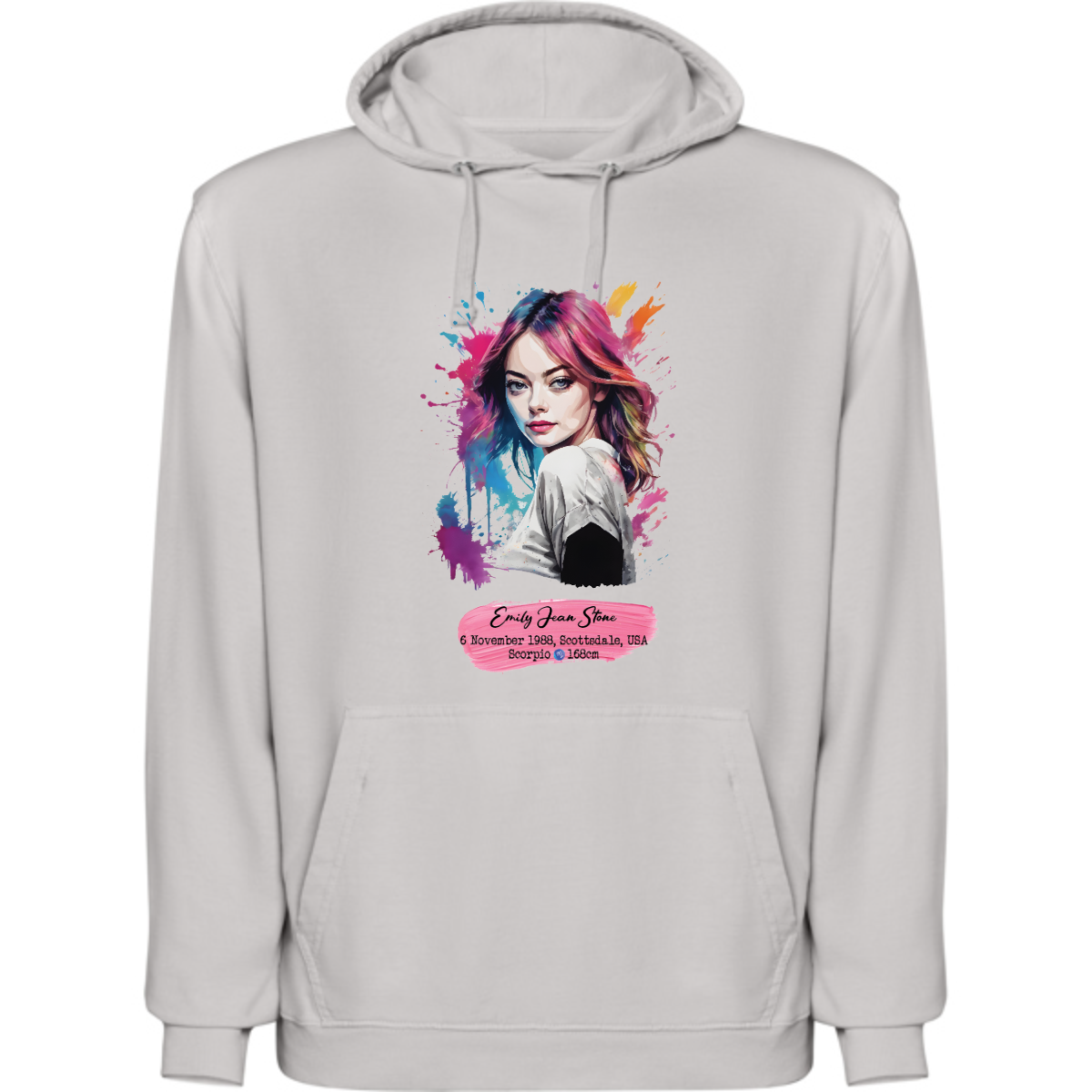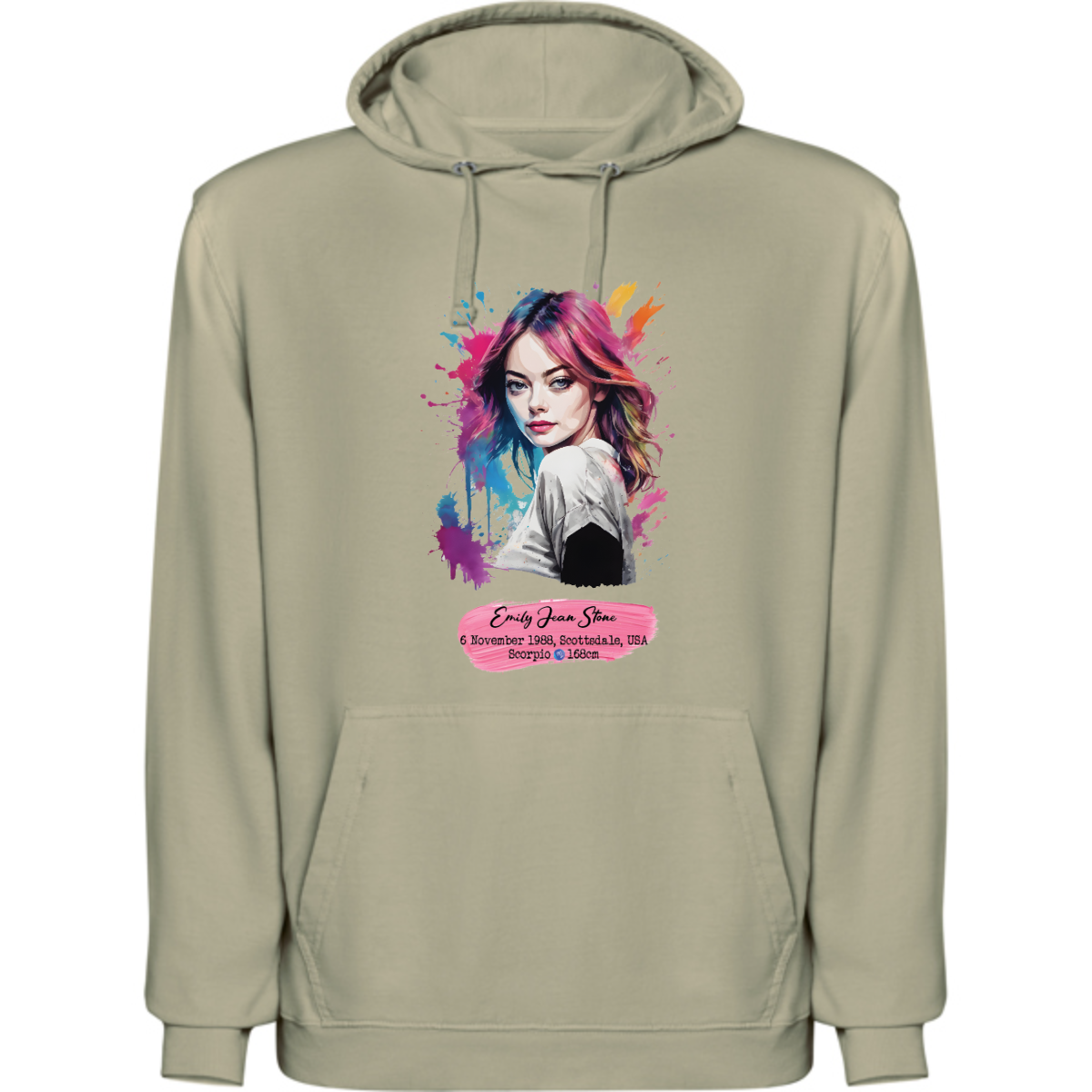 Felpa unisex con cappuccio foderato tono su tono, 100% cotone con finitura acid wash. Polsini e orlo in costina 2x1. Cordoni piatti tono su tono. Collo con copricuciture tono su tono. Tasca a canguro.