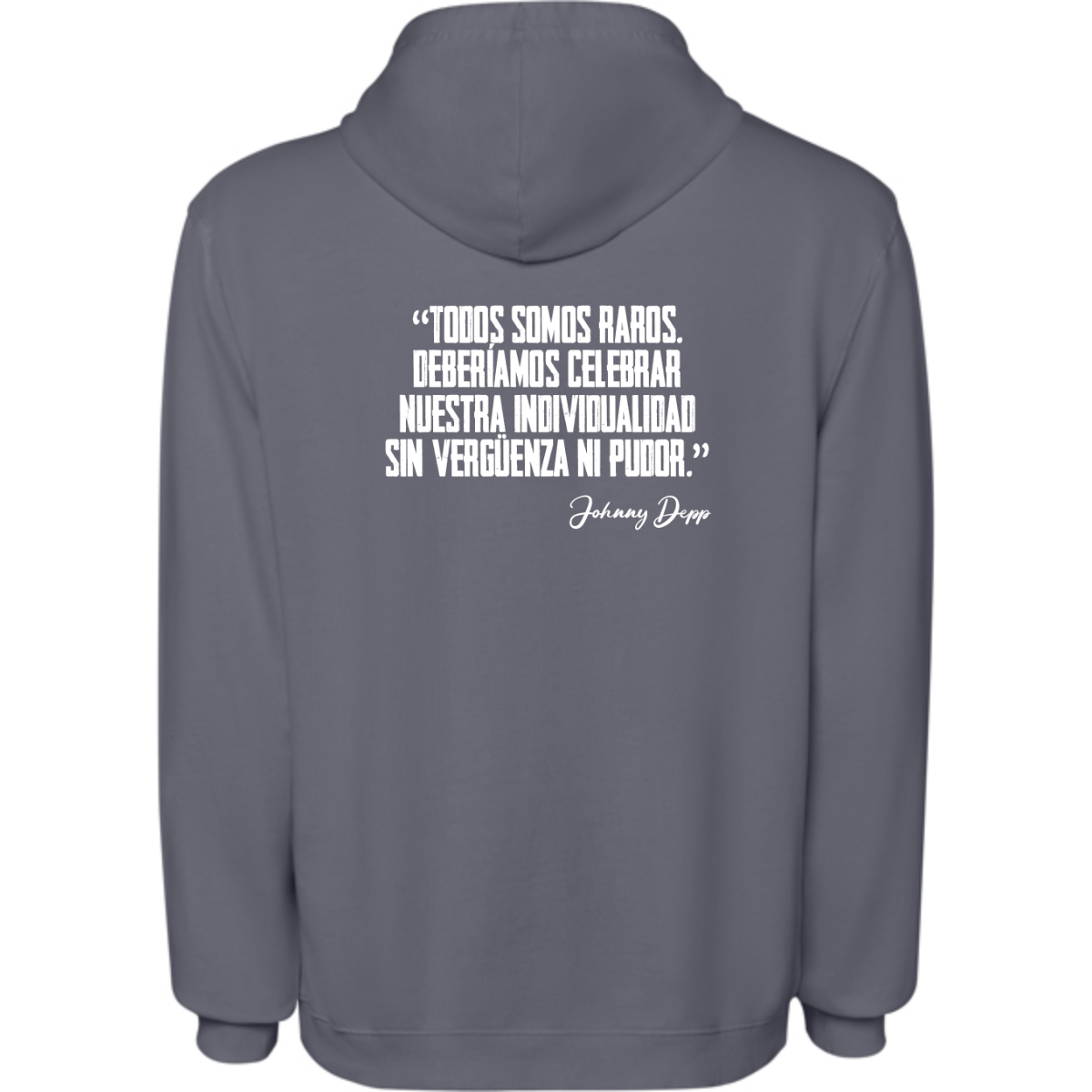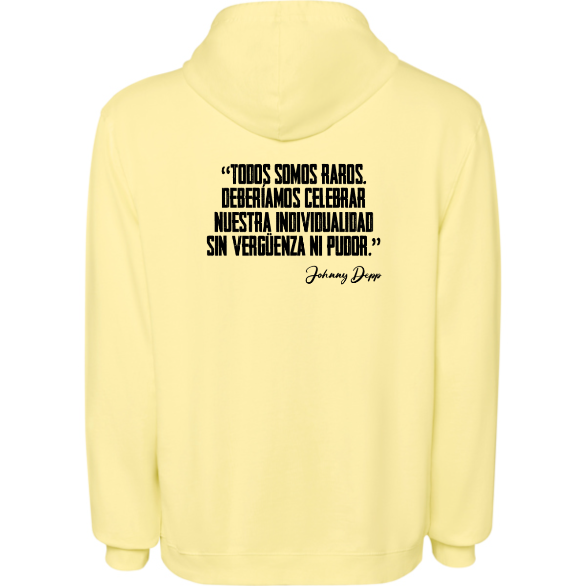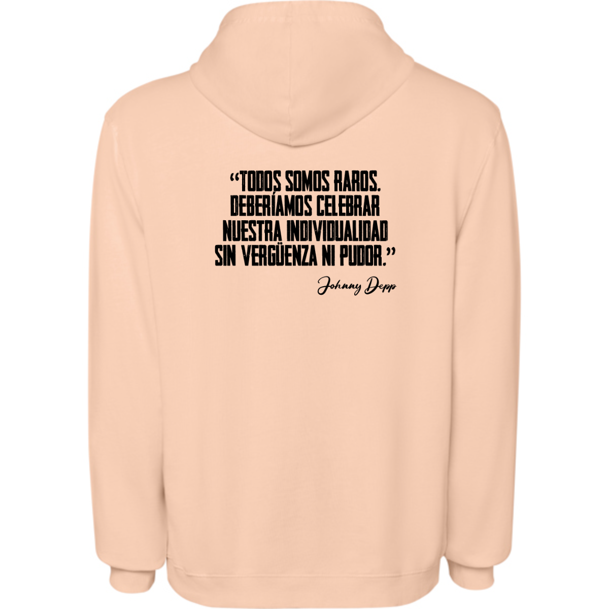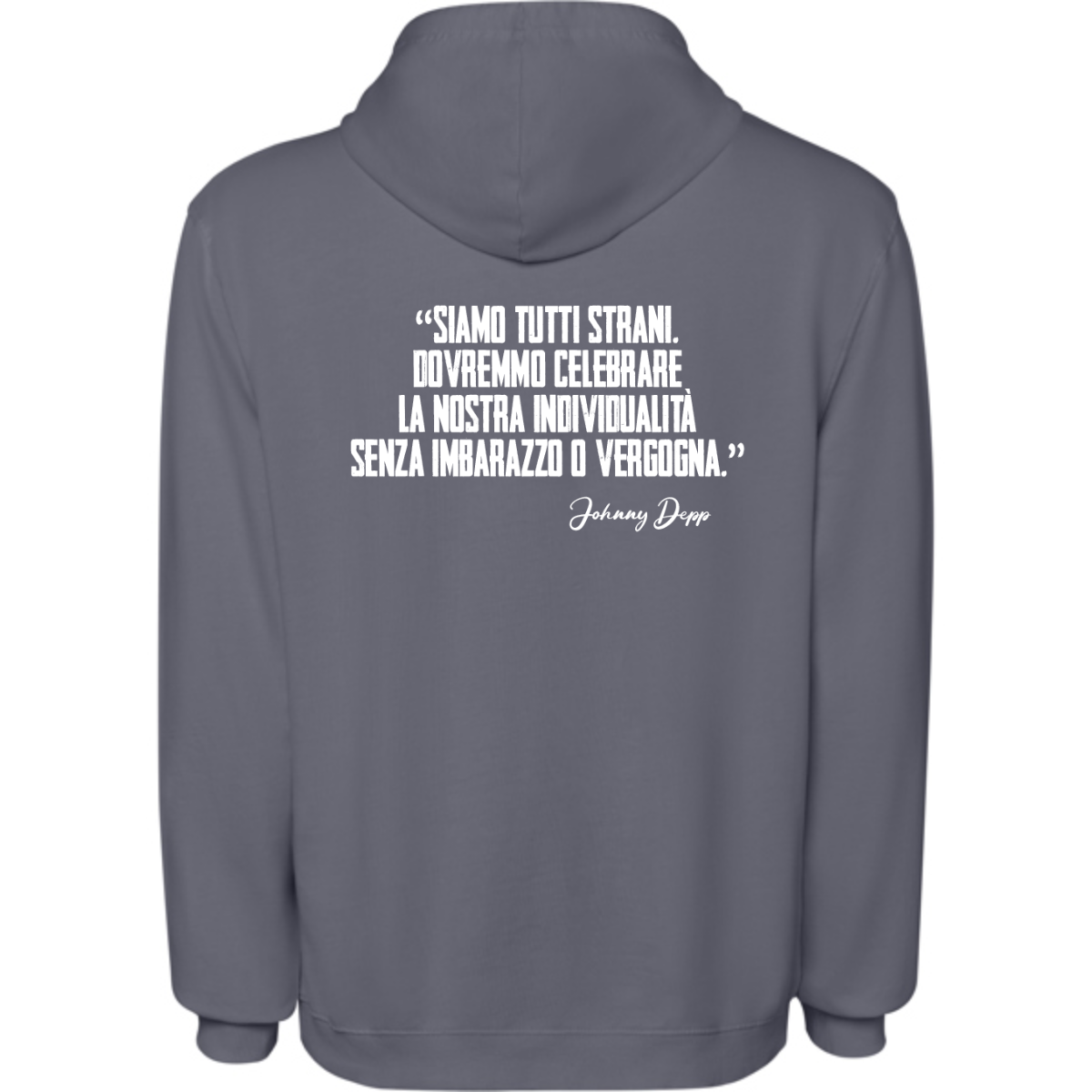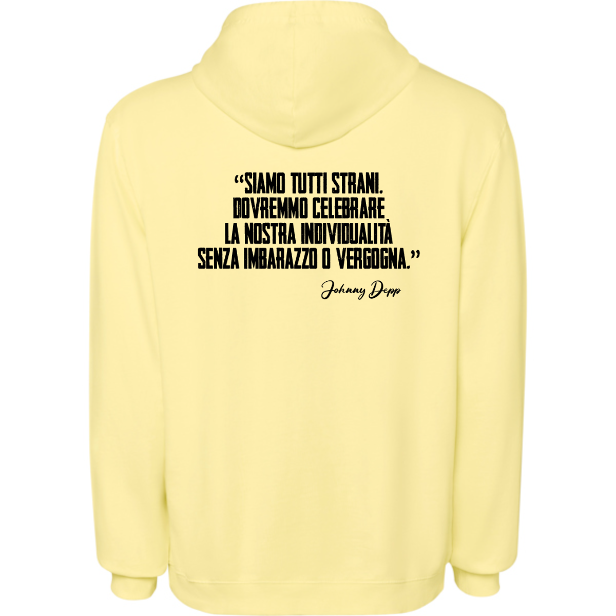 Felpa unisex con cappuccio foderato tono su tono, 100% cotone con finitura acid wash. Polsini e orlo in costina 2x1. Cordoni piatti tono su tono. Collo con copricuciture tono su tono. Tasca a canguro.