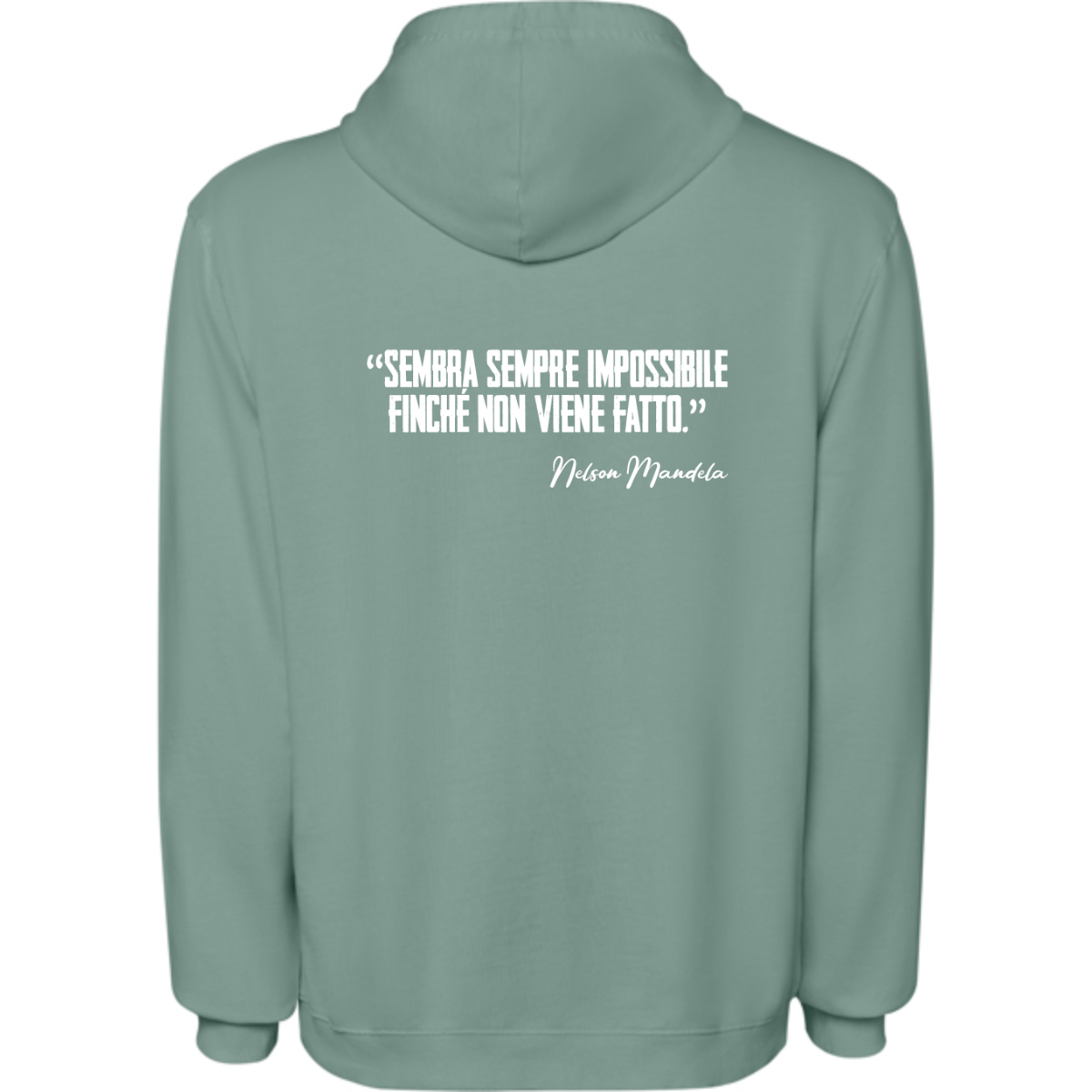 Felpa unisex con cappuccio foderato tono su tono, 100% cotone con finitura acid wash. Polsini e orlo in costina 2x1. Cordoni piatti tono su tono. Collo con copricuciture tono su tono. Tasca a canguro.