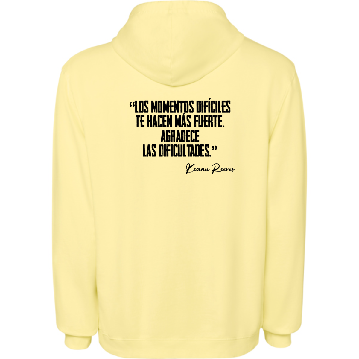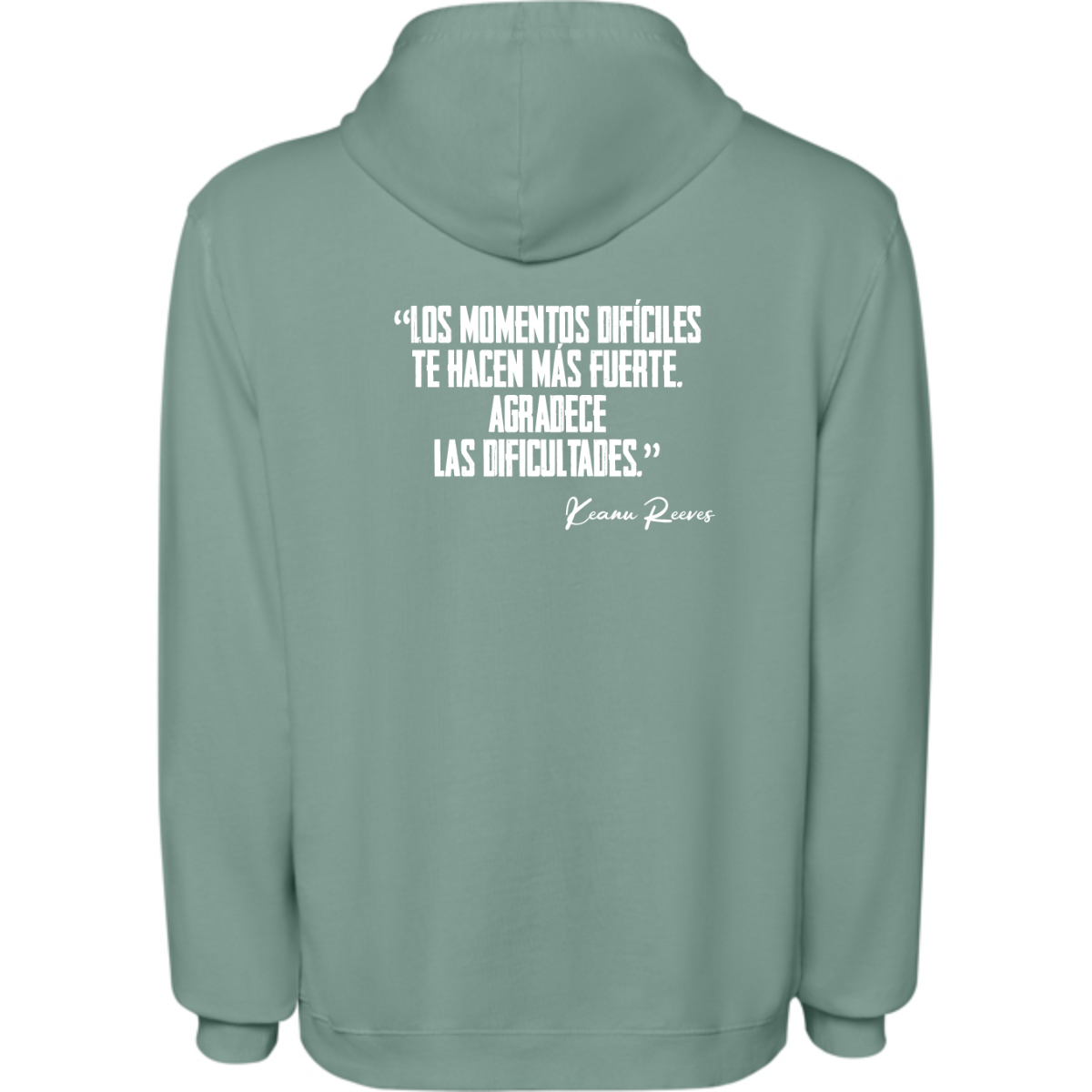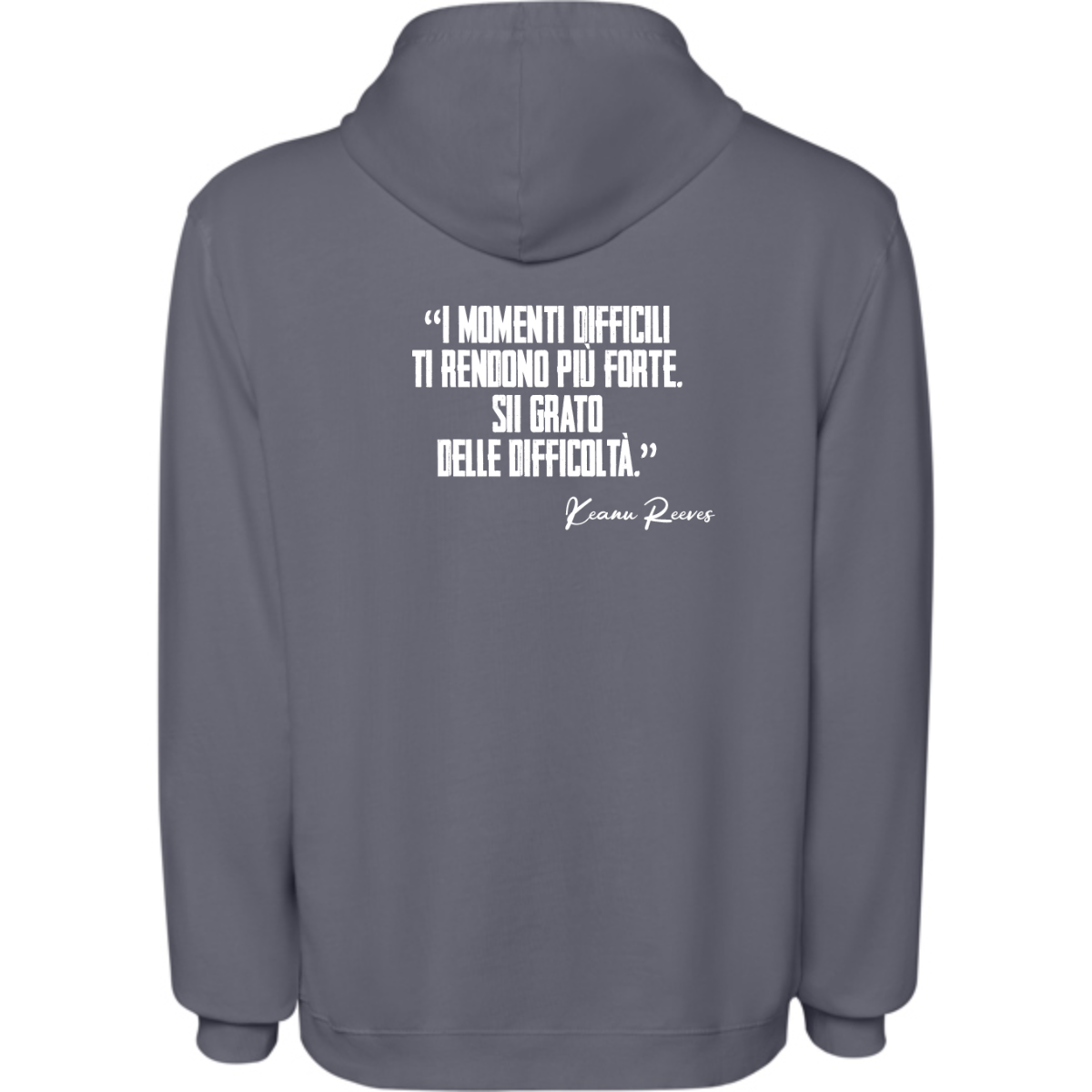 Felpa unisex con cappuccio foderato tono su tono, 100% cotone con finitura acid wash. Polsini e orlo in costina 2x1. Cordoni piatti tono su tono. Collo con copricuciture tono su tono. Tasca a canguro.