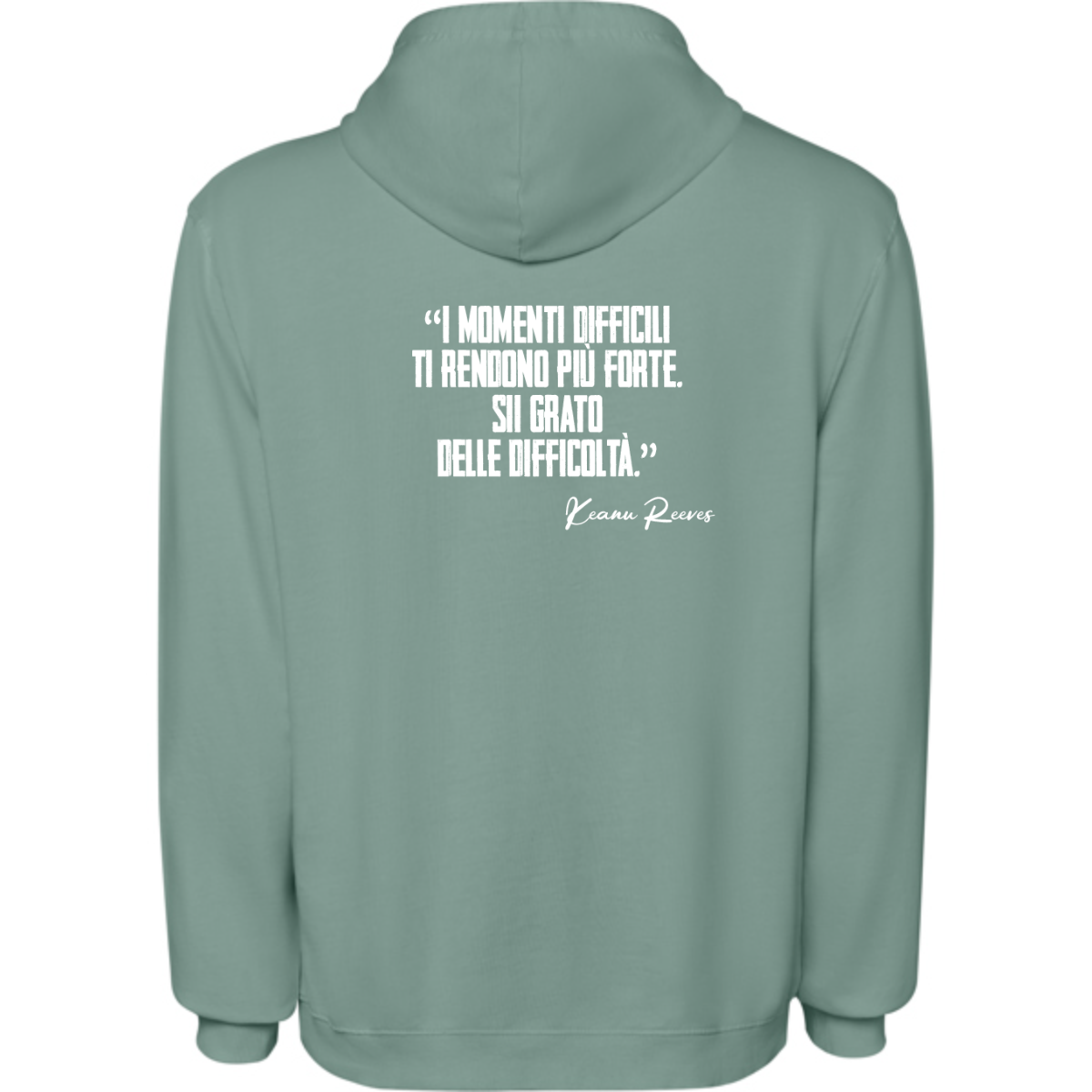 Sudadera unisex con forro tono sobre tono, 100 % algodón con lavado ácido. Puños y bajo de punto acanalado 2x1. Cordones planos tono sobre tono. Cuello con costuras cubiertas tono sobre tono. Bolsillo tipo canguro.
