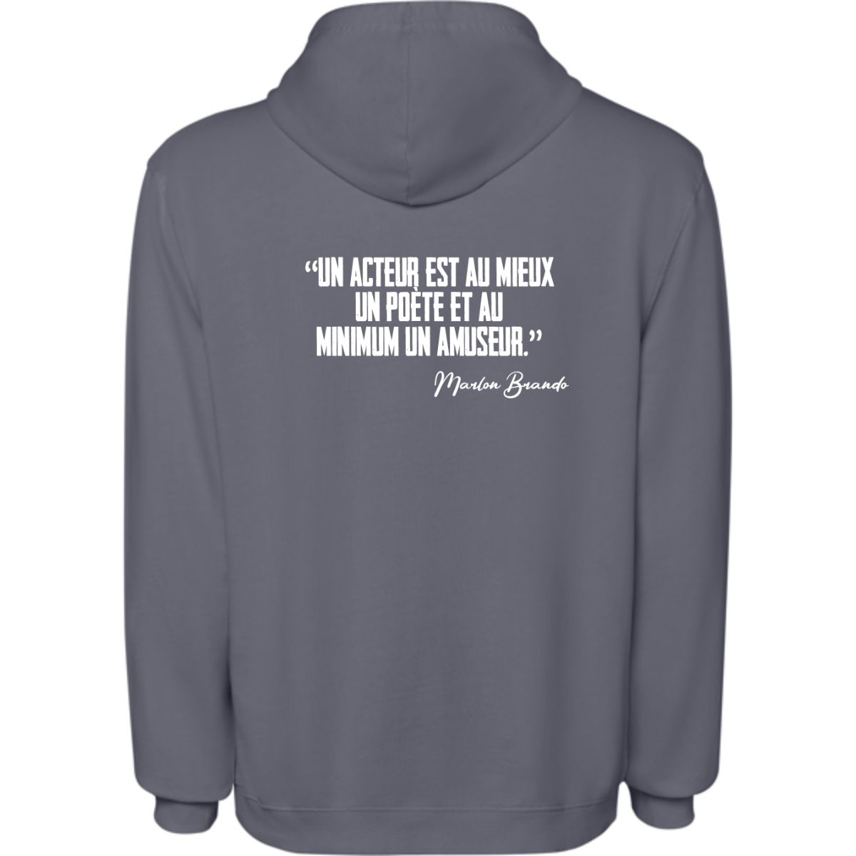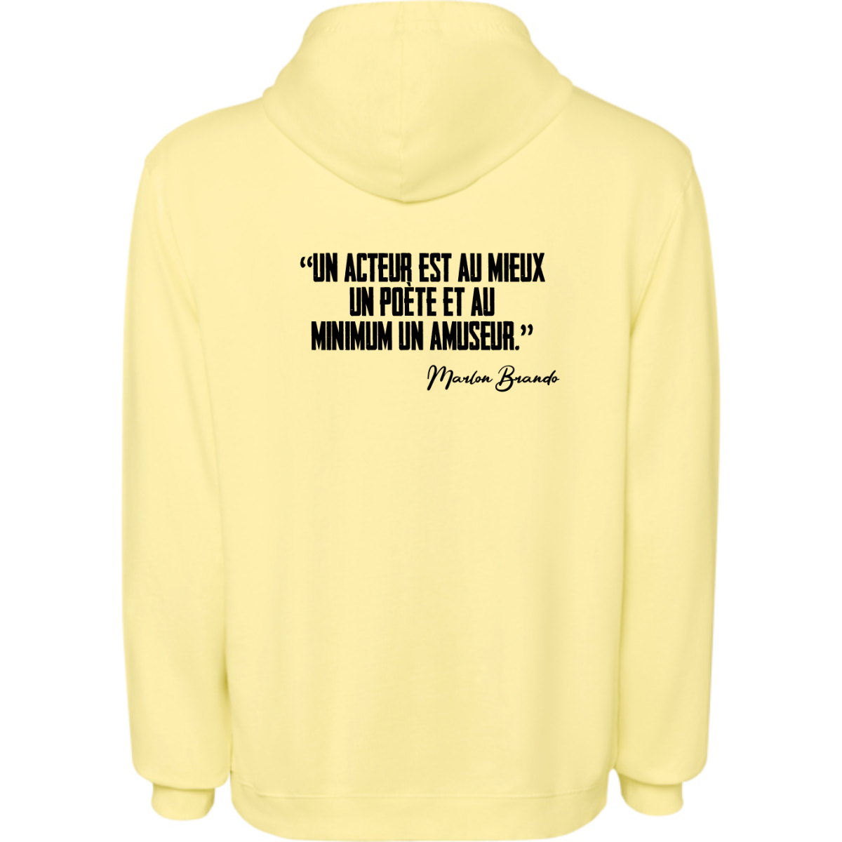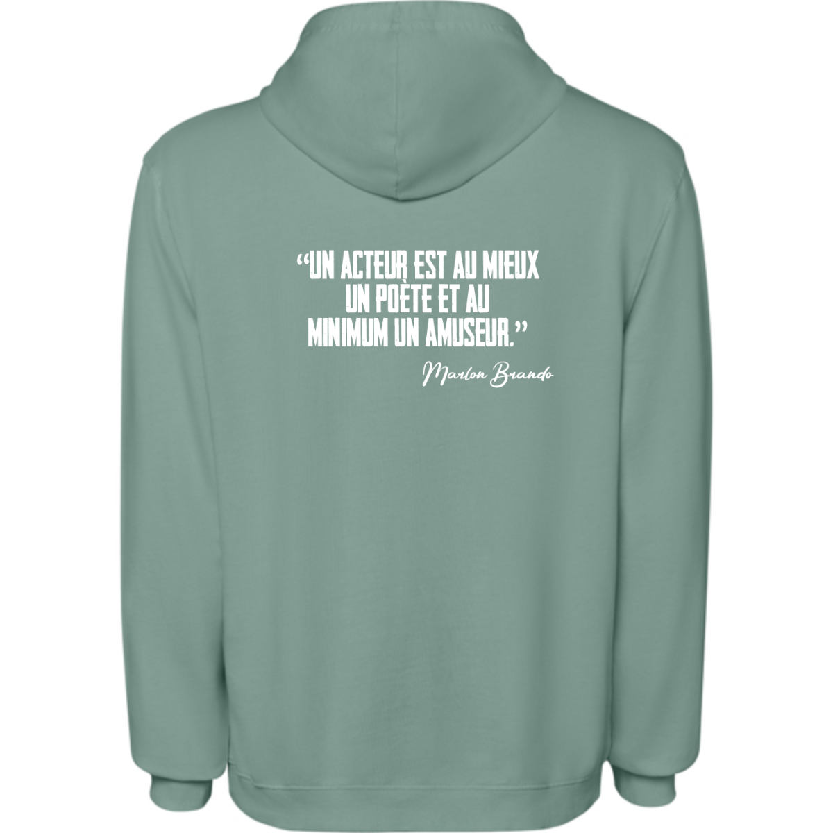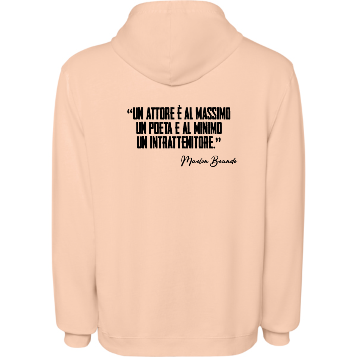 Felpa unisex con cappuccio foderato tono su tono, 100% cotone con finitura acid wash. Polsini e orlo in costina 2x1. Cordoni piatti tono su tono. Collo con copricuciture tono su tono. Tasca a canguro.